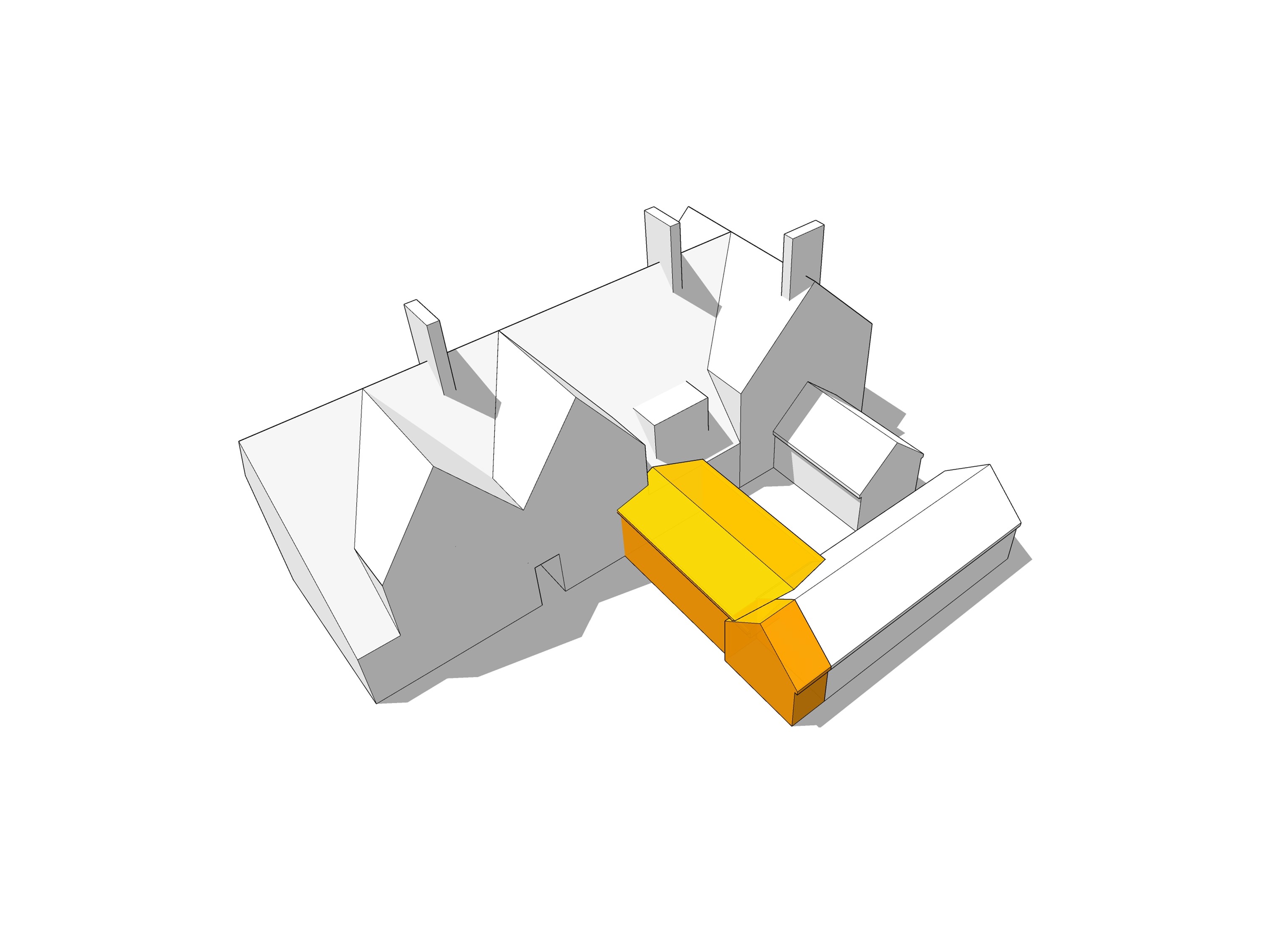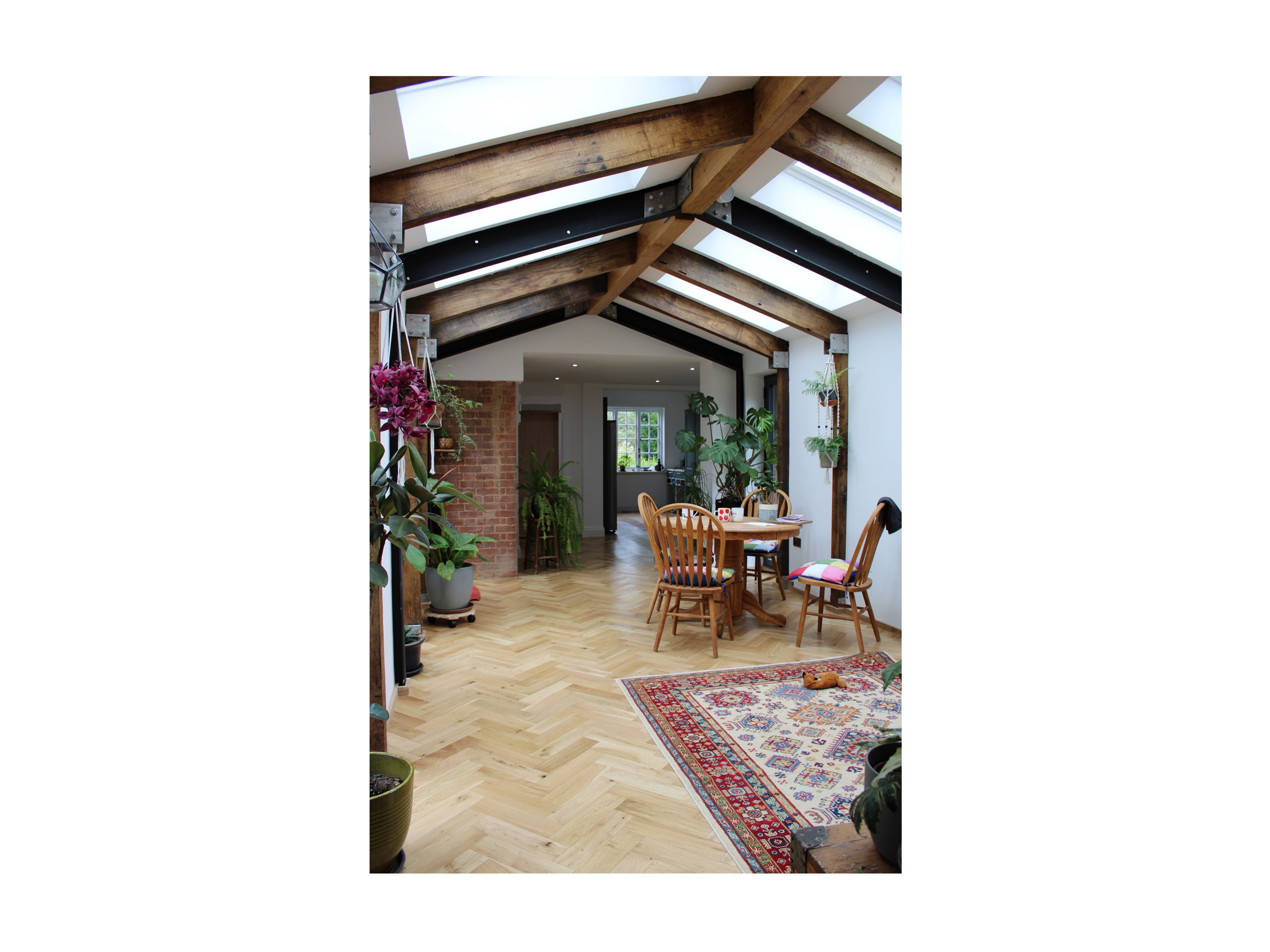 The client wanted a 6m conservatory. The existing buildings assisted, and planning was achieved. Calculating solid to glass ratios achieved Part L. The spaces are a credit to exceptional clients who camped out in an outbuilding during the works. Going back to first principles is intrinsic to our approach and leads to invention.
