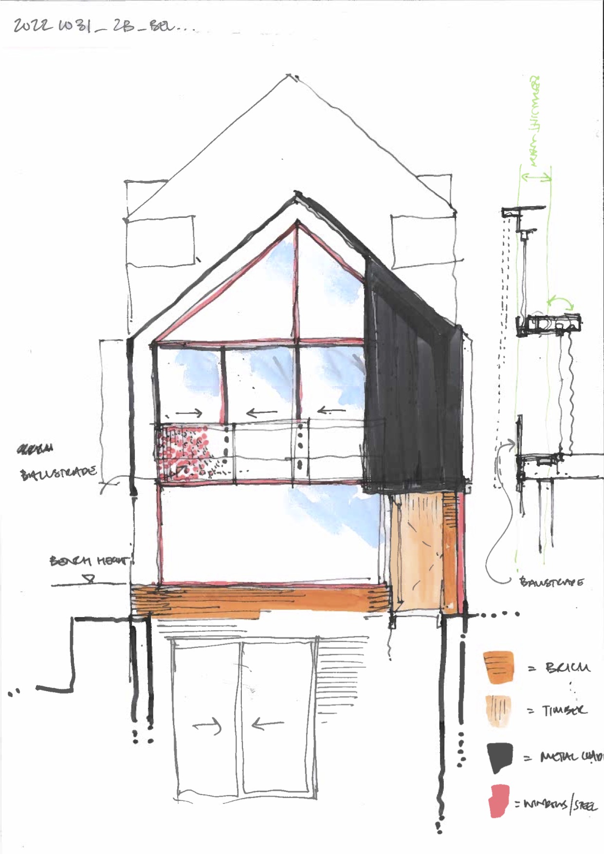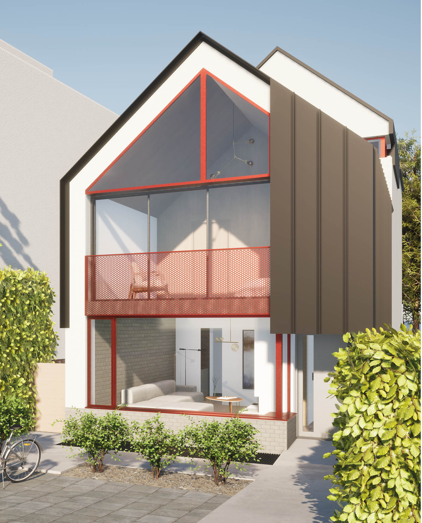 Currently on site, the clients tasked us to create a bold design to give their family home the ‘wow’ factor. Planning permission was been granted for a total remodel, extension and new basement, to transform a post war property in Wimbledon beyond recognition . The project involves replacing the ground floor garage with a new living space and adding a master bedroom above with floor-to-ceiling glazing and perforated metal. A wrap-around roof light will flood the communal areas with natural light. The rear will retain existing walls, but the loft roof pitch will be adjusted for a more appealing exterior. Key upgrades include replacing dark brick and UPVC windows with high performance materials, modern metal cladding, and a steeper roof pitch. Now on site, we are excited to see modern methods of construction like the new clt timber structure transform the existing house into a stunning family home.
