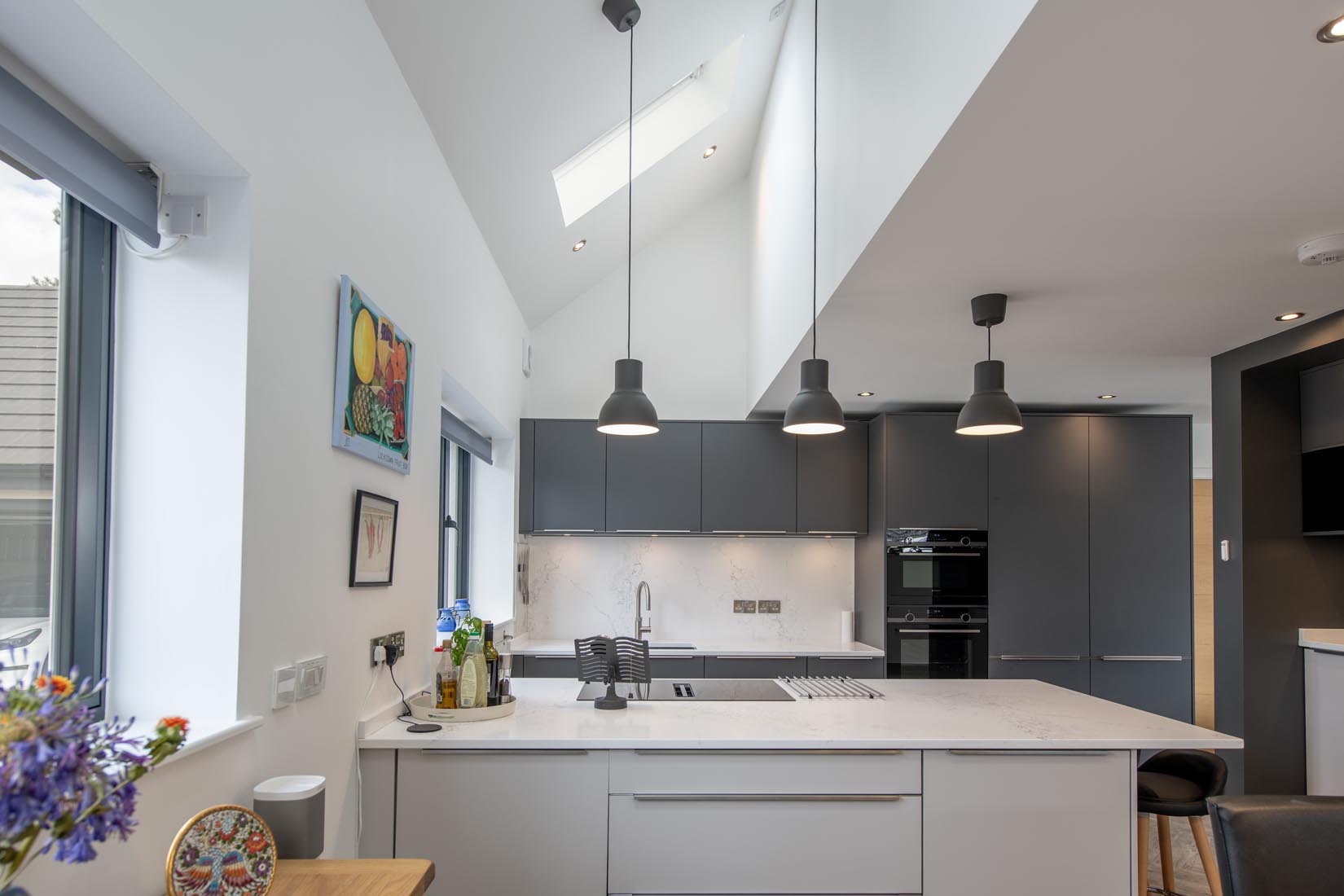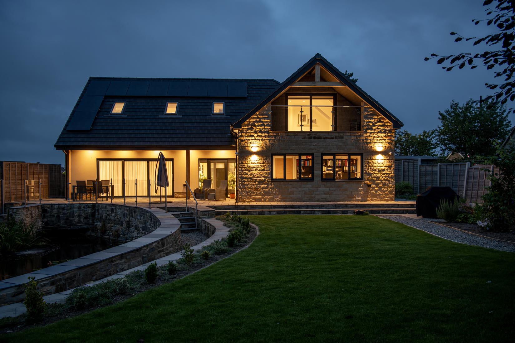The house was designed to provide a sustainable, future proofed house for its occupants. The brief was to provide a home that could be adapted to the client's needs in the future and was designed so that ground floor accommodation could be modified to provide bedroom and accessible bathroom when required. In addition the house was designed to maximise solar gains through orientation as well as a very well insulated building fabric. Shading is provided to the south elevation to prevent overheating in the summer months but allowing sunlight in during the winter. Underfloor heating is used throughout the ground floor. Views through the house lead to the garden with a natural pond and connect the interior to the exterior. A&J Architects have provided their clients with a "forever home" that will easily adapt for the future whilst minimising the building's carbon footprint.