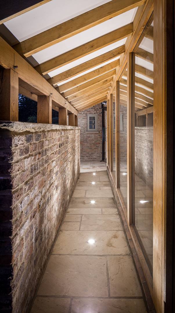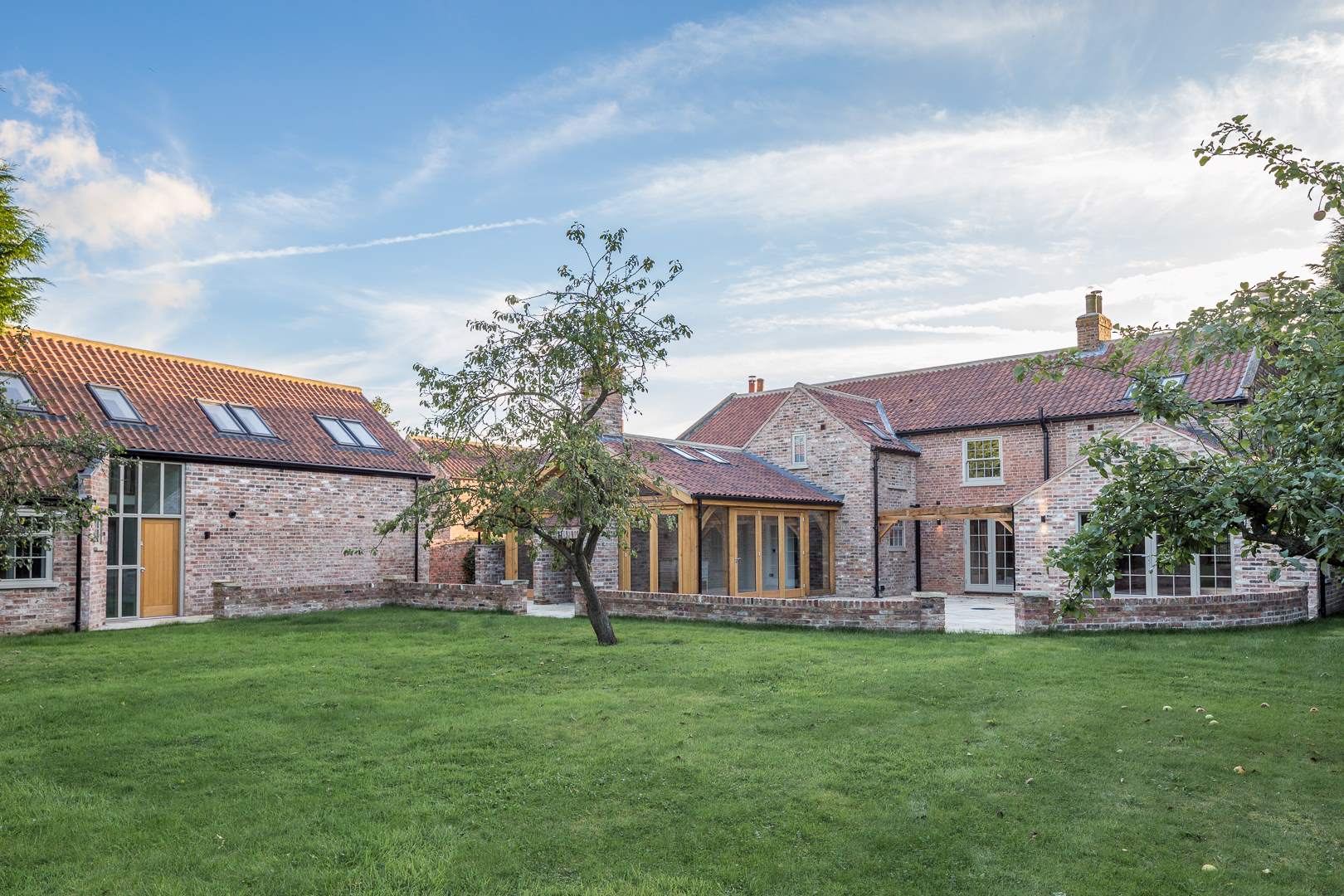 This was a full renovation project with extensions and alterations that have created a large family home. The house is located in the Newton-on-Ouse conservation area and is an attractive building of rustic red brick construction with interlocking clay pantiled roof. The oak framed extension has been designed to ensure that it is sympathetic with the original style of the property, whilst providing a more usable and up to date layout of a family home including an open plan living/dining area with large fireplace and new kitchen, all of which opens up onto a substantial rear garden. Part of the extension of the property includes a two storey element enabling the house to provide improved first floor accommodation. A further single storey extension was also added to the drawing room. An existing detached outbuilding and garage were also renovated and a new annexe living area was created on part of the ground floor and in the roof space, whilst maintaining a garage to the front. A&J worked closely with the employer's agent, main contractor and subcontractors throughout the construction phase as well as ensuring compliance with local authority requirements.