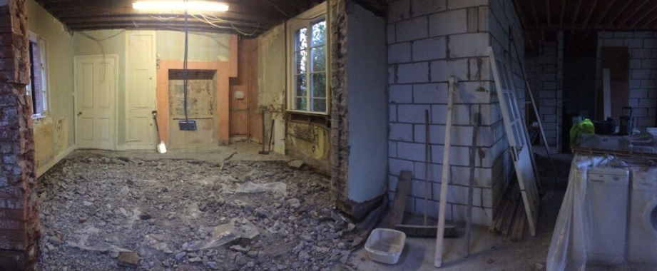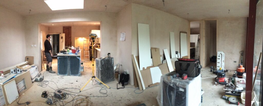 This is a large addition to a Victorian house in one of Lincolns conservation areas. The project included extensive demolition and the client brief was to create a large living space totally connected to the garden. The large glazing opens to a covered terrace leading to the leafy garden. Internally the kitchen was completely refurbished and utility space and workshop were incorporated.