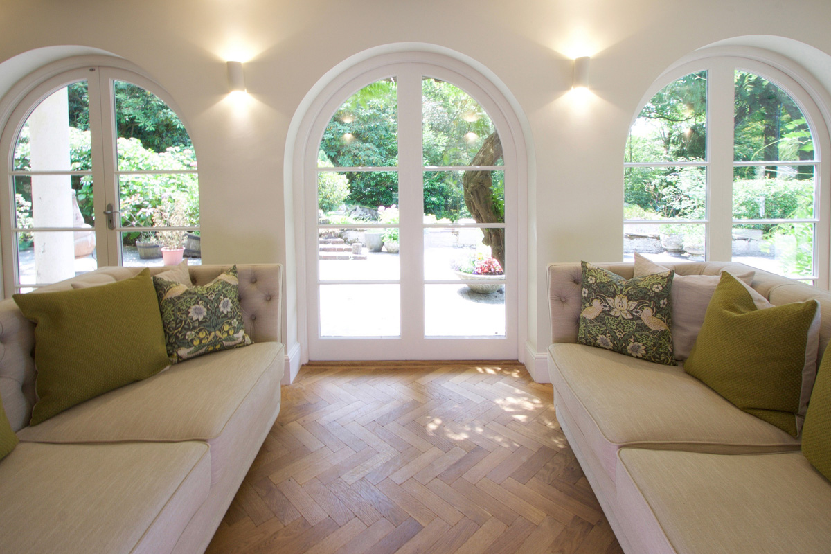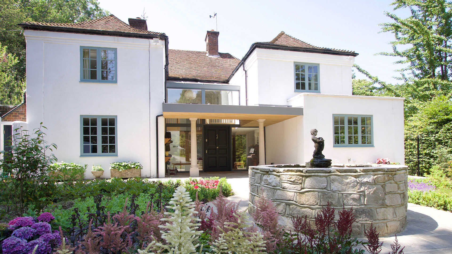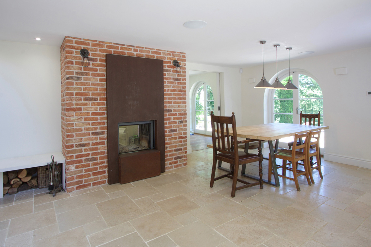 Full of character, this property was originally used as a hunting lodge, nestled in a secluded location enjoying stunning views across a lake and beyond to the Surrey Hills. The property had been significantly altered in the 70s. Consequently, some spaces had become inner rooms, dark and isolated. Our design reconfigured the interior into a predominantly open plan living layout, benefiting from lake and countryside views. A clear approach to the country house was also reestablished by removing all unsightly extensions and constructing a double-height, glazed atrium space with new porch, to bring light into the depth of the building. Further restructuring of the facade reflected the interior remodelling, including and new spacious landing within the atrium space and a first floor extension to rebalanced the front elevation. New/renovated facilities within the extensive grounds also include the replacement double garage, a pool house and home gym.