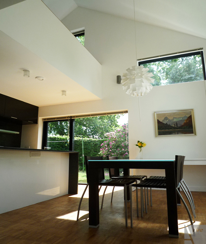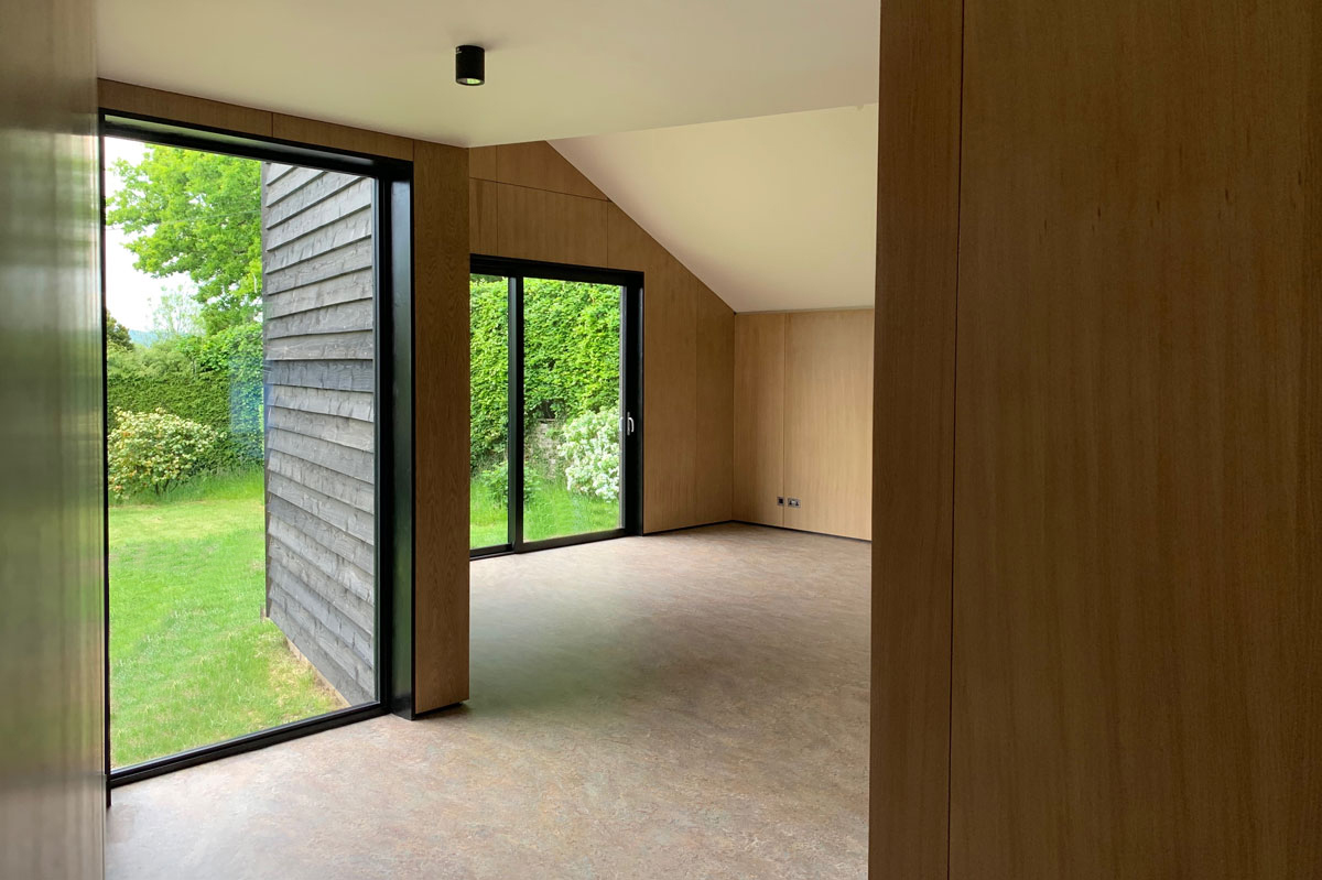 This is the refurbishment and conversion of a detached 1960’s house, located in the South Downs National Park, SDNP into a contemporary family home. This required the conversion of small cellular rooms into an open plan, flexible layout, maximising the bright and airy character of the existing house. The traditional cladding of Sussex barns was reinterpreted to provide a contemporary aesthetic using stained, locally sourced western red cedar timber cladding. All new extensions have been completed to near Passivhaus standard. Combined with the energy improvements of the existing building fabric, this has resulted in a 50% saving on heating, despite more than doubling the size of the property.