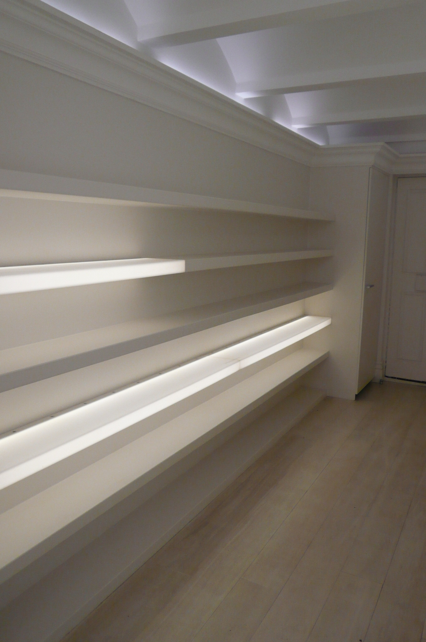 the celint wished to open the apartment walls in various places to have a feel of continuity and visual link from a new kitchen in to a lounge and new seating overlooking the rear garden.