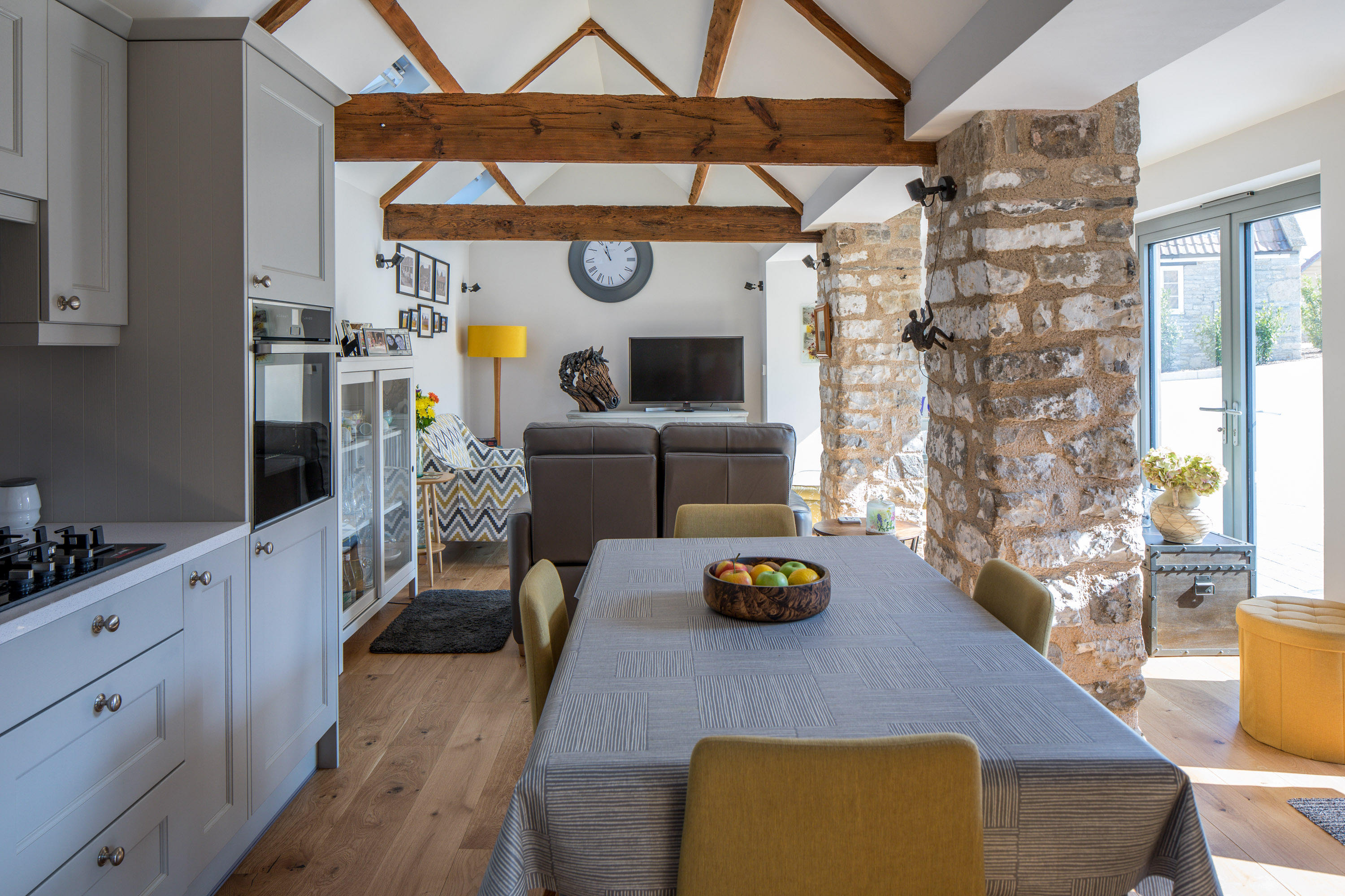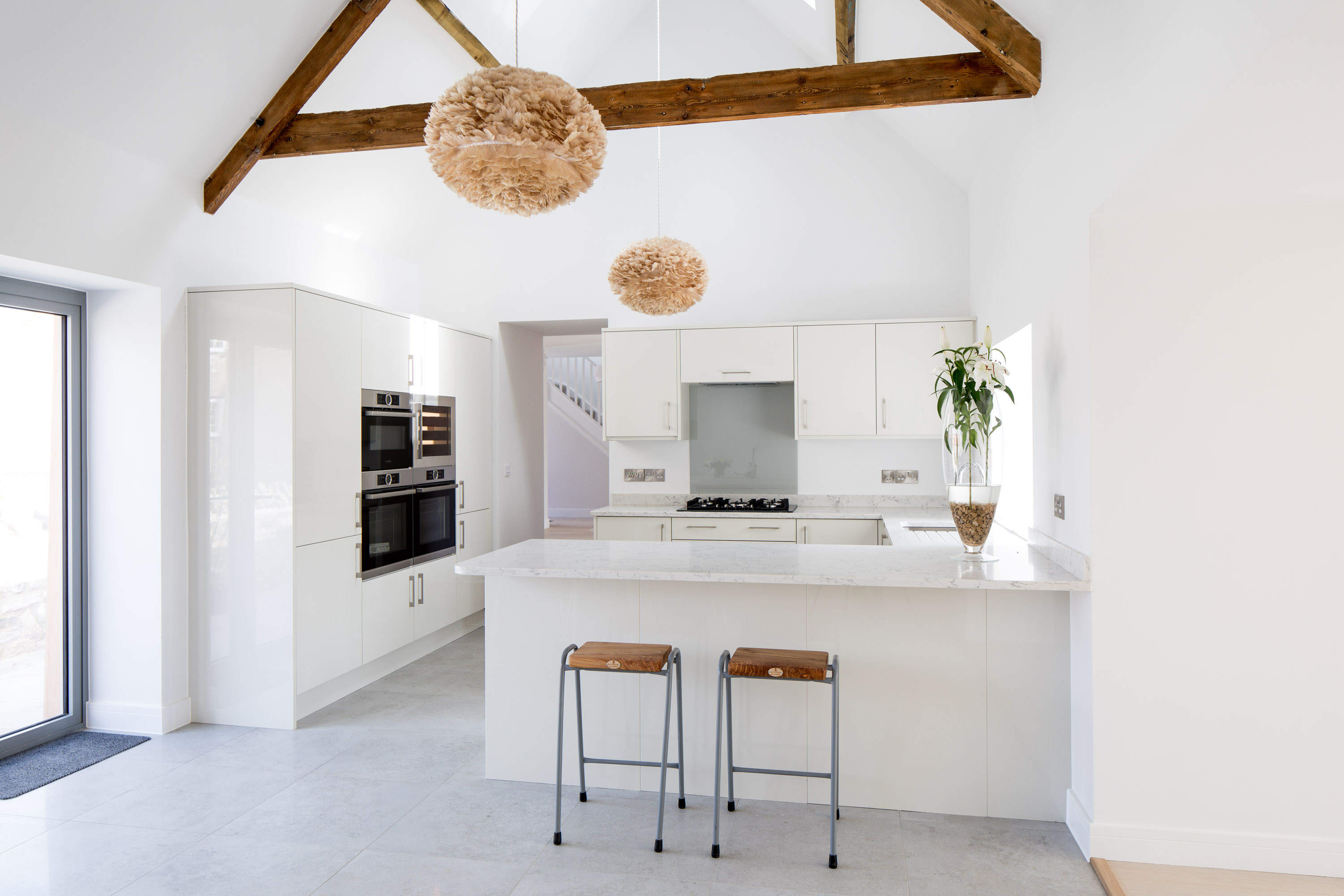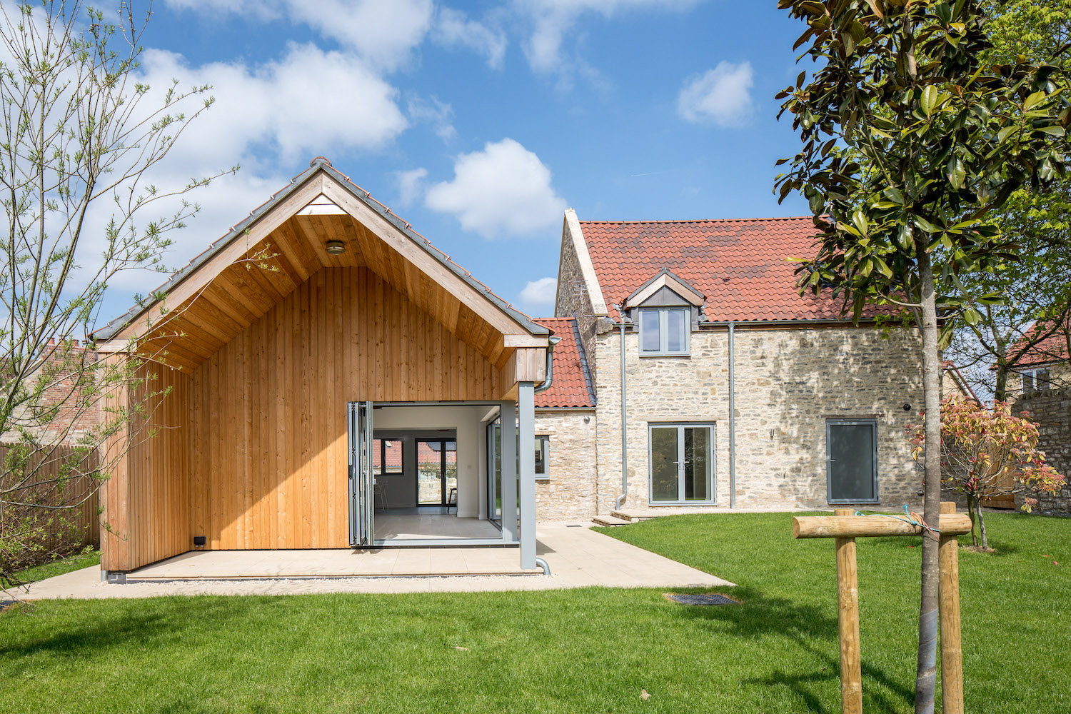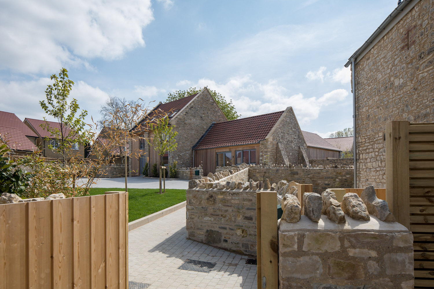 Staunton Manor Farm is a developer led project based in Whitchurch, Bristol. Architectural services were provided through RIBA Stages 2-5, including liaising with Listed Building Officers, in order to renovate and convert the existing Farmhouse, and extend the outbuildings to provide eight contemporary and sustainable homes. The proposal is designed to preserve the original character and qualities of the Grade II listed Farmhouse and its farmyard setting. This is achieved by retaining the existing frontages around the courtyard with extensions generally away from the central yard. The new extensions are highly insulated and clad in timber to contrast with the existing white and blue lias stone buildings.