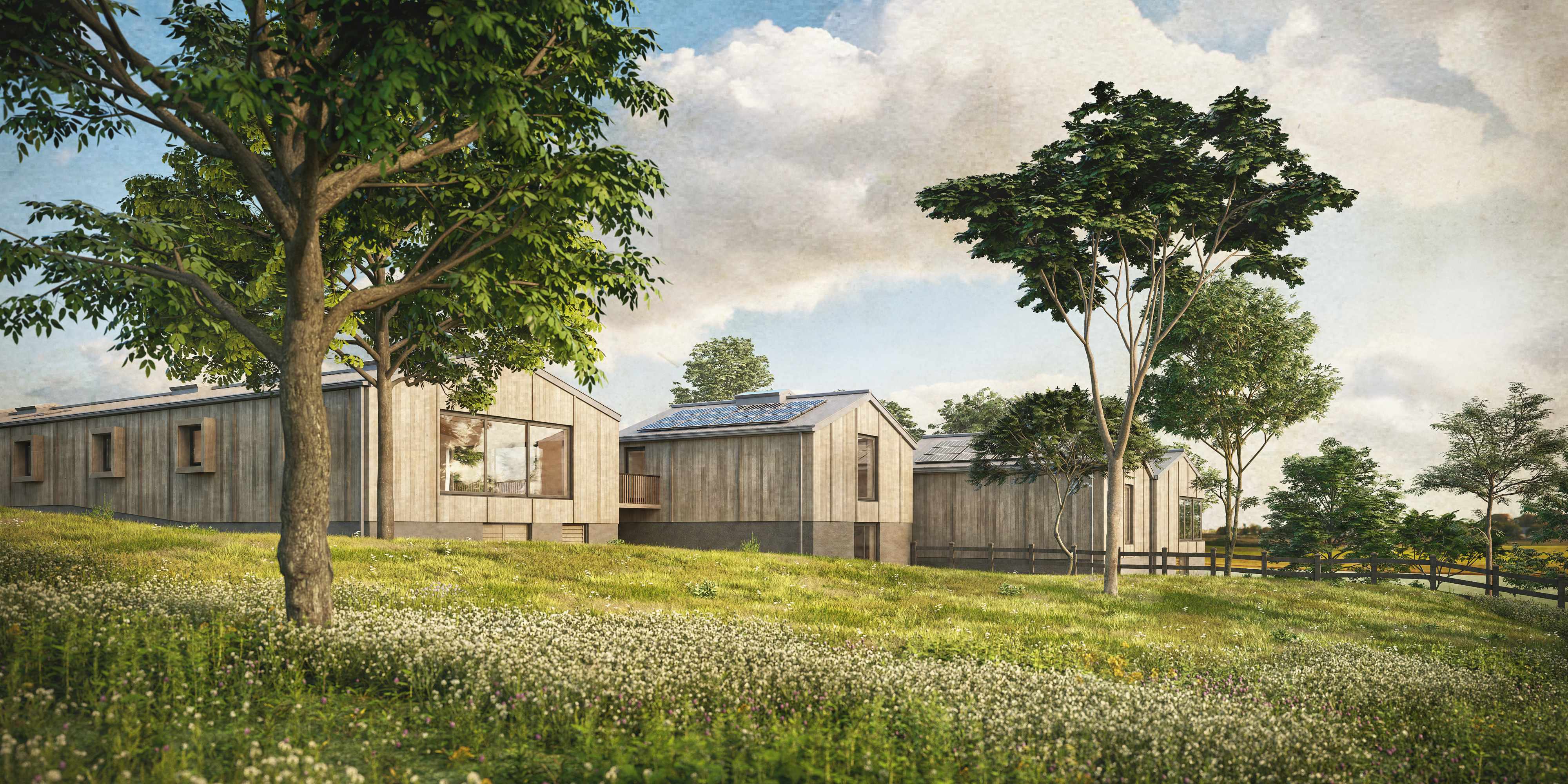 A developer led scheme to convert a former poultry farm into two unique and sustainable residential properties within an Area of Outstanding Natural beauty (AONB) in the Somerset Countryside. Following an initial consent for conversion of the sheds into dwellings, the Practice worked alongside a planning consultant and the client to secure full planning permission for a revised and much improved scheme. ACA offered a bespoke service which spanned RIBA Stages 3-5, and included rationalising the internal layout and integrating energy strategies to improve the environmental performance and desirability of the dwellings. These included solar PV panels, high levels of insulation and airtightness to minimise energy demand, and heating and ventilation controlled by mechanical ventilation and heat recovery (MVHR) alongside air source heat pumps (ASHP).