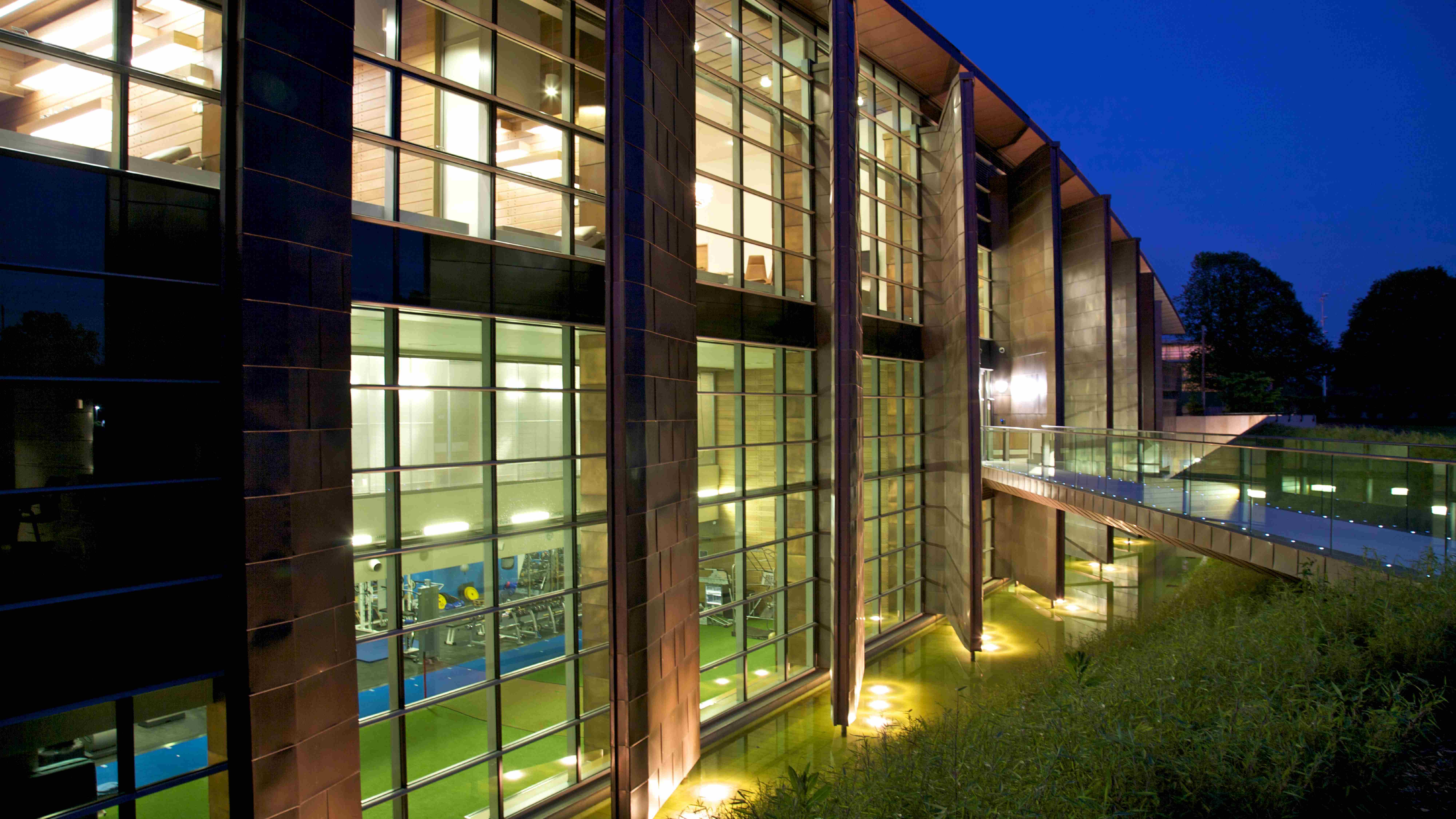 Cobham Training Campus unites all of the club’s football operations across a 140-acre site in Surrey, combining elite performance, rehabilitation and medical facilities within a carefully designed landscape. The project has been recognised for its design quality and sustainability, receiving both the MSA Design Award in the Sustainability category and the Commercial Property Award. The first team training centre was completed in 2007, followed by the Academy and Community Pavilion in 2008. A later extension in 2014 expanded the gym, medical and office areas through the sensitive infill of an existing moat, increasing floor space by 25% while respecting the site’s green belt setting. The BREEAM Excellent facility accommodates 30 pitches, including three with undersoil heating and six to Premier League standard, alongside an indoor pitch, media centre, rehabilitation spaces and a 56ft hydrotherapy pool. The architectural form takes inspiration from the natural ground plane, with a green roof that enhances biodiversity and reduces visual impact. Glazed facades maximise daylight while being protected by weathering metal panels that provide shading and texture. The moat infill extension features north-facing offices with frameless glazing to optimise natural light without solar gain. Flat glass rooflights bring daylight deep into the interior, ensuring the new facilities integrate seamlessly with the existing building. A second pavilion for youth and community use continues the campus’s architectural language, featuring free-weathering brass cladding, ochre-rendered plinths and horizontal curtain walling. Together, the buildings create a unified, high-performance environment in harmony with the surrounding landscape.