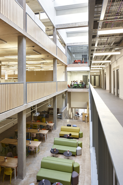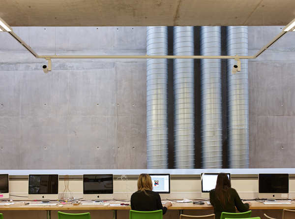Austin-Smith:Lord was appointed as Lead Designer for the RIBA Award-winning, £10m new build Cardiff School of Art & Design, which is the second major phase of development at the campus following the RIBA Award winning Cardiff School of Management. The internationally recognised School is now able deliver all its courses and develop its research in a modern facility that brings together all of its interests in fine art, ceramics, product design, illustration, making, graphic communication, textiles and architectural design and technology. We assisted the client in developing the design brief and we produced a number of design options to suit the constrained site. An options appraisal was carried out, with the preferred option developed through to a successful planning submission. The client’s aspiration was for an inherently simple to use and low energy building, delivering a high quality piece of design befitting of the School of Art & Design and raising the profile of the Llandaff campus. The building is designed around an in-situ concrete superstructure. Concrete floors, soffits and walls have been left exposed to provide robust self-finishes, and thermal mass to aid environmental control of the spaces. Generous floor to floor heights provide spacious open plan studio spaces, inherently flexible in use, with full height windows allowing good daylight penetration. The building is predominantly naturally ventilated using cross ventilation, with air being drawn up through two central void spaces using the ‘stack effect’. Simple controls have been used in place of more complex ‘remote’ system, in order to allow occupants to control their own spaces and provide a low cost solution with minimal future maintenance costs. Using NEC Option C (Target Cost), the project was delivered for approximately £1,000 per sqm representing fantastic value for money to the University.