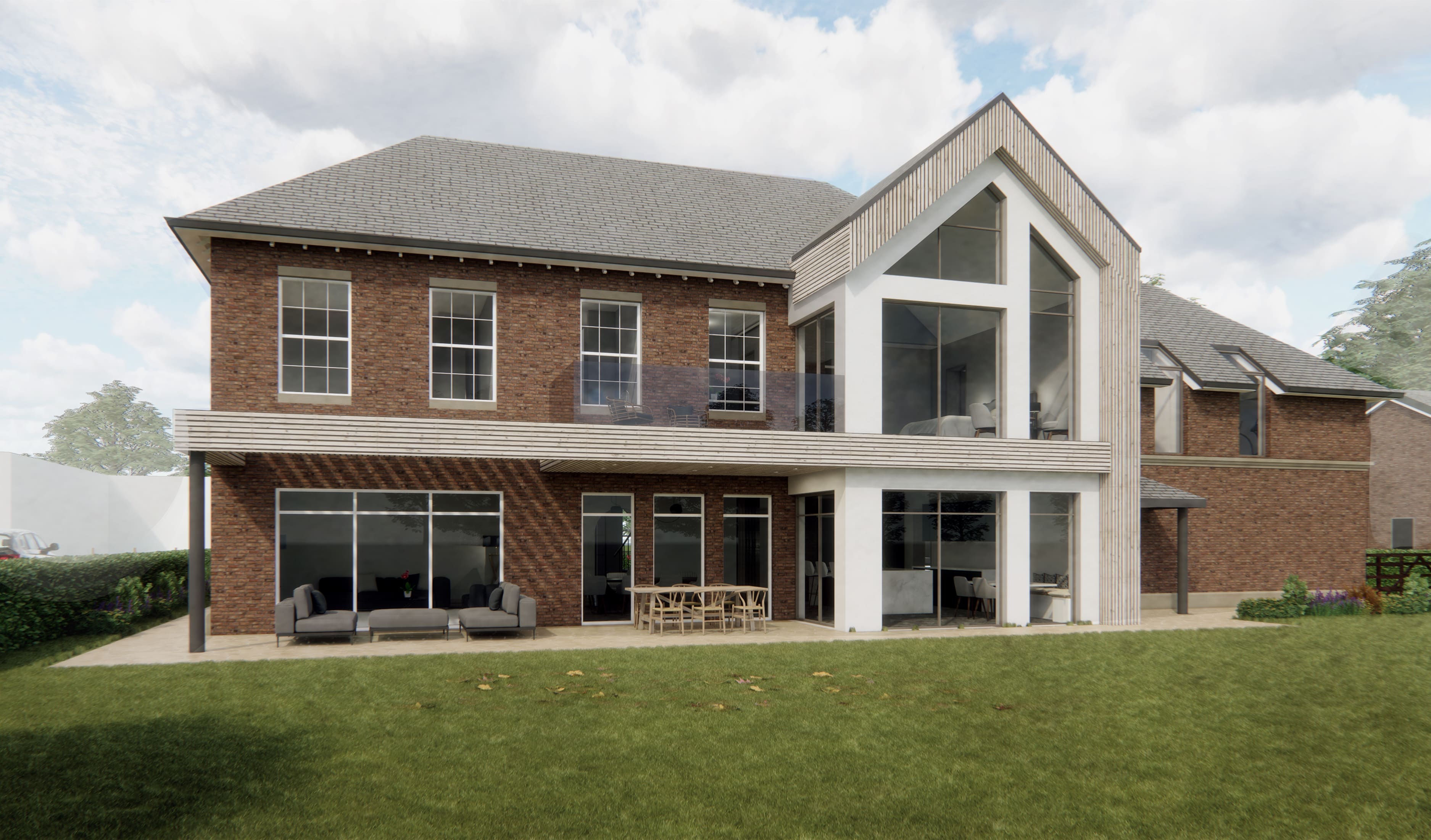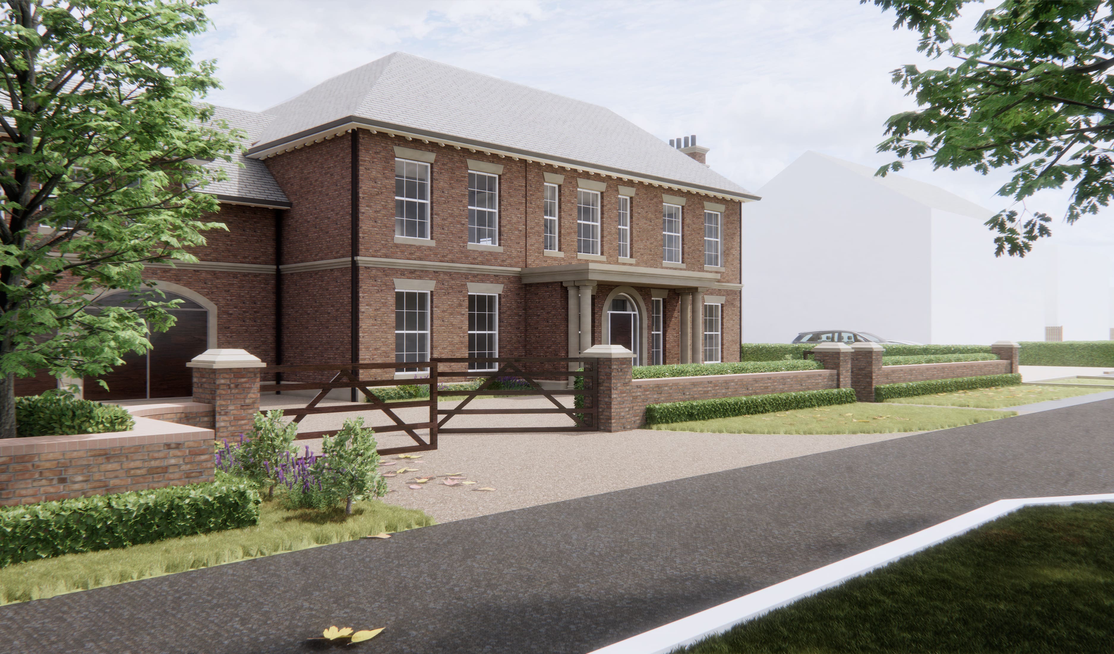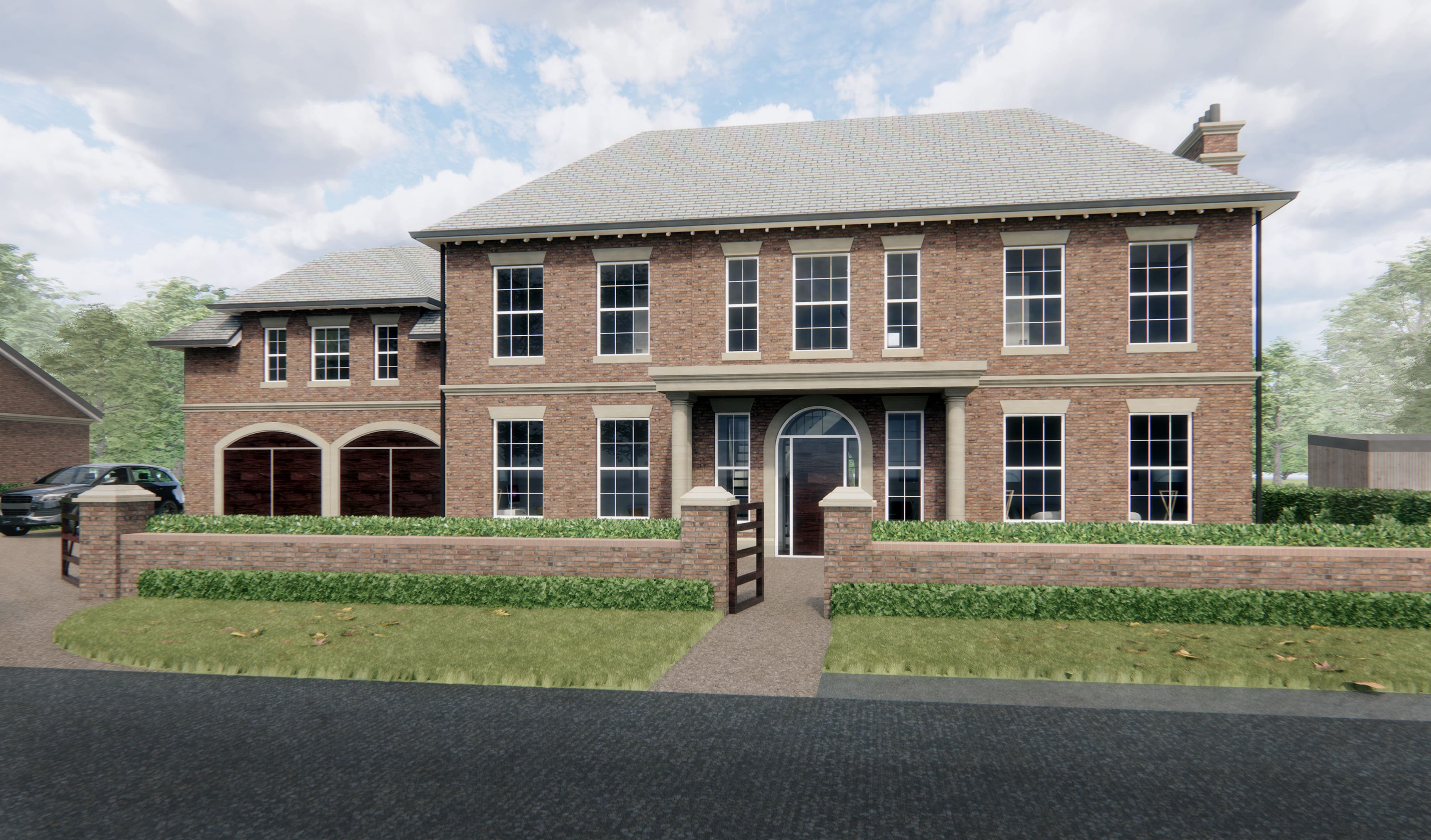 The brief from the client was for a 'Georgian' Style home with a grand entrance hallway, to the rear of the property a more contemporary approach was requested. We worked closely with the client to blend the two styles and incorporate their 'must have' features. The site is situated in the Greenbelt, we initially submitted a Planning in Principle application to establish the principle of a dwelling on the site, before entering into the detailed design phase on the contentious site.