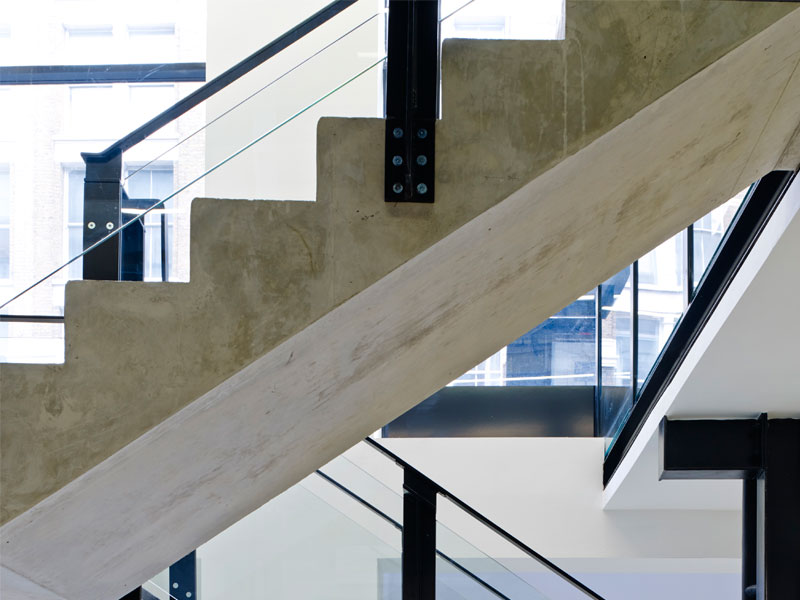 The Bryant Building is an existing late 19th century former warehouse situated on Great Eastern St in Shoreditch London. The character of the building is typical of the area, with a steel frame structure clad with London stock brickwork. It was originally used as a workshop and warehouse for furniture makers. The refurbishment of the building restored the existing cast iron columns, beams and brickwork to their original character to reflect the character of the former warehouse. The works included replacement of the existing windows to a high performance timber sash window, lowering the ground floor for increased accessibility and infilling of the light-well to create an increase in floor space. A new reception to ground floor has been created with a polished concrete floor and a bespoke patinated brass desk. New exposed services and lighting were installed throughout. In addition to this refurbishment, eight apartments will form a new roof extension to the existing building known as Willow Street Apartments