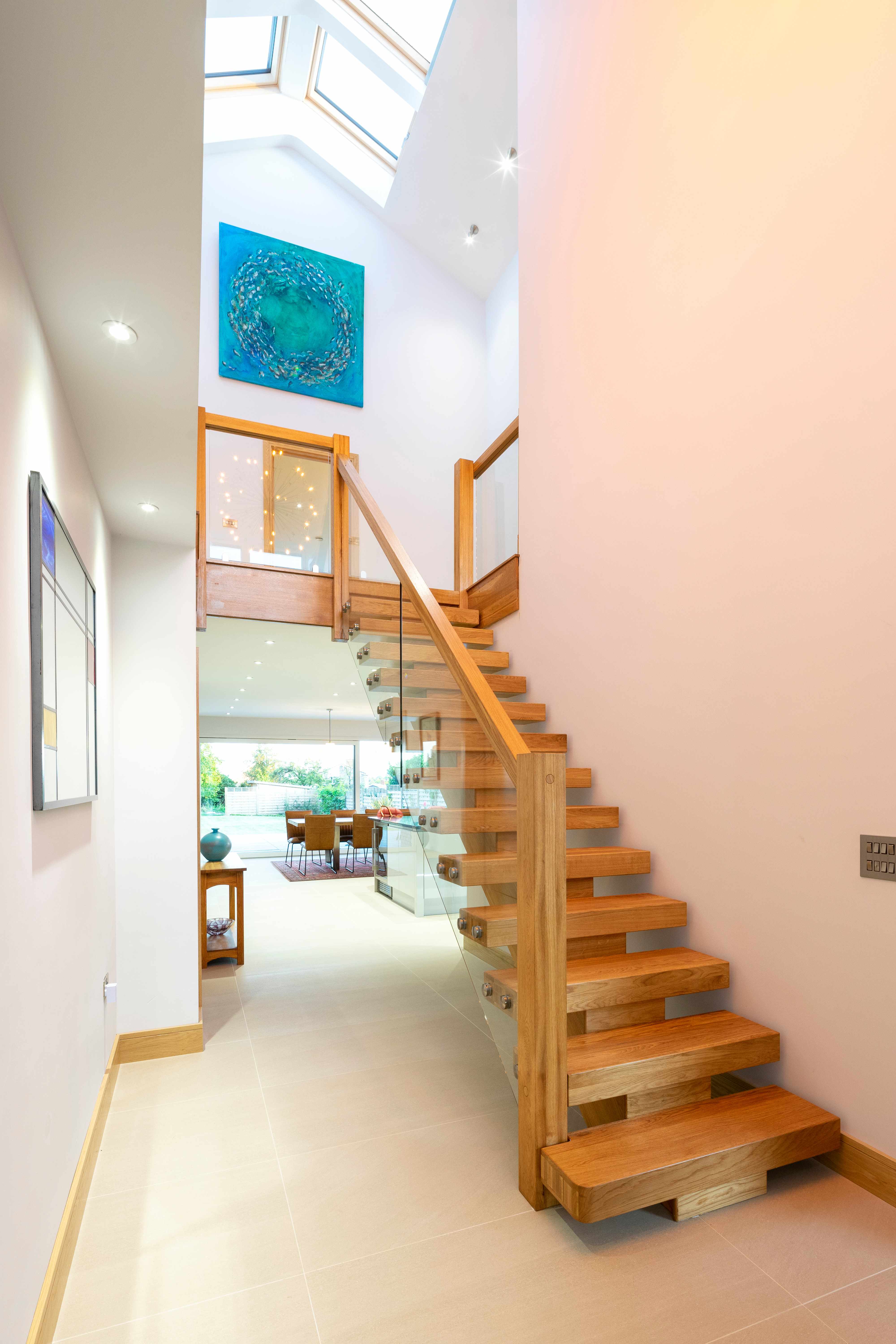 This is a whole new build house project. The client brief was to create a Multi-Comfort Home and achieve a Passivhaus design and build standard to deliver a truly sustainable home for the future. They were also keen to be part of the build process by project managing and overseeing the works. The Benchmark Architects team designed a unique 4 bedroom detached house with 3 reception rooms including a large living kitchen and dining space at the rear of the property facing onto the garden to the south. The house was designed with tall ceilings and a double height hallway, in which a feature staircase and gallery landing are set. The rooms are all dual aspect to maximise daylight and the house is equipped with super high levels of insulation and air tightness to make sure that very little heat is lost. The house also features high specification of finish including even paint which reduces VOX toxins in the air creating a cleaner and fresher environment for living. The house achieved Passivhaus accreditation which is the highest level of sustainability measure for construction.