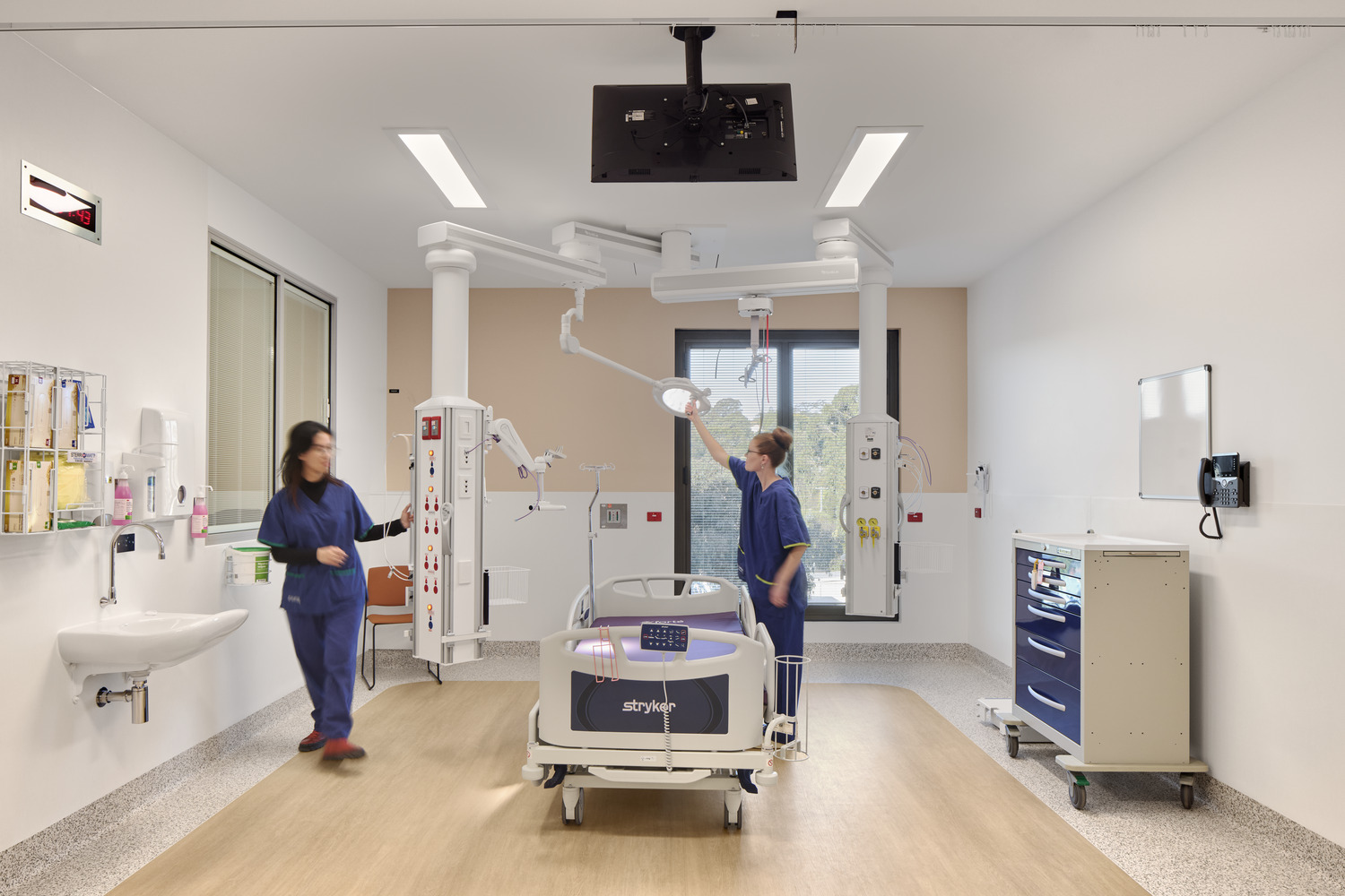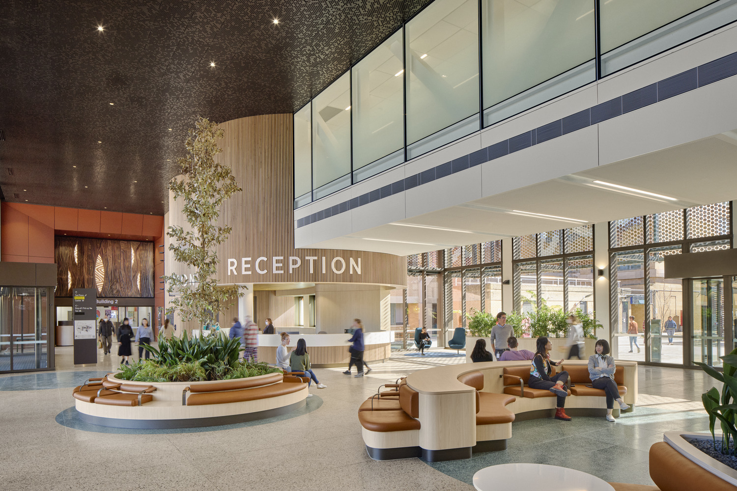 A testament to the benefits of deep community consultation, the Canberra Hospital Expansion project is designed to meet the needs of a growing region. Designed in direct consultation with hospital staff and the local community, Canberra Hospital’s new home to critical care services fosters healing and connection by prioritising the needs of patients, carers and staff. Setting a new sustainability benchmark for Australian healthcare facilities as the country’s first fully electric hospital, the expansion houses the new Emergency Department, Intensive Care Unit, operating theatres, day surgery with expanded recovery areas, cardiac care unit, and inpatient wards. A community consultation process informed the final design. BVN spent over 1,200 hours liaising with hospital user groups, community reference groups and consumer focus groups. This collaborative approach was undertaken to ensure the prioritisation of the end-user at every turn, from general bedroom configuration down to the most efficient placement of coat hooks. Prototype rooms for testing were constructed ahead of the main build, so that hospital and community representatives would have an opportunity to assess the functionality and provide feedback to our team. The space is open and modern, with thoughtful and innovative design interventions. These include colour-coded wayfinding and dedicated functional Patient Lounges with ample space to accommodate larger groups of family and friends and seating nooks beside windows that offer calming views of the mountain ranges beyond — a welcome area of respite from shared bedrooms and communal spaces. In the bedrooms, BVN incorporated overnight sleepers for carers alongside more conveniently placed entertainment units and joinery, ensuring that the space operates as efficiently as possible for all those who use it without compromising on necessary amenities. The Family Respite Lounge on Level 4, unique to Canberra Hospital and developed directly from community consultation, features shower facilities, resting pods, food preparation areas and work desks. This space is available for carers and families dealing with the unplanned admission of a loved one. It also hosts secluded meeting rooms where hospital staff and social workers can conduct necessary consultations with family, away from the bustle of the Emergency Department. The new Intensive Care Unit allows patients to benefit from outdoor environments while receiving critical care. It features two terraces with sheltered bays fully equipped to support outside medical equipment. At the heart of the project, the vibrant new reception and entry to the hospital also functions as an engaging hub with outdoor terraces and courtyards for all frequenting the hospital. The new building sets a benchmark for Australian healthcare facilities and ushers in a new era as Australia’s first all-electric hospital building. Powered by 100% renewable energy, its emissions impact is reduced by approximately 1,886 tonnes of carbon dioxide per year, the equivalent of taking 780 cars from Canberra’s roads every year. Delivered by global construction company Multiplex, the unique regenerative design prioritises waste streaming stations to reduce landfill and passive design principles such as sun shading throughout. Site-specific artworks curated by Creative Road further enhance the public spaces in and around the building — locally based artists, including Hannah Quinlivan, Kate Vassallo and Musonga Mbogo celebrate Canberra, its surroundings and people, while the expansive works of Ngunnawal, Wiradjuri and Kamilaroi artist Lynnice Church and Ngunnawal artist Bradley Mapiva Brown honour First Nations culture and Country. Church’s artwork, ‘Journey of Healing, ’ crowns the new entry to the hospital building, which has 24,073 shimmering metal discs depicting healing pathways and the roles of family, visitors, specialists, and hospital staff in supporting patients. As the latest addition to BVN’s portfolio of healthcare projects within Australia, including the recently completed Logan Hospital redevelopment in Queensland and Prince of Wales Hospital Acute Services Building in Randwick NSW, the Canberra Hospital Expansion enables a bigger and better healthcare facility that is designed to meet the needs of its growing community for years to come.