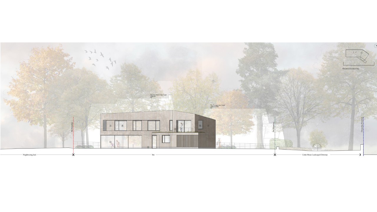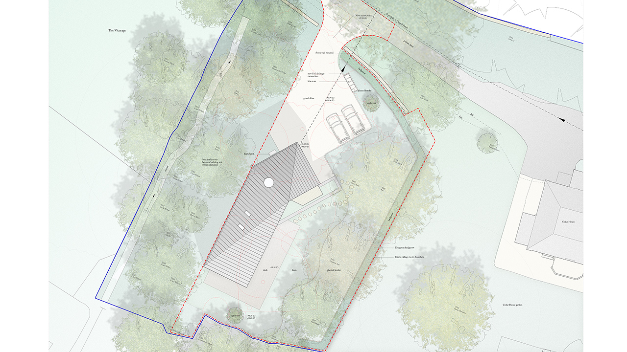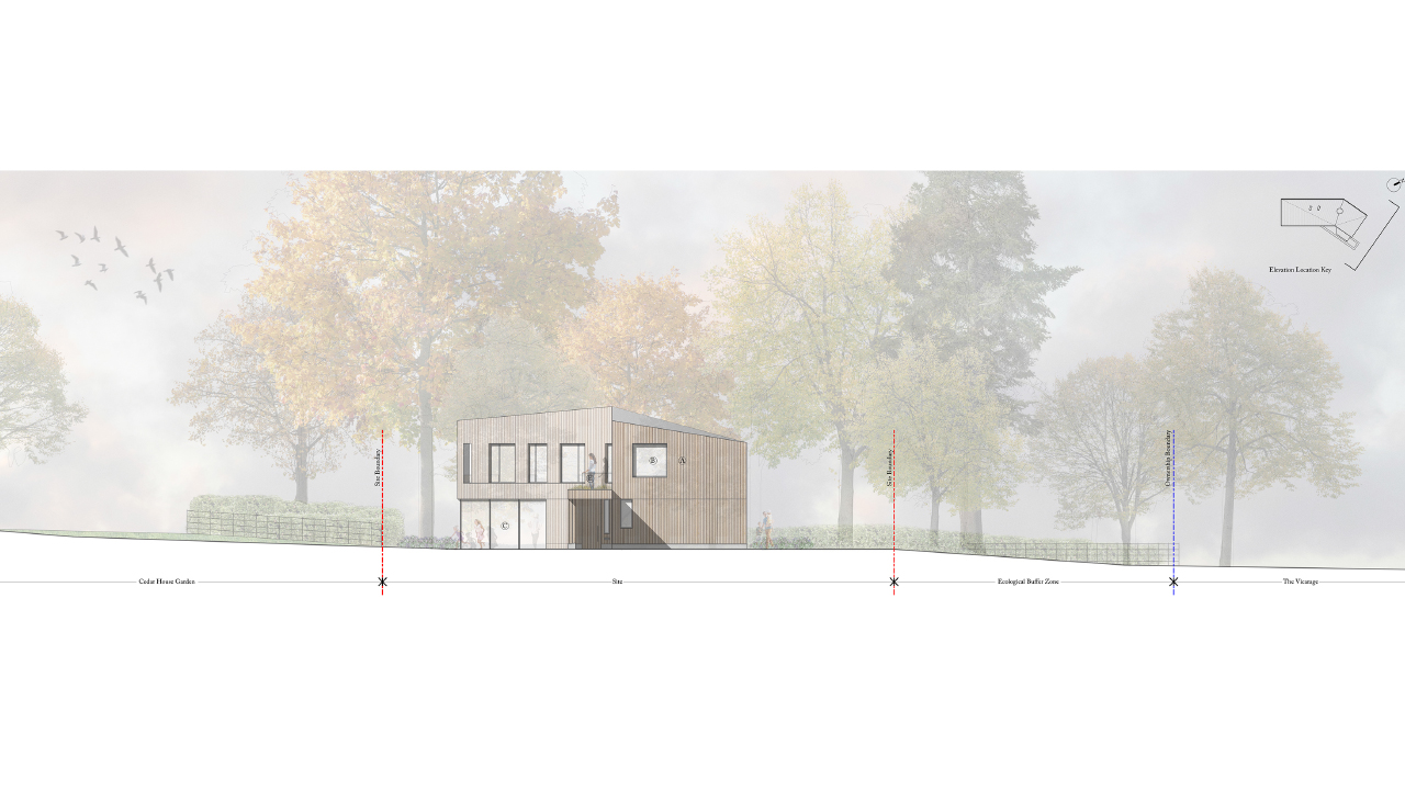 Orchard House, New Build low energy 250m2 home within a wooded site in the Shipton under Wychwood Conservation area, West Oxfordshire. - Preparation of designs and submission of planning application including heritage statement - Liaison with West Oxfordshire District Council at pre-app to determine the viability of a new house on the site - Site with multiple constraints including tree's, ecology, biodiversity, a stream, within the AONB and conservation area and within the curtilage of a Grade II Listed building. - BNG asessment required and off-site compensation within the ownership - A contemporary design responds to its wooded setting and site constraints - Liaison with specialist sub-contractors to develop initial technical proposals for MMC part-off site construction techniques to ensure a quick build process