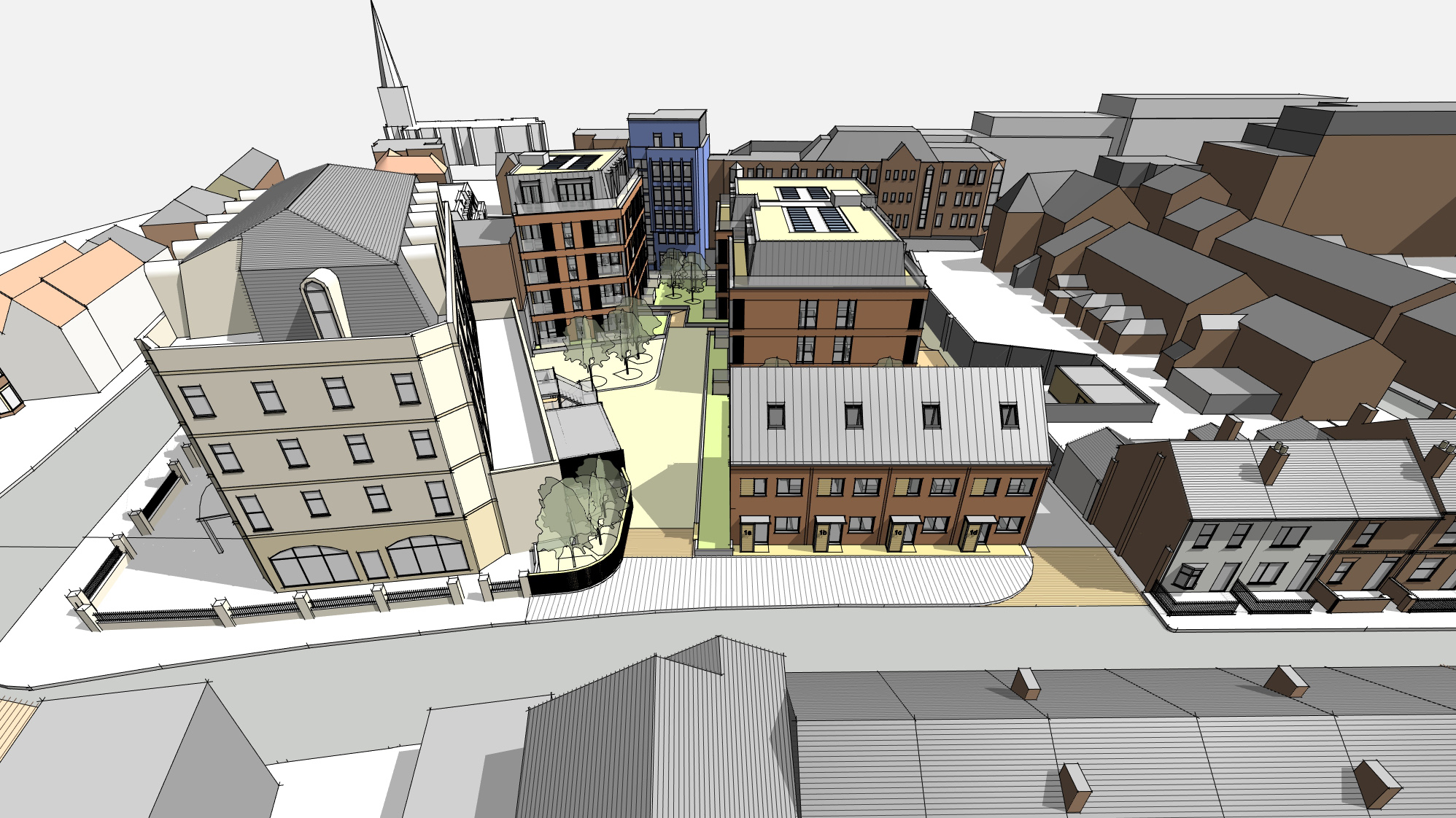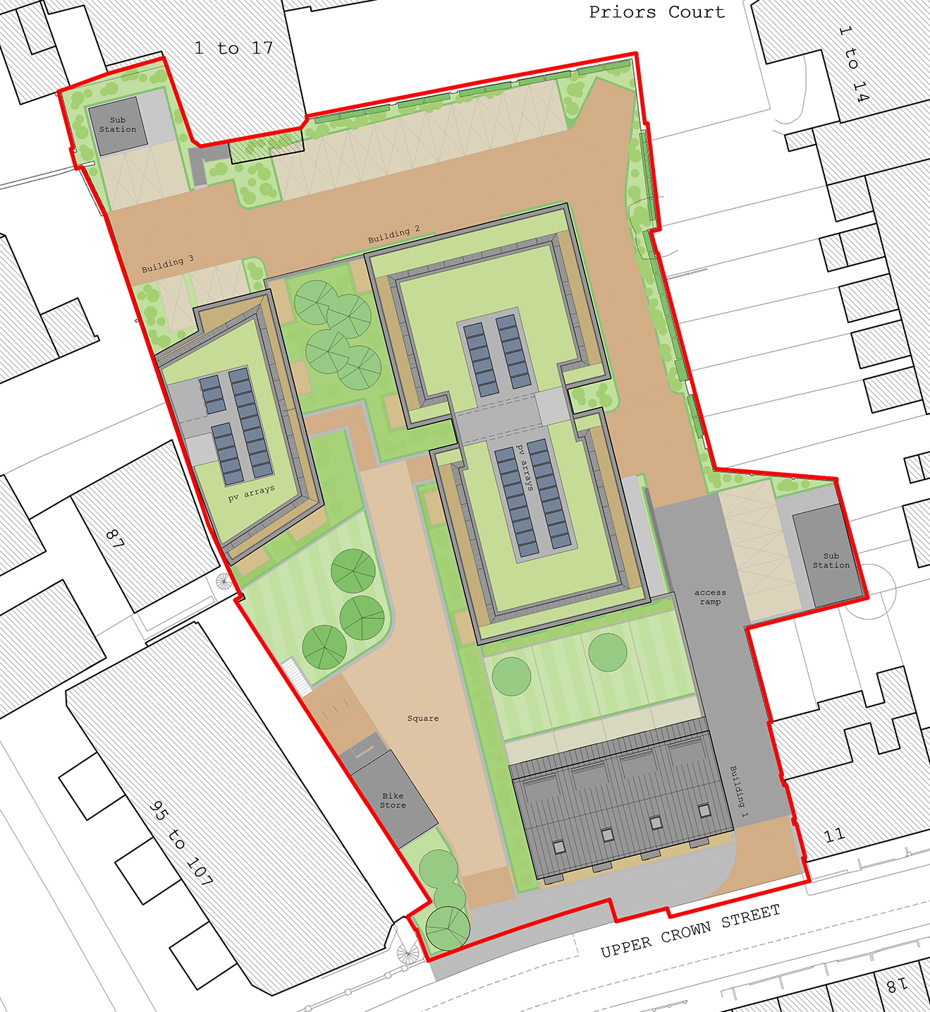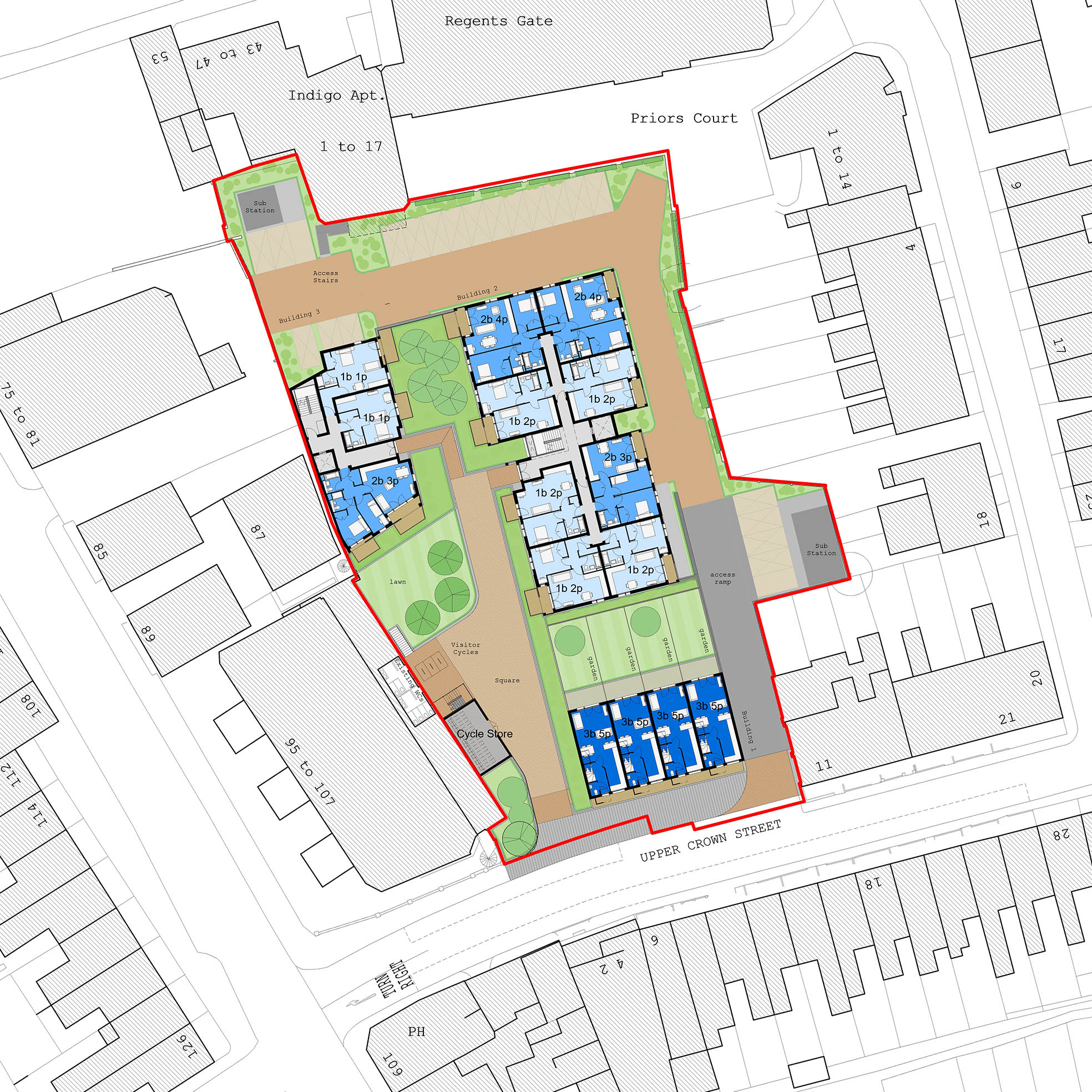 Colony Architects have taken the scheme at Upper Crown Street through several iterations as various political and technical constraints come to light. Feasibility studies, concept design, pre-application advice, planning submissions, design review panel, appeal and public hearings all undertaken to date.