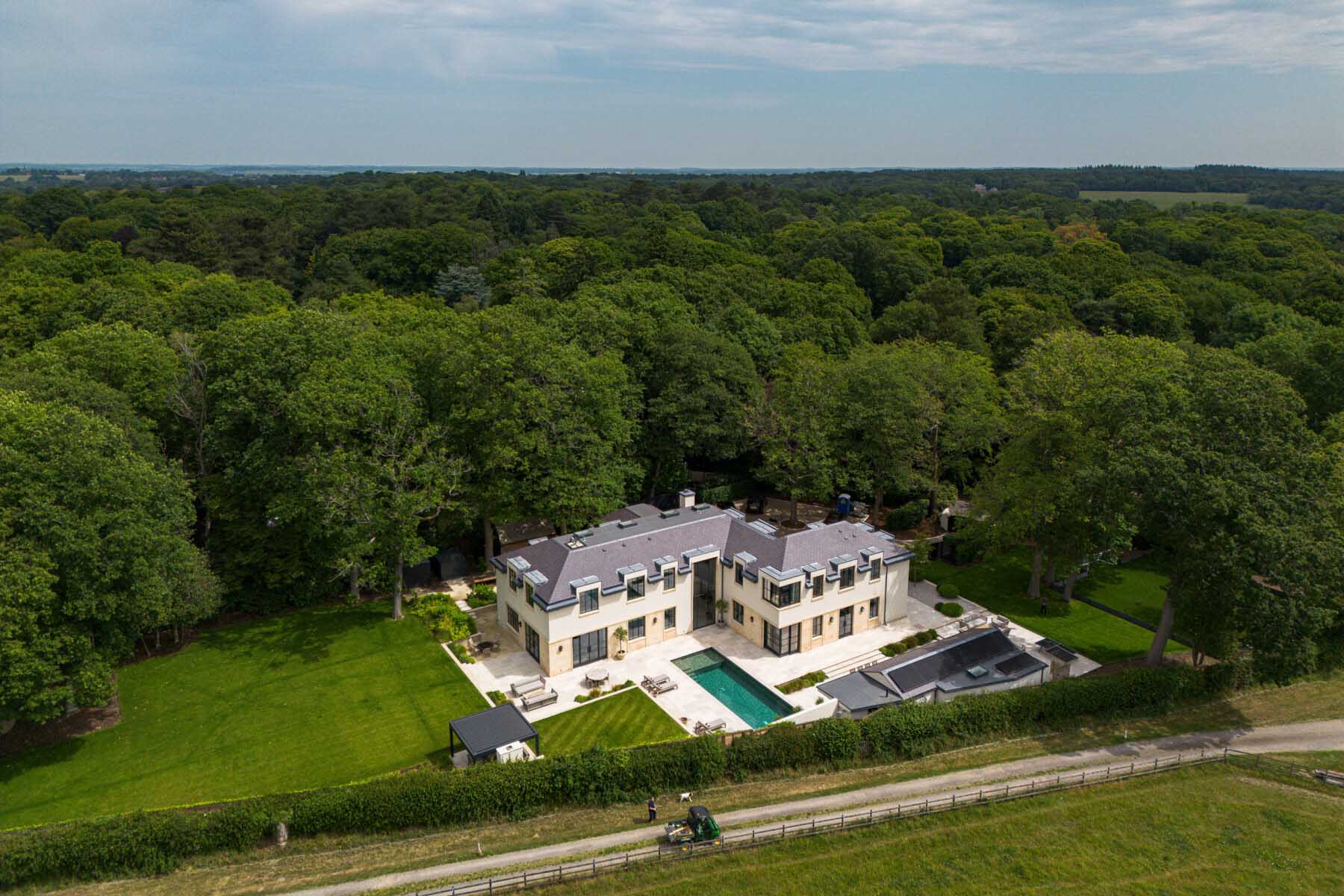 This beautiful site sits in Tewin, in the the heart of the East Hertfordshire Greenbelt with unobstructed views across the countryside and down to London. The main house is arranged in two wings with family rooms to the North and a formal room to the South. The southern wing is set forward on the site to enable the double height hallway to open up to the rear garden. This features a spectacular two storey high sash window allowing for the owners to enjoy the very special view. The key feature in the master bedroom is a dramatic corner-less lantern window as a modern twist on a traditional turret. The design takes precedent from elegant Georgian proportions whilst maintaining a contemporary and understated approach to detailing.