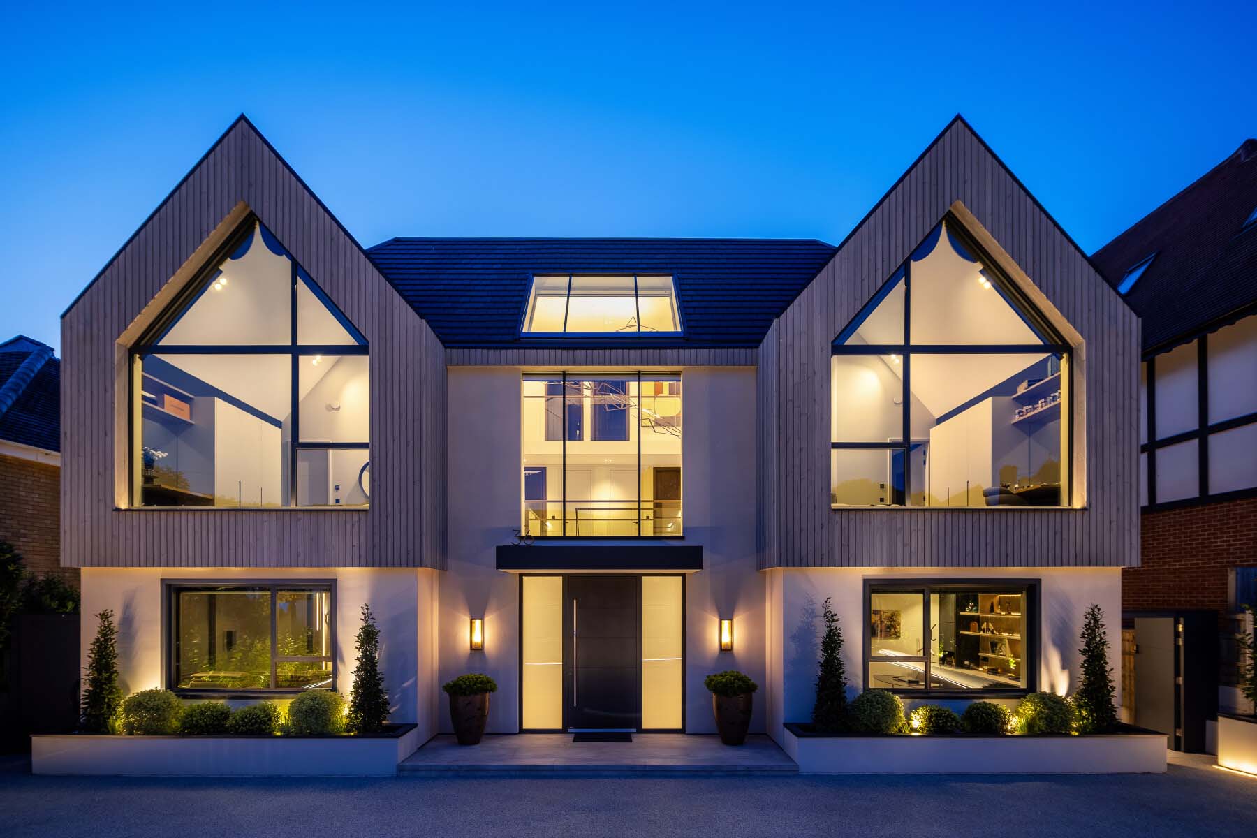 Designed with socialising at its heart, this home makes a bold statement with its silver timber cladding and modern aesthetic. Step inside to a stunning feature staircase and three-story atrium, bathed in natural light from an up-and-over rooflight. The real showstopper? A stepped outdoor living space featuring a reflection pool, stepping stones, a stylish seating area, and a fully equipped outdoor kitchen—perfect for hosting unforgettable gatherings. C8 managed the entire project as a turnkey solution, delivering exceptional design, interiors, and a seamless build process.