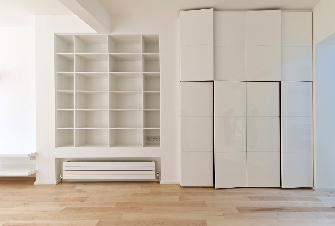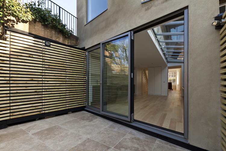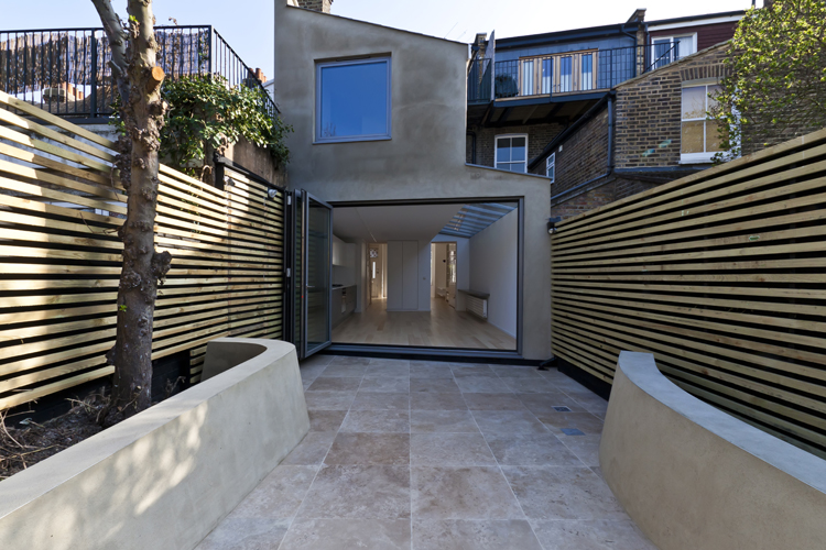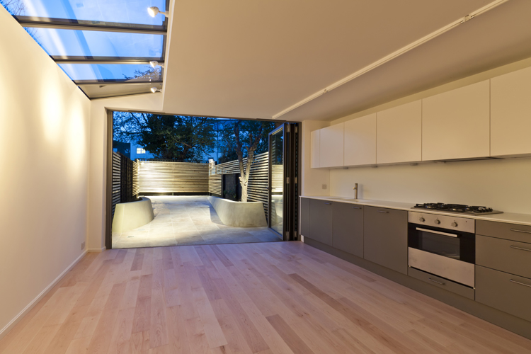 Starting from the garden we linked all ground floor rooms together into one open plan space To brighten the north facing kitchen, fully glazed doors open onto the garden and an all-glass roof illuminates the side extension Generous built-in storage helps hide the clutter of family life while a large kitchen table creates a focal point for the home On first floor a small rear extension turns box room into a double bedroom and allows for the enlargement and modernisation of the existing small bathroom.
