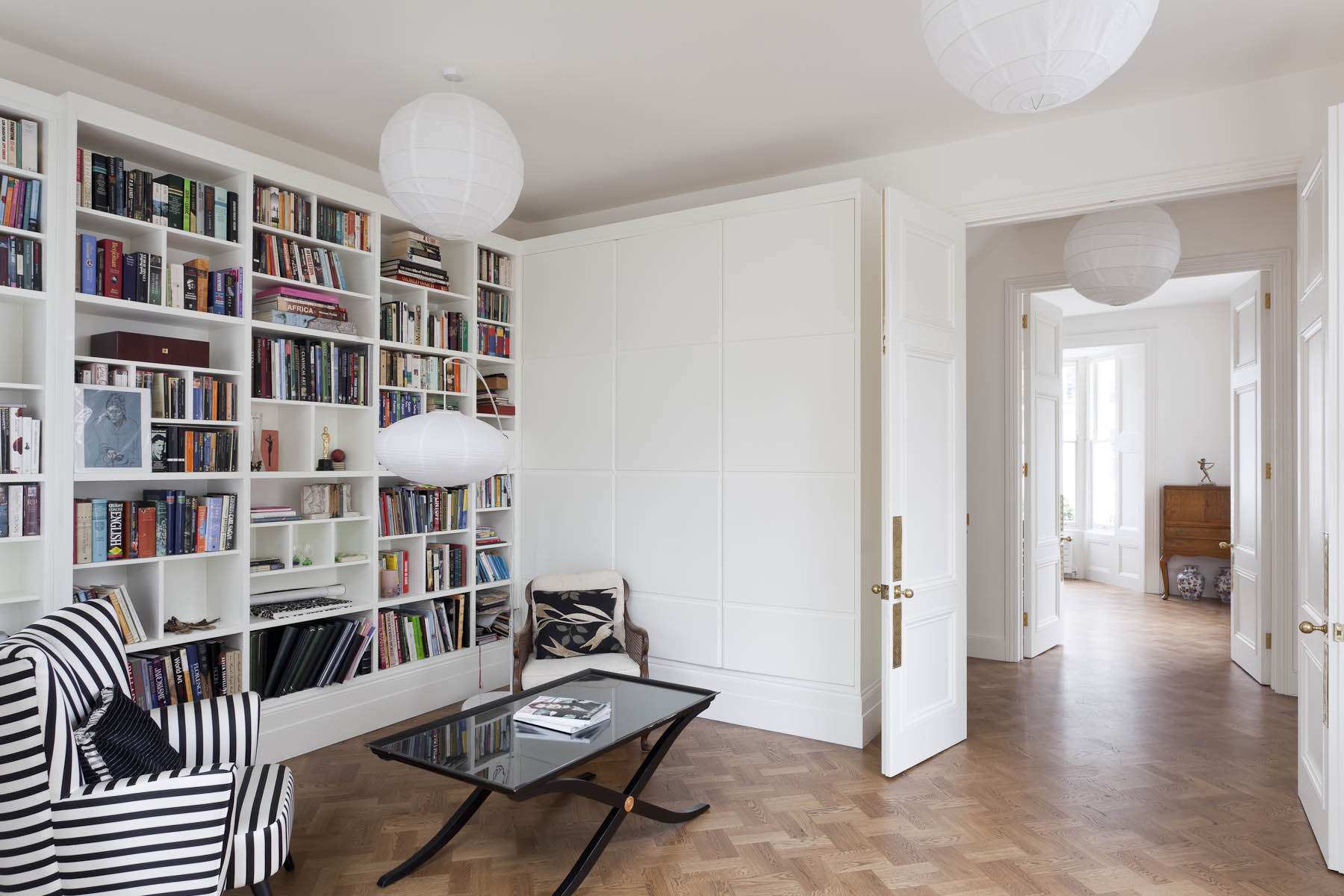 This end of terrace Victorian house had been lived in un-altered since the 1970s and had to be sensitively refurbished to bring it up to modern standards without loosing the best elements of it's original character In addition to renewing all of the existing services, a series of small alterations on each floor were made to open up spaces and increase natural light. These included: 2x3m structural glass skylight inserted above main staircase. New structural openings formed linking front and rear ground floor living rooms Obtaining planning consent to re-build existing 1970s rear extension to match scale of existing house. Creating link between lower ground floor and garden by excavating the rear garden and extensively re-landscaping. Inserting a walk-on skylight and new glazing to bring natural light into family rooms on lower ground floor Adding ensuite bathroom 'pods' to top floor bedrooms. Excavating and waterproofing redundant basement space to create WC/utility room and wine cellar.