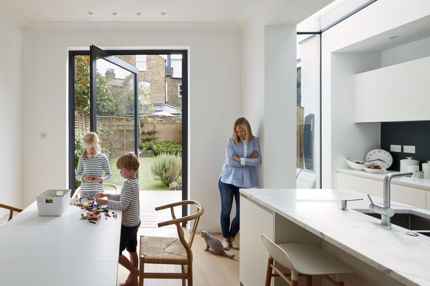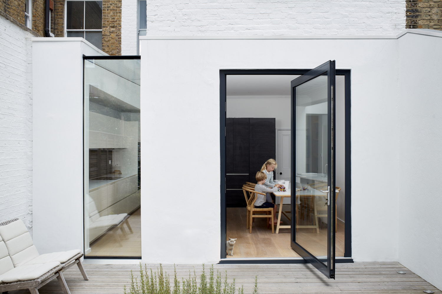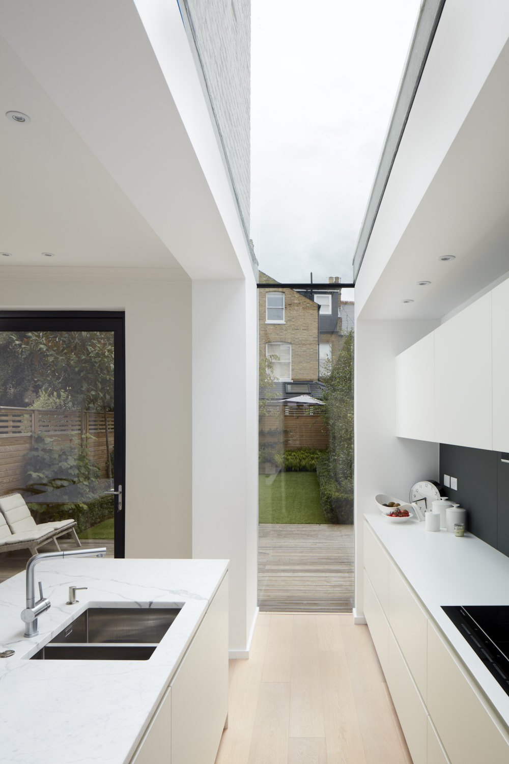 A structural glass slot and pivoting door bring a new twist to the classic Victorian house extension creating a subtle modern backdrop to the rear deck & garden. LOCATION: Putney, London SW15 DATE COMPLETED: 2017 BUILT: Elson Construction and Company ENGINEER: William Chappell. PHOTOGRAPHY: Matt Clayton Photography OUR SERVICES: Planning and building regulation consent Design & detailed design Tender & contractor selection Full project management