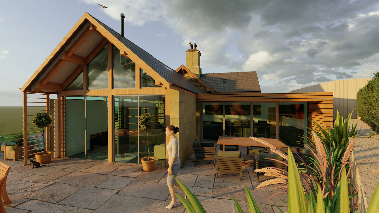 Greenbank Lodge is a local heritage asset being one of a series of similar lodges around the town. Davenport Architecture were approached to prepare designs for a contemporary extension, which respected and worked with the original architecture. The design has a simple floating pitched roof over an oak framed structure. High level slot windows provide natural light whilst maintaining privacy from the nearby public areas. The south facing gable provides views into the valley and a flat roof structure tucked at the rear provides new contemporary kitchen spaces with a private south facing patio.