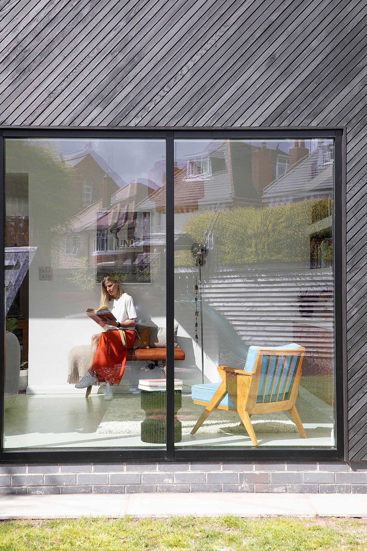 Design Haus were commissioned to extend and modify this 1920s family home in West Bridgford, Nottinghamshire. The design focused on the specific ways in which the new spaces would be used, and the positioning of the windows and doors were aligned to suit the individual pieces of furniture that were expected to be used in the space. Externally, we chose to celebrate the difference between the old and new parts of the house, with the bold finish of the wood creating a contrast with the existing structure. Internally, we retained the large openings between the existing house and the new extension, which permitted spacious flow through the home and increased the natural light in the original house. This project was featured in Grand Designs magazine, and Good Homes magazine.