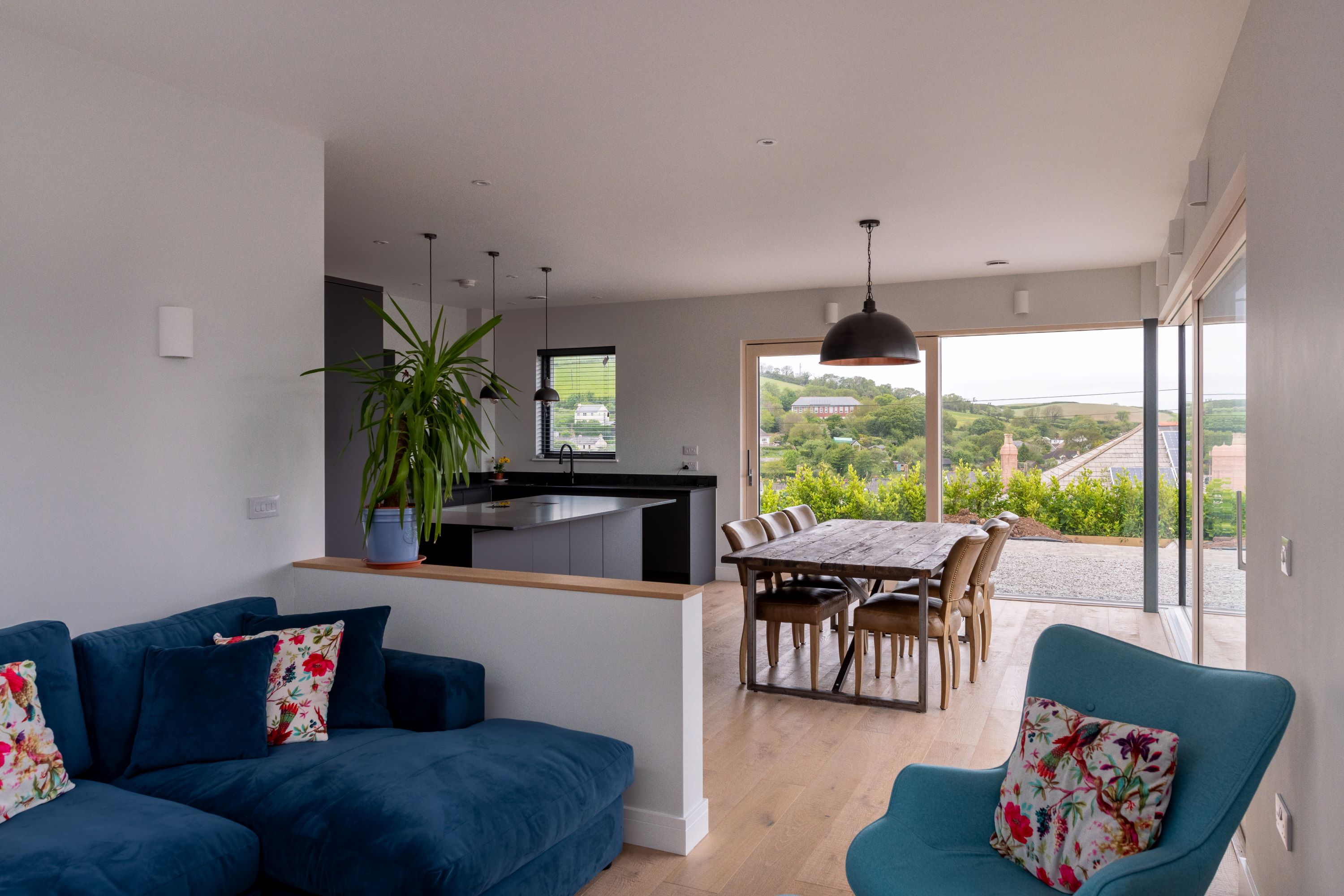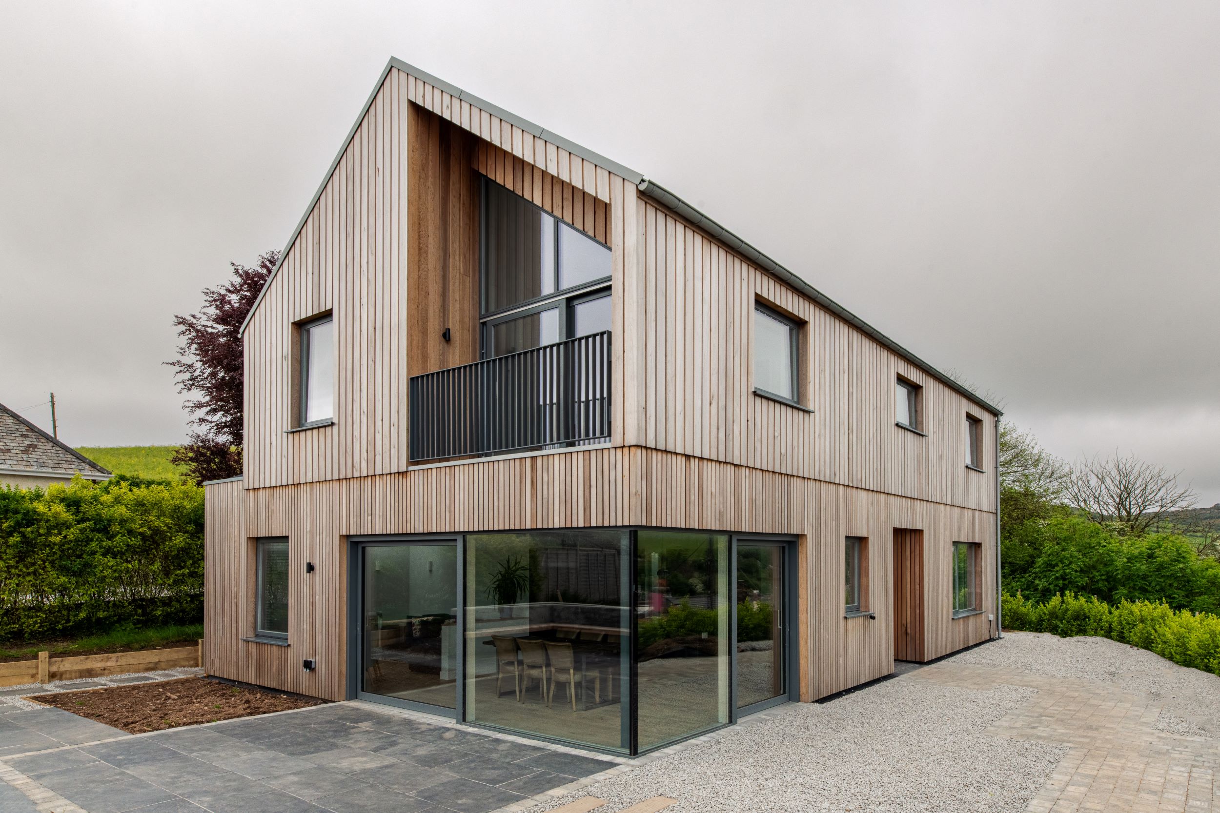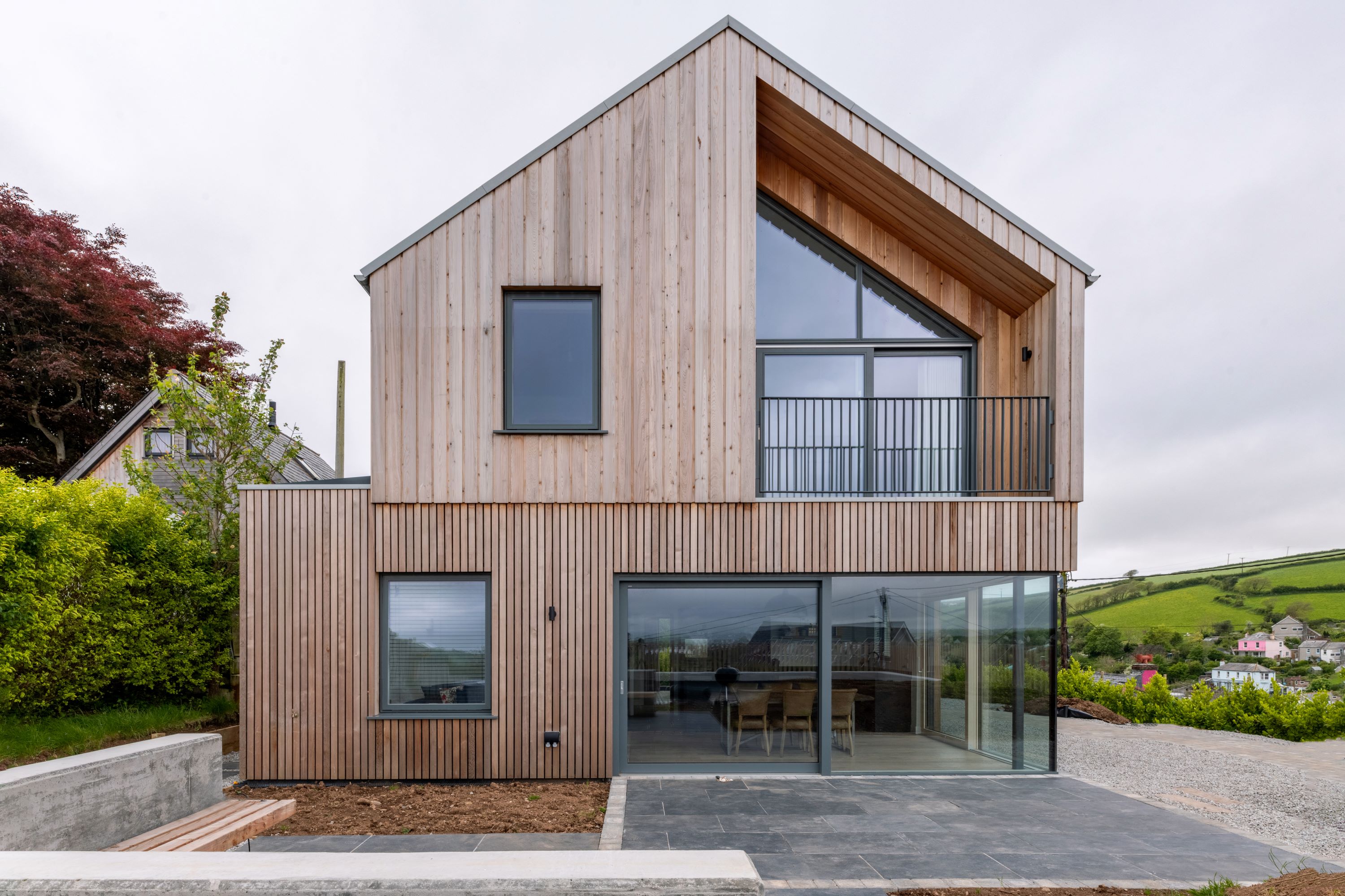 New build dwelling with landscaping and subterranean outhouses - in Millbrook, nr Torpoint, South East Cornwall. Net zero performance. Full architectural services - from concept designs, Planning approval, Building Regs approval, Tender process and Contractor selection, with construction management through to completion.