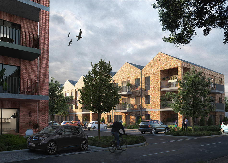 Affordable rental properties for key workers are in great demand in the location, as it is very close to Ashford NHS Hospital. The scheme consists of 110 apartments with a mix of 1, 2 and 3 bed dwellings and 5 terraced houses across three buildings. The main building Block A has been designed with a shared central courtyard for residents, while Blocks B & C have quiet communal garden spaces along the sites' boundaries. The integration of design massing and landscaping have been carefully considered. This has helped to create a rich and inviting residential environment based on the principals of contemporary placemaking.