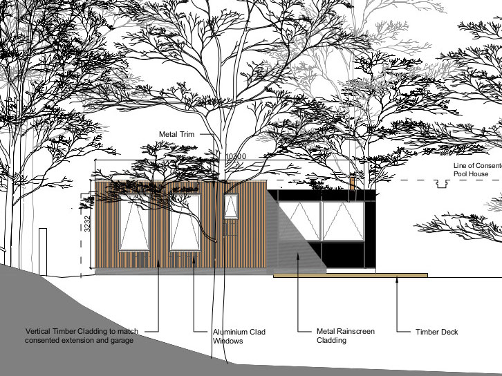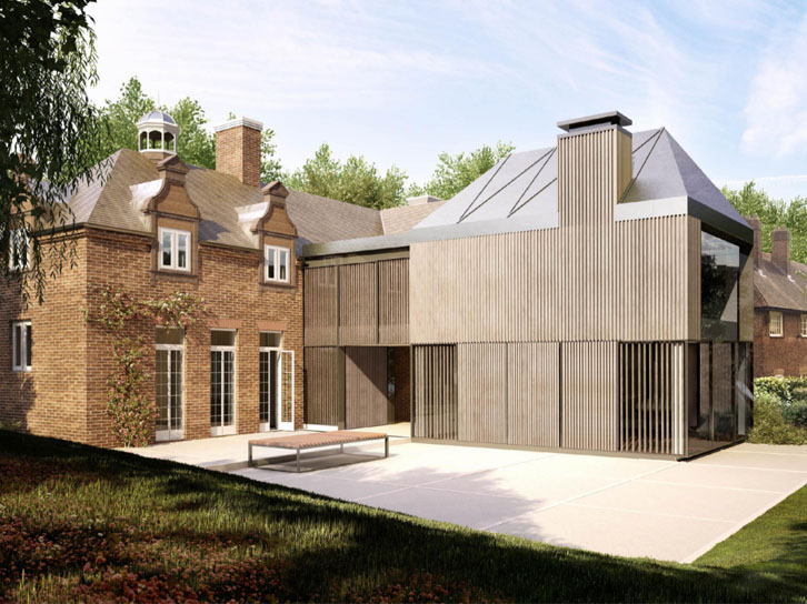Contemporary Extension Blackheath This former coach house in the conservation area of Black Heath is getting a contemporary extension complete with basement gym and cinema room. Eco Design Consultants have been commissioned to provide construction drawings for this high specification extension. The project features terracotta baguette and limed oak cladding, zinc roofing and black stainless steel trims. The living room includes large sliding doors opening up the living space and the corner of the building to a garden soon to be landscaped by CoolGardens. At the bottom of the garden Eco Design Consultants have designed a contemporary summer house for entertaining and enjoying the garden. The design is formed of two dissecting boxes, one timber clad containing a sauna and quite room, and the other metal and glass. The work is being project managed by DGSConstruction.
