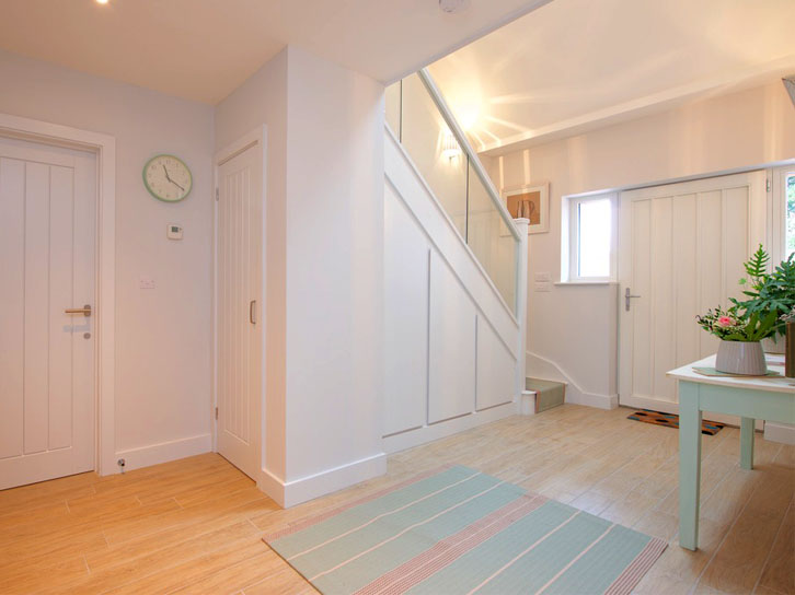 Certified to Passivhaus standard this home replaces an old unloved bungalow on the same site. The site is nestled between two bungalows and is near to a conservation area and area of outstanding national beauty. The design for this project required achieving a sensitive balance between the clients space requirements whilst respecting the lower ridge heights of the neighbors and the traditional street scene. This traditionally styled Passivhaus demonstrates that Passivhaus’ can be designed in any architectural style. The flat topped hipped roof sensitively masks the presence of PV’s whilst allowing the home to sit comfortably next to it’s neighbors.
