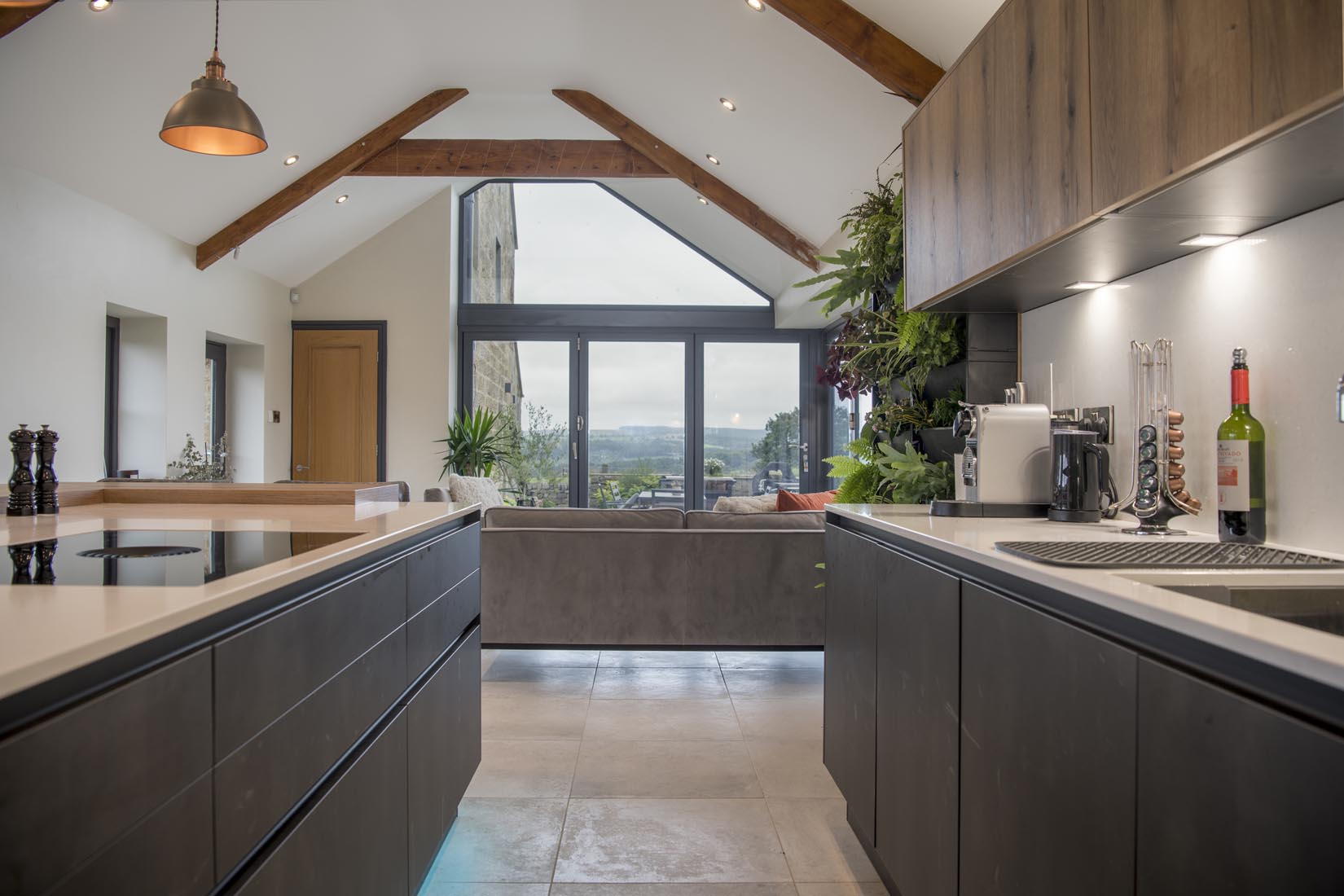 The property is an existing barn conversion close to Harrogate which also has an existing stone walled barn attached. Our brief was to convert this barn to provide a kitchen living space to capture the amazing views over Fewston reservoir.