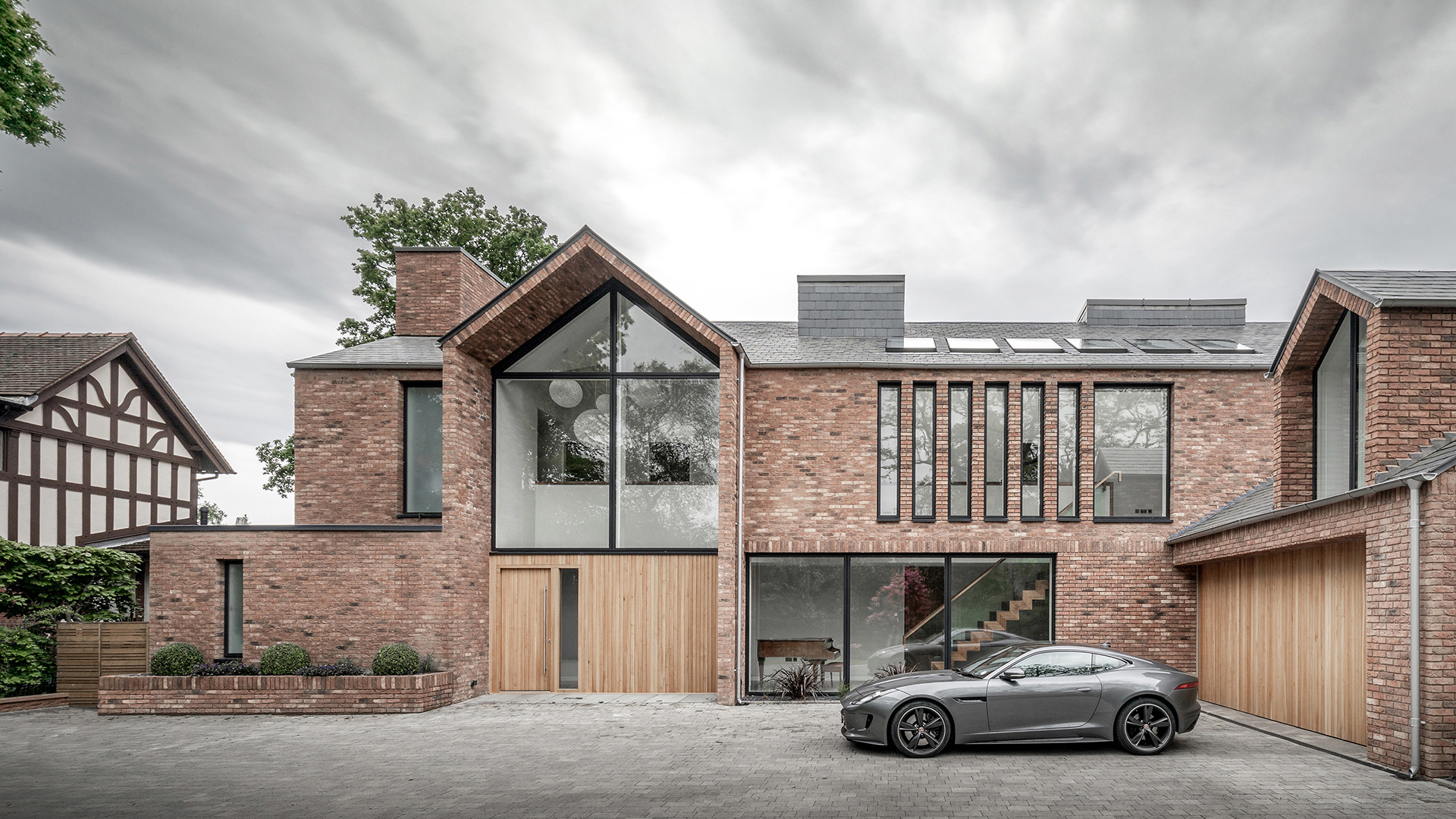 Harrop Road is at first glance a modest home, with elegant brick detailing - sympathetic to the surrounding conservation area. In fact, this house is full of surprises. Stepping inside you will discover a four-story, 8000 sq. ft, and truly contemporary home. Our clients secured an impressive plot in Hale, with beautiful mature gardens. They wanted to build their dream family home that wouldn’t stand stark and disruptive against the more traditional homes in the neighbourhood, but equally wanted a contemporary aesthetic. Using brick, and making use of pitched roofs at the front, softened the façade. While the projections in the roof nod to the nearby chimneys while actually acting as huge rooflights - bathing the interior with natural light. The roof of the dressing-room, for example, is made entirely of glass, offering privacy without compromising on light. The rear of the building is often neglected and seen as less important by some architects – but it is actual the part of the exterior of your home you’ll sit and look at the most. At Harrop road, the rear is the truly sleek and contemporary home, with covered external space for outdoor entertaining.