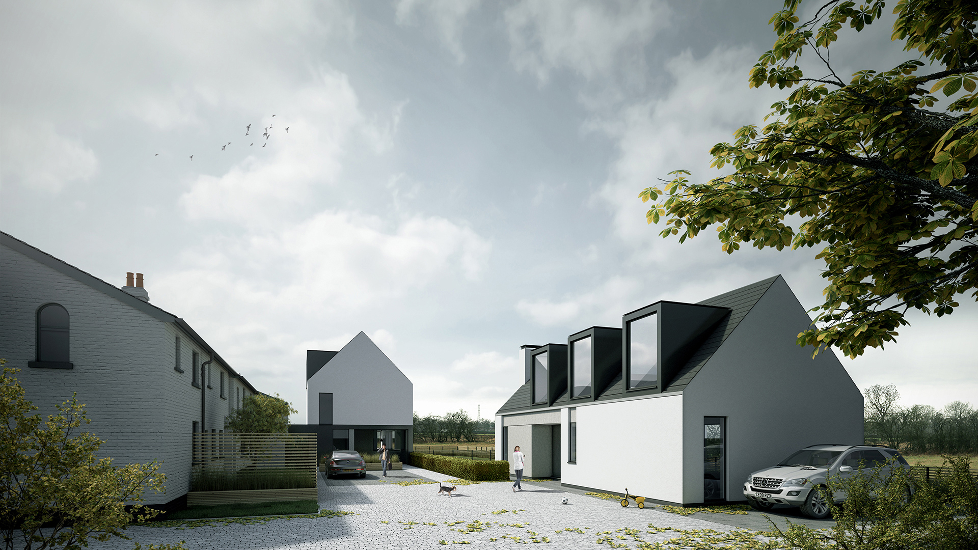 A good architect adds value, not only by curating beautifully designed spaces, but by maximising the context in which your home sits. This two-house development was next door to an unsightly leisure facility, and the proximity of the two new homes required real creativity to ensure privacy, while maximising the views over the countryside. The owners of this site wanted to replace an office block with two new detached houses, within Green Belt land, next to their own home – a traditional farmhouse. The grey slate rooves, dark window-frames and white render are a contemporary reflection of the owners traditional Cheshire farmhouse. With views for miles on one side, and an unsightly leisure shed on the other, this design focused on both screening where needed and maximising views. Inside, these contemporary homes are designed for modern family life, using energy efficient materials and open plan living areas.