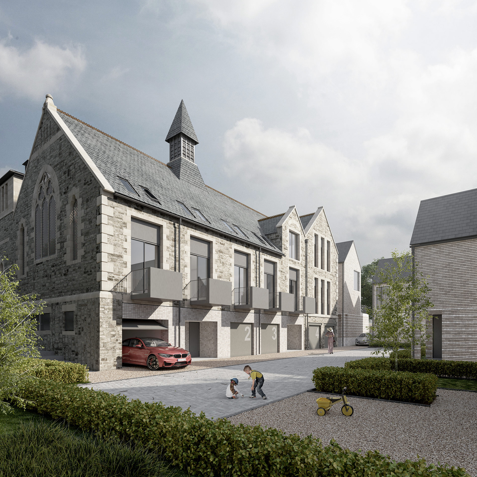 This development feels contemporary without turning its back on the past. The brief was to create a cohesive community of buildings – each one a bespoke family home. Each of the nine homes in this small development has a personalised layout, to ensure each has privacy and most importantly, spectacular views over the private fishing lake. The five townhouses in the School House, incorporate original features within bright, light and contemporary spaces. Designed to make the most of the lake-side views, the lower ground floor is an integral carparking space, while the main living spaces are located on the first floor, with south-facing balconies – perfect for a gin and tonic in the sunshine while soaking in the view! The bedrooms on the third floor, sit in the architectural roof-space with original beams. The four, new-build, detached properties offer a contemporary rendering of the schoolhouse - textured brick echoes the rough-cut stone exterior of the original building, with smooth brick framing the windows and the angle of the pitched gives a nod to the rear gables and clock house.
