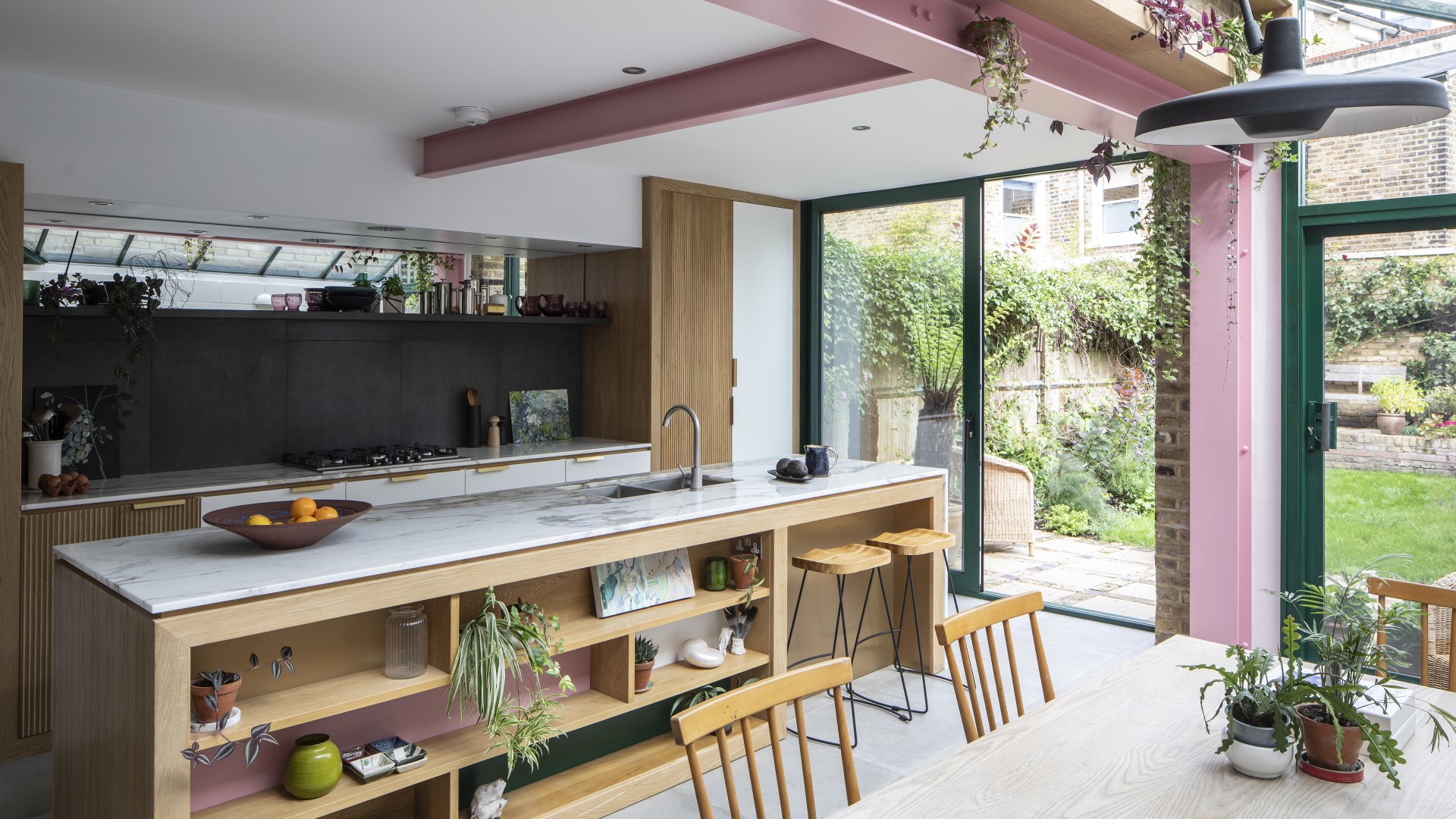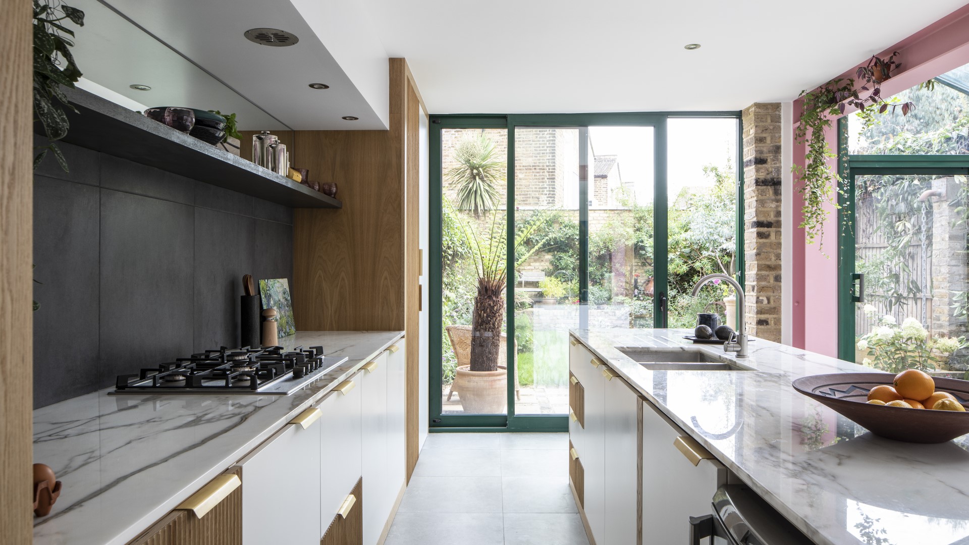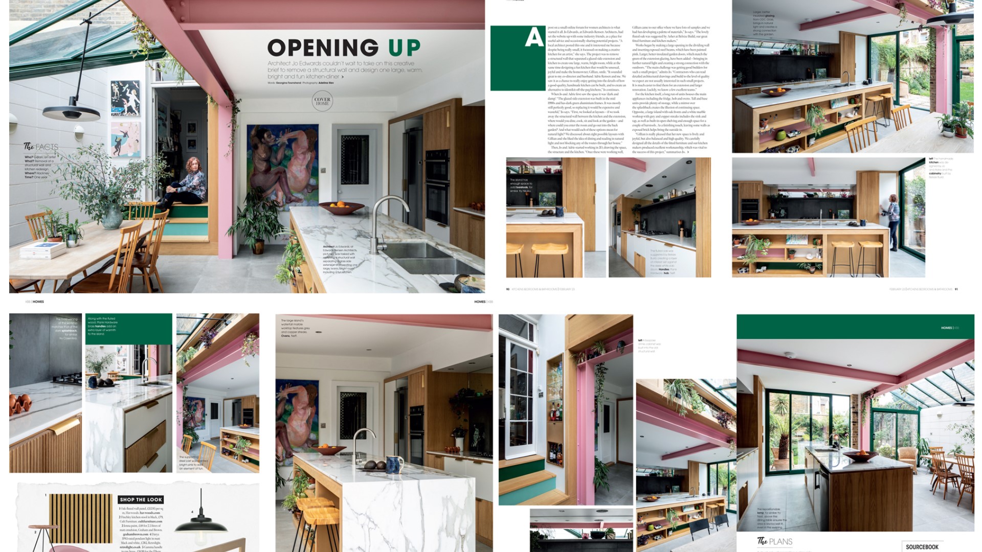 Currently on the front cover and in an 8 page feature in Kitchens, Bedrooms and Bathrooms magazine (see extract in images), this was a fun, smaller project. Our artist client asked us to make her a colourful modern kitchen – something quirky and original which would make her smile. She said, “I like interesting finishes that are new to me. I am not looking for everything matching. I prefer to have an eclectic mix of styles and finishes.” That sounded great to us. We saw it as a chance to really enjoy getting into the details of how a good quality, handmade kitchen can be built, and a chance to create an alternative to identikit off-the-peg kitchens.