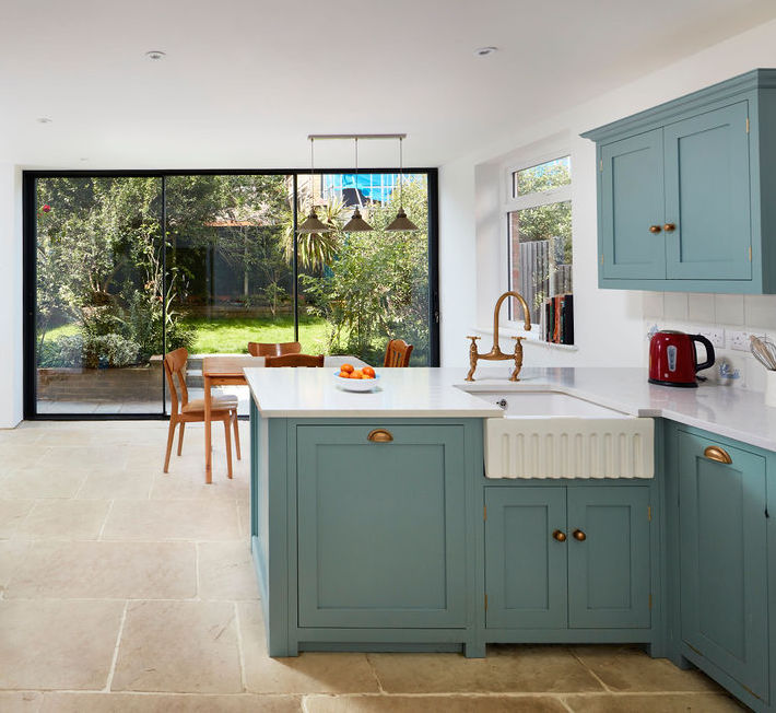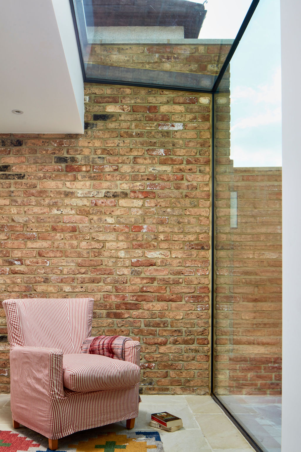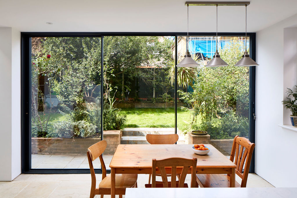 ellisclare carried out a refurbishment and extension to this Edwardian house. The frameless wrap around glazing and slim framed sliding doors help to create a light and airy space and blur the boundary between the house and the Garden.