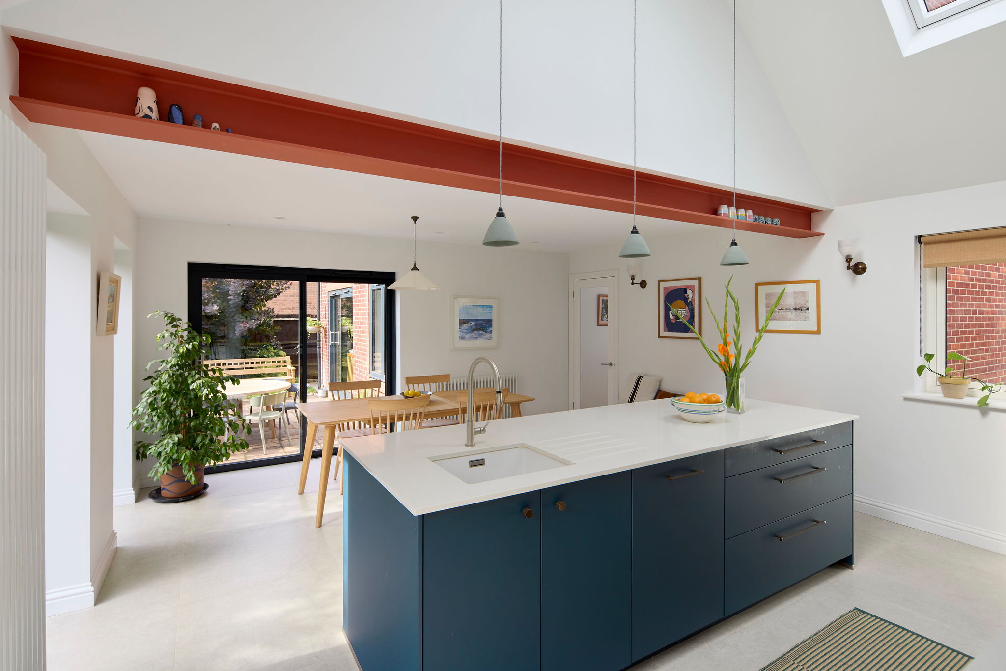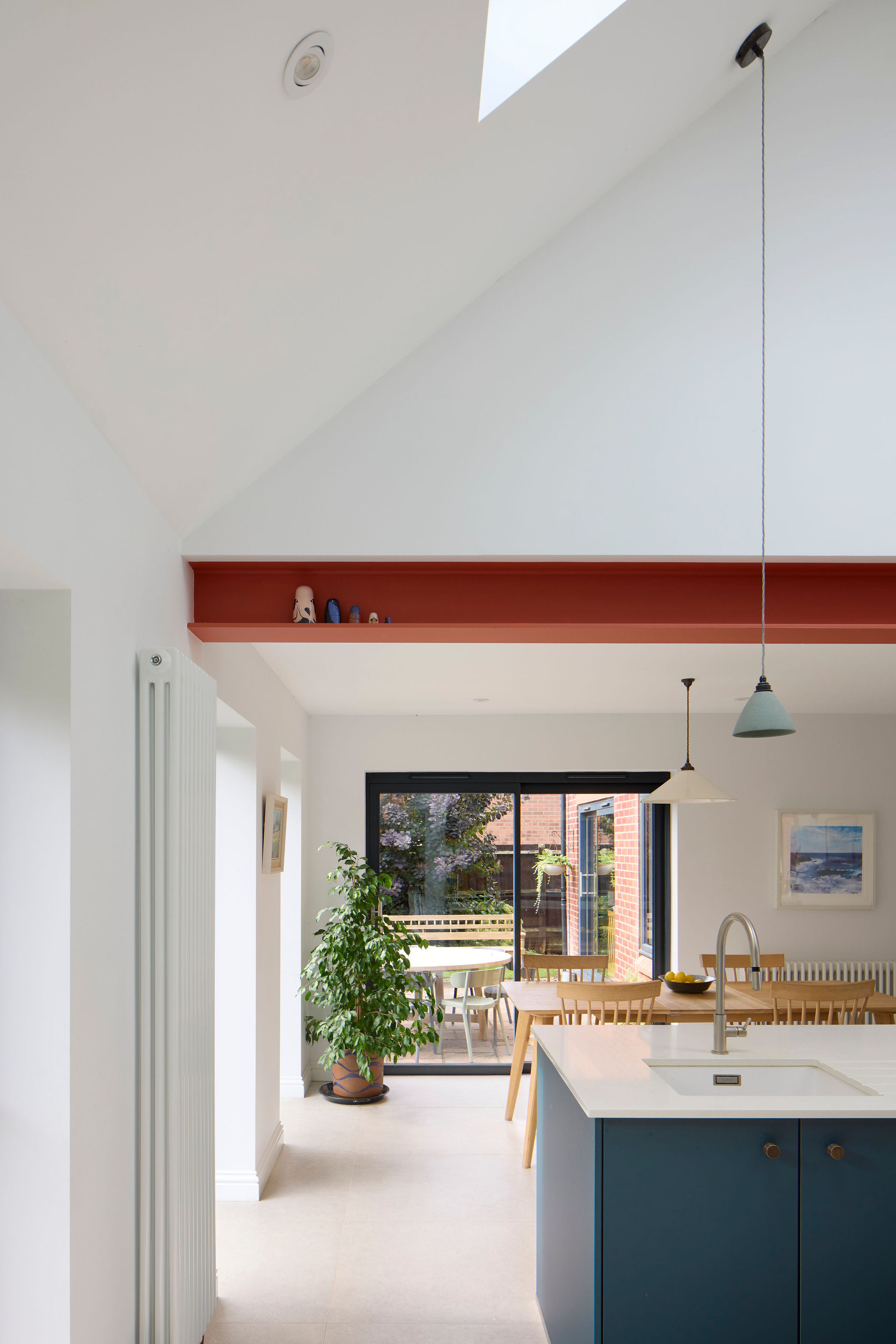 ellisclare carried out internal alterations to his family home in Thame. Opening up the Kitchen to the eaves and the addition of new rooflights creates a light and airy space; while the removal of a structural wall creates a wonderful family friendly Kitchen Diner. New glazing to the rear and side elevations opens up views and access to the garden. The works included structural alterations, alterations to glazing, fitout, electrical works, plastering and a new kitchen, utility and WC.