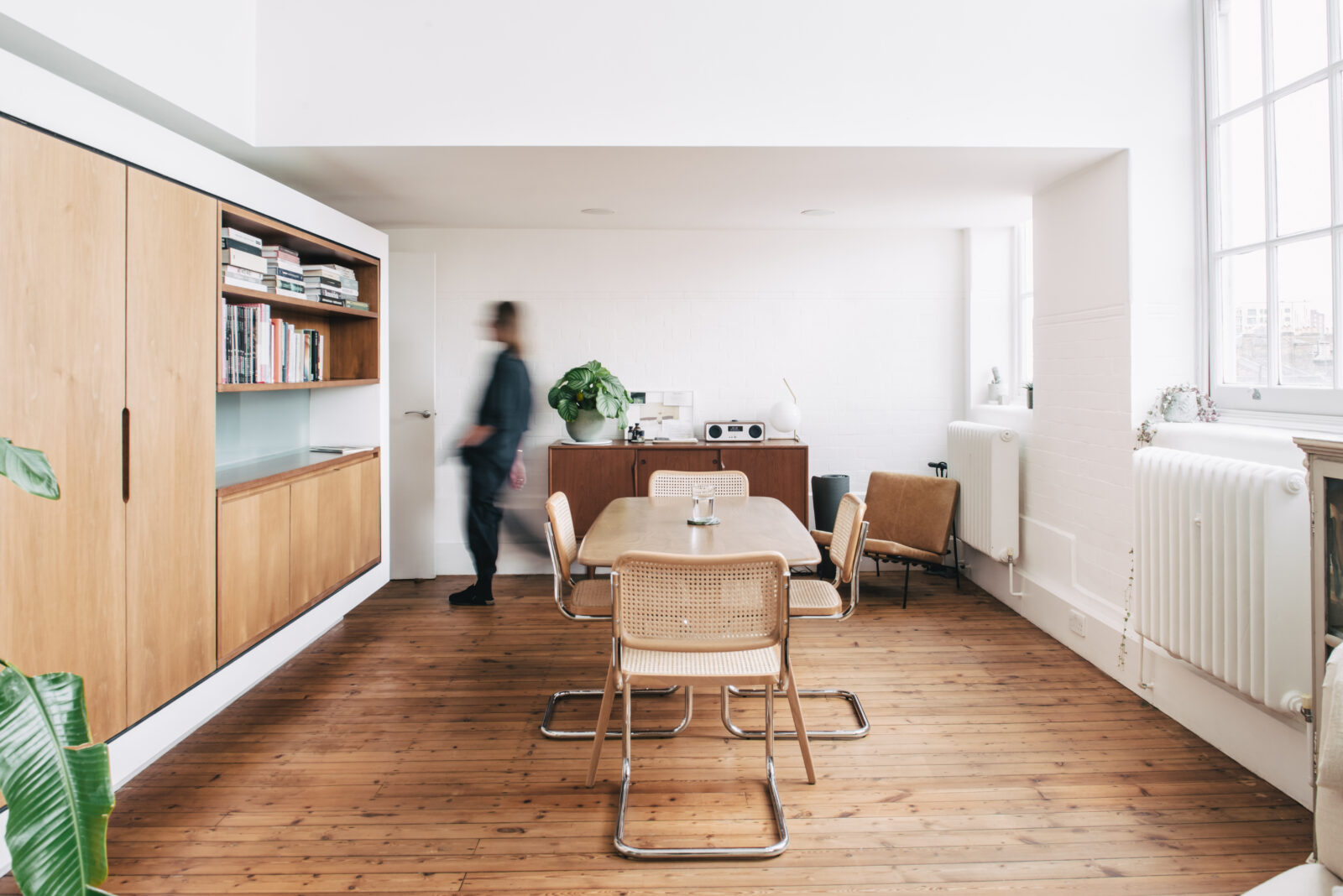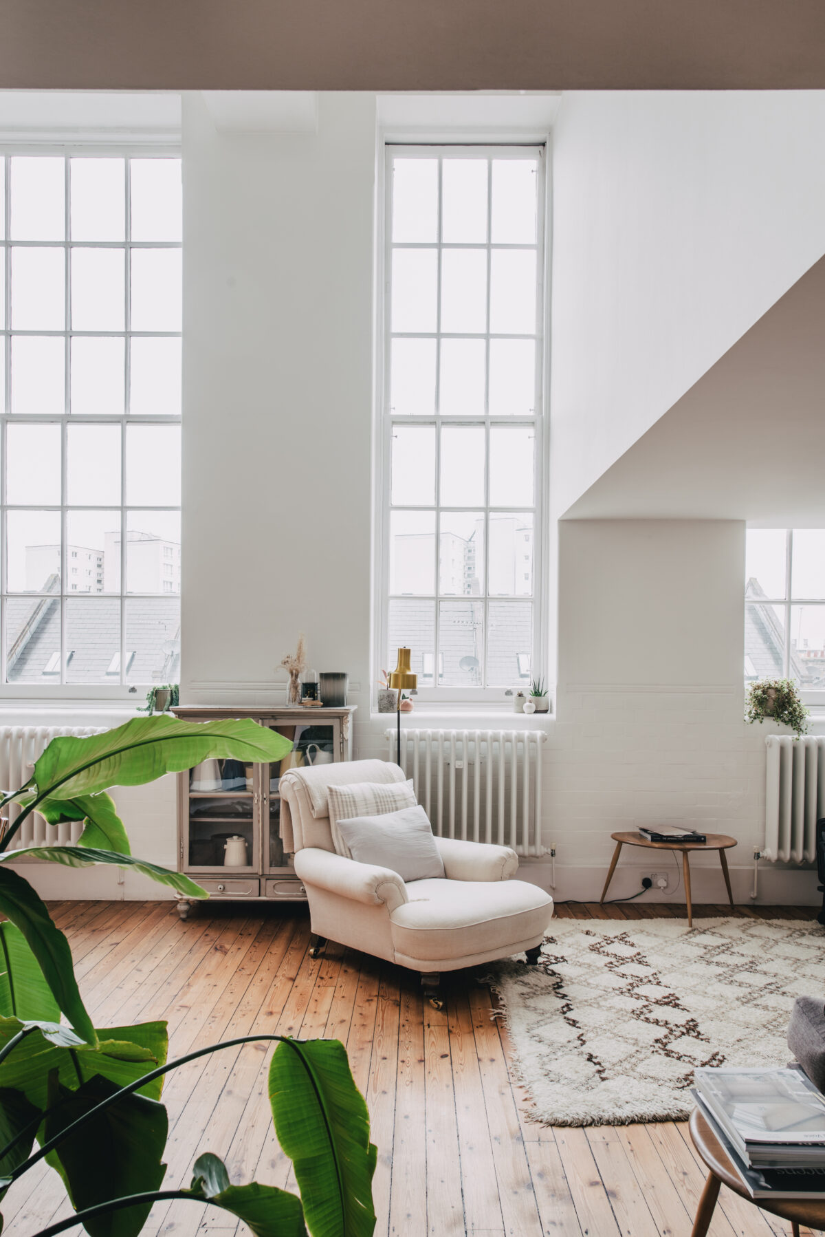 This project involved the conversion of part of a grand Victorian school building in Hackney into a loft apartment for a creative client. The design sympathetically introduced a slimline engineered mezzanine floor within the existing high-ceilinged space, preserving dramatic double-height areas that showcase the tall, vertical Victorian windows. These windows flood the interior with natural light, to create an airy and inspirational environment. Functional areas, such as the kitchen and bathroom, were discreetly tucked under the mezzanine, optimising space without compromising the building's historic character. The result is a unique living space that blends Victorian grandeur with modern functionality.