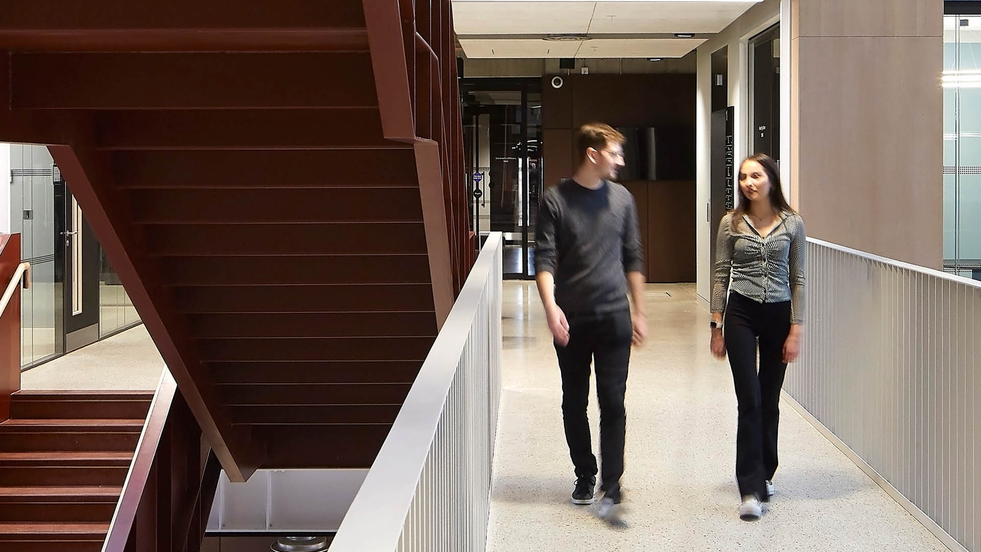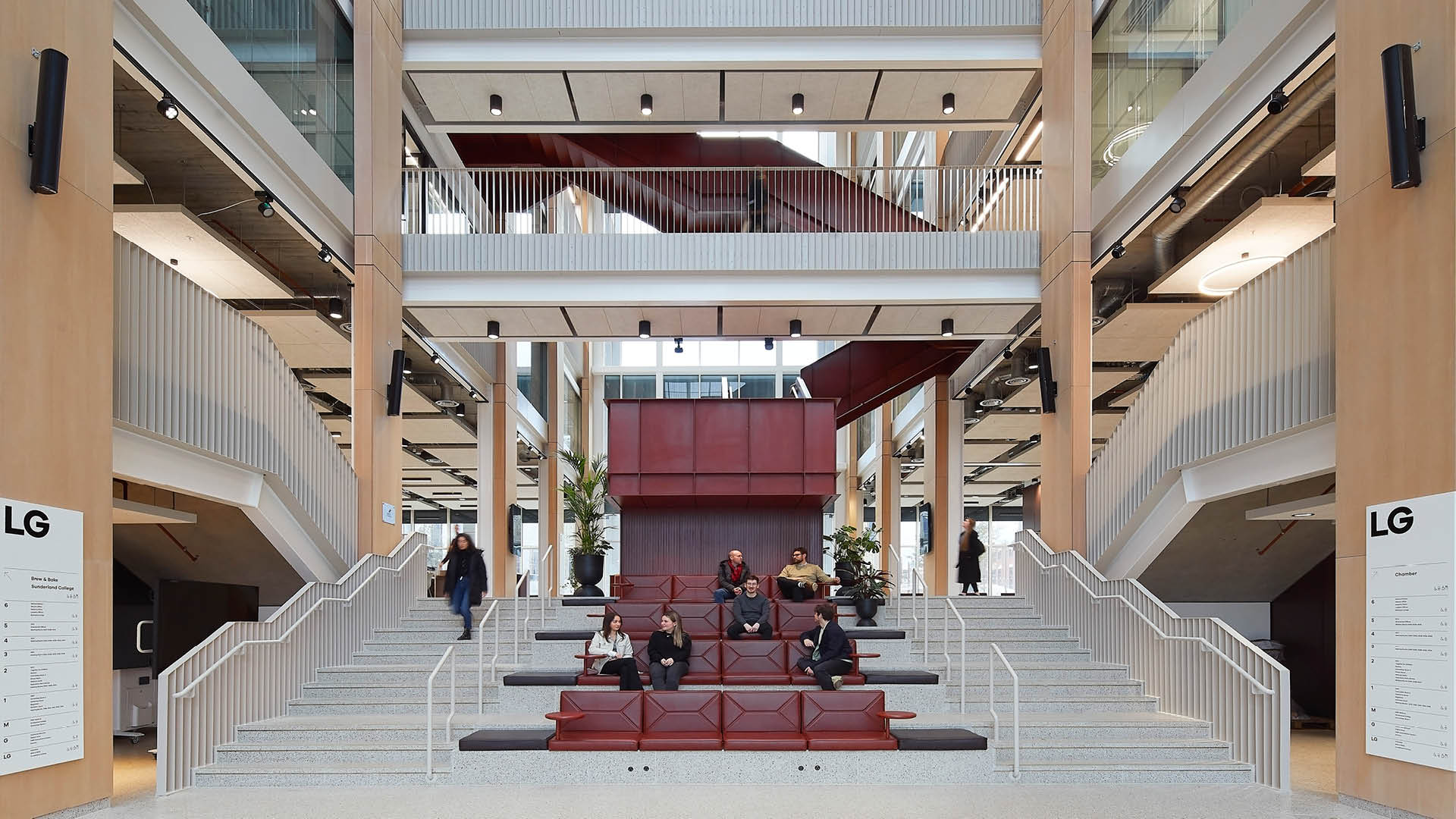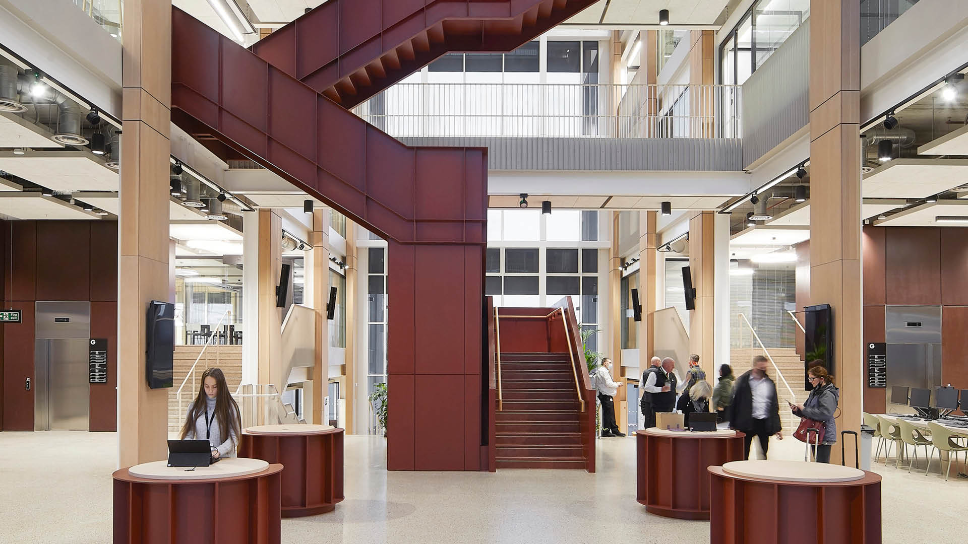 Sunderland City Council commissioned City Hall to replace the old civic centre, which had been home to the council since 1970. In response, we created a democratic and collaborative space for locals to engage with their community. City Hall celebrates the city’s industrial heritage as well as its vision for a sustainable future. It has an efficient, compact form and its internal finishes are minimal but robust. There are no turnstiles or barriers. Instead, visitors are greeted by an open and airy atrium which houses a distinctive steel staircase – the centrepiece of the building.