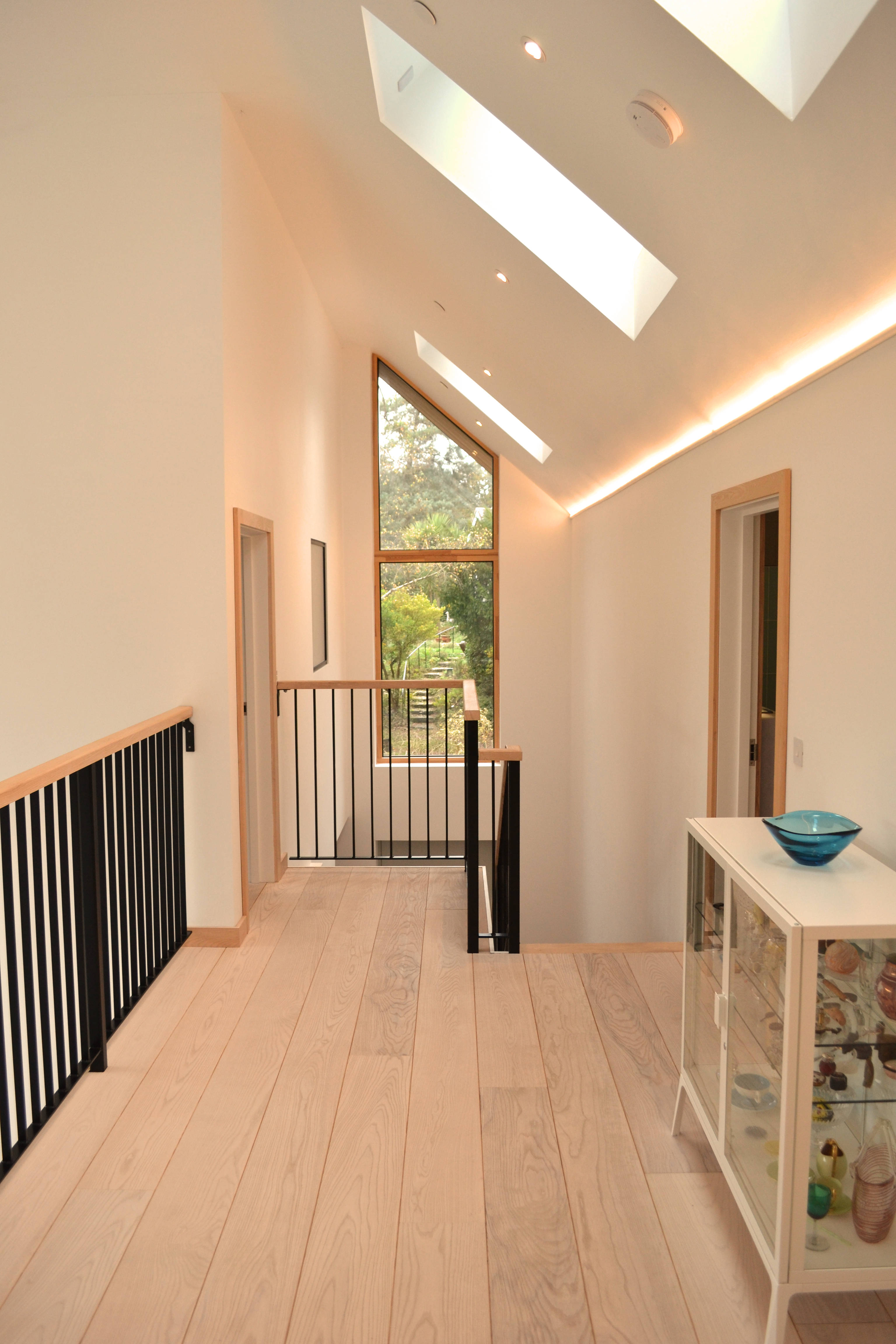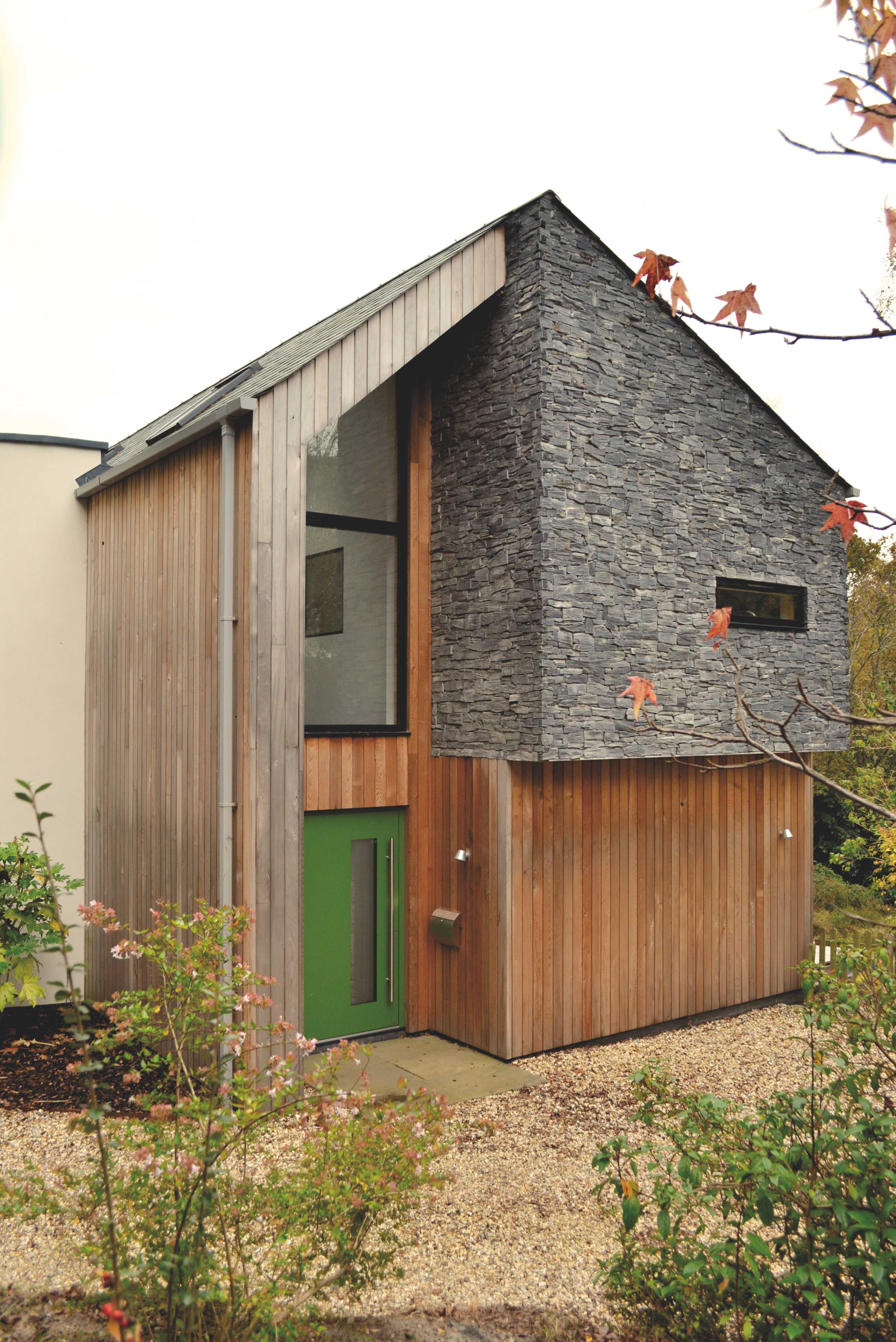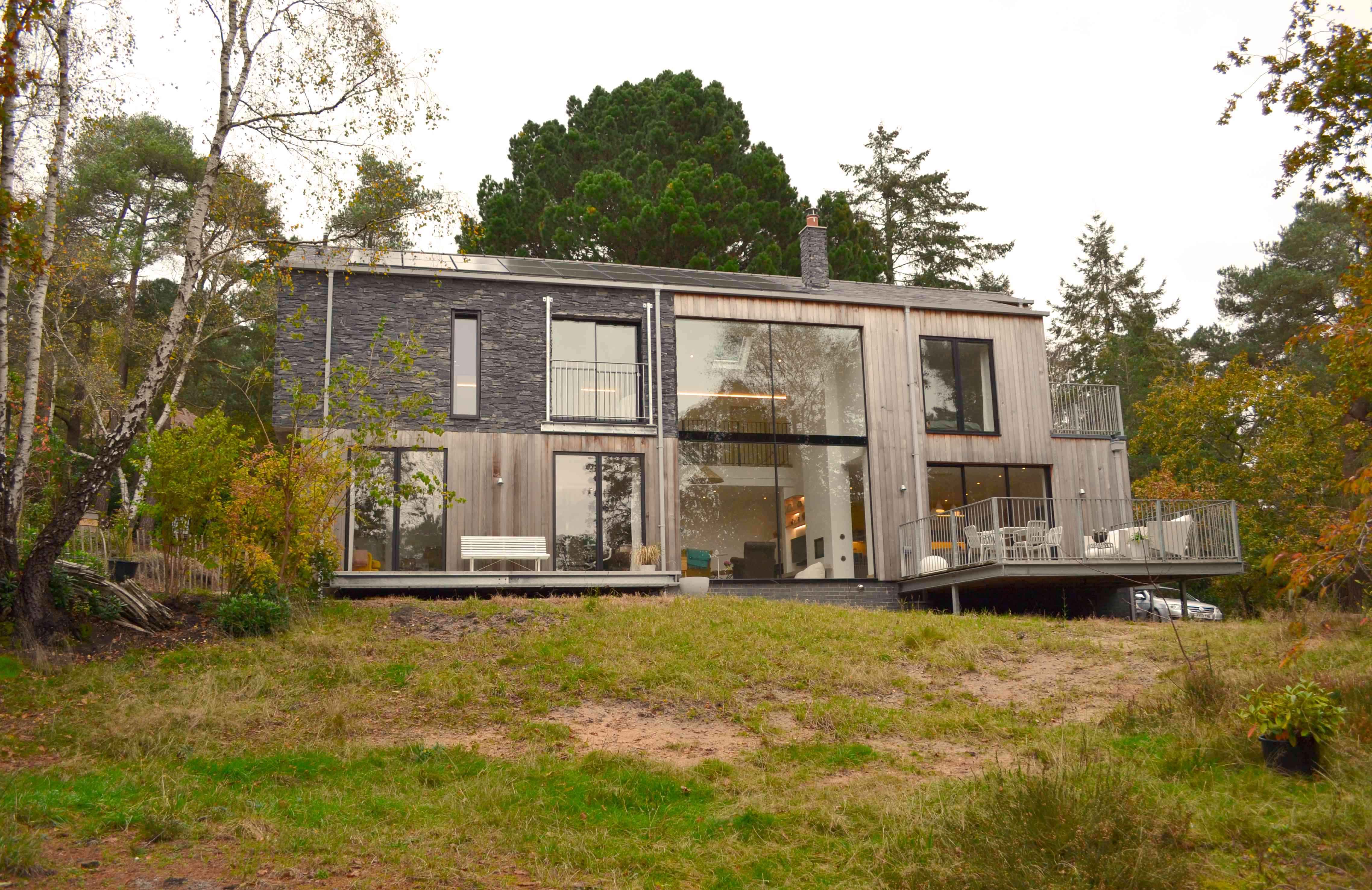 The dwelling has been designed to work with the topography of the site, but rather than stepping the floor levels down the embankment, the ground floor level has been run through level to create a cantilever over the embankment and create a ‘floating’ projection from the dining room, which will create an uninterrupted vista over the garden/ tree line to the south via the large, double height glazing. The use of natural materials was a conscious decision as the clients were keen to use as many natural products and where possible to minimise the environmental impact.