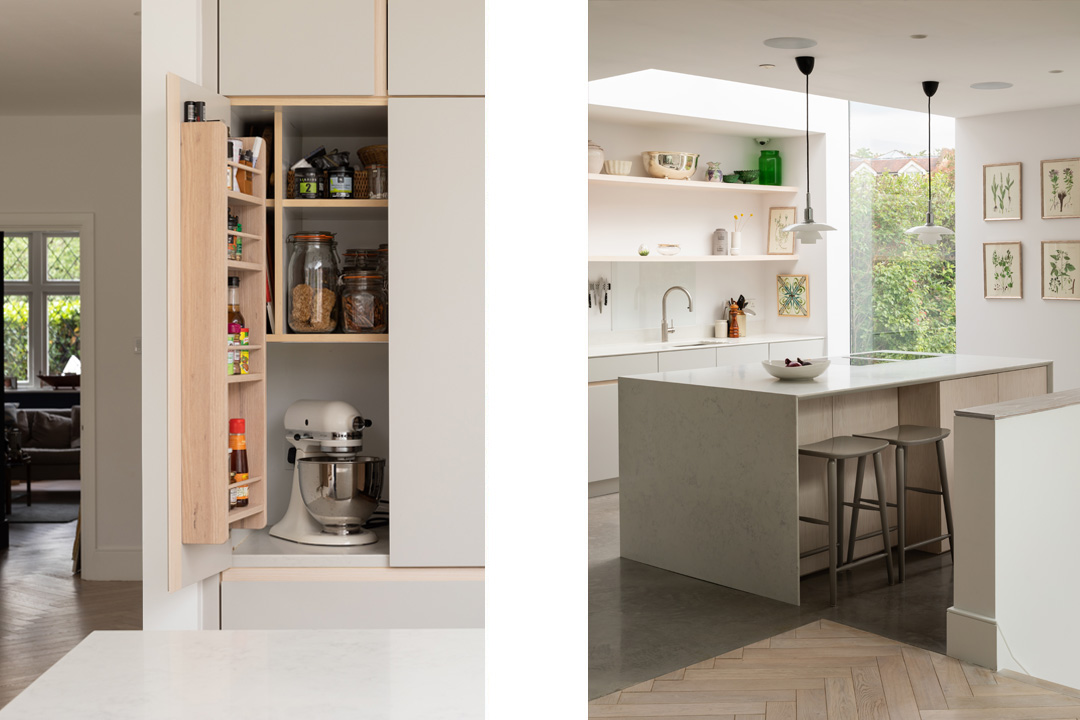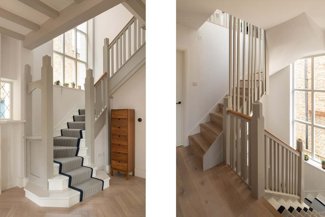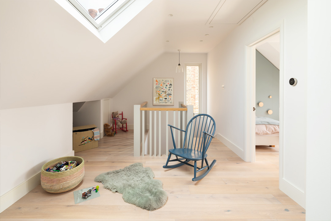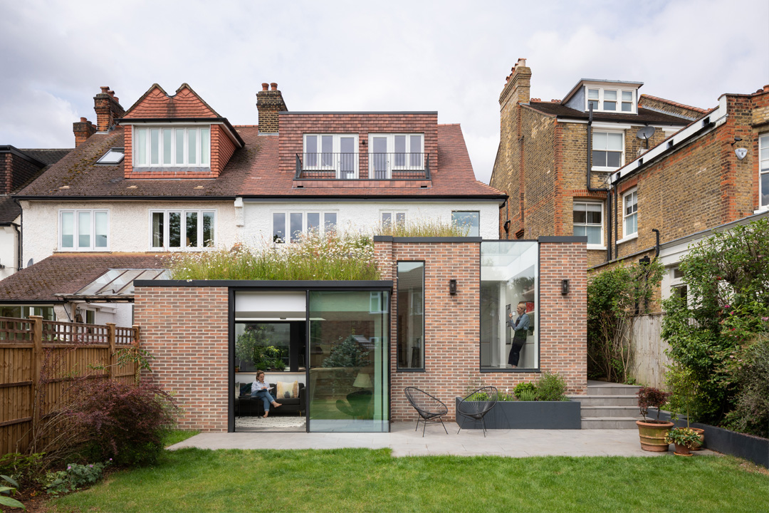 The Courtyard House is situated within a prominent conservation area in South West London close to the River Thames. The original house was architect designed at the beginning of the 20th Century. Fraher & Findlay revisited every aspect of the existing building to propose the most efficient use of space whilst creating a strong sense of place within each of the floors. The client wished to fully refurbish the building, adding a rear ground floor and loft extension. Before the completion of Hammersmith bridge which led to major railway development, much of Barnes was dominated by market gardening. Much of the waterfront of the Thames at Barnes around 1820 was covered by market gardens. The orchards, gardens and nurseries were famous for the exotic produce. The design proposal introduces a 'garden/ courtyards and green space into the floor plan. This courtyard brings natural light deeper into the plan creating external environments within the living spaces. Natural ventilation to the rear ground floor room of the original building is maximised whilst providing visual interest and maximizing external amenity space and the connection between the garden and the building. Wildflower roofs to the extension elevate the garden space to the first floor bedrooms, enhancing the gardens aspect, whilst providing a bio-diverse habitat. Supporting information The interior material use was influenced by the owner’s Danish family background with a strong focus on use of natural timber finishes as well as clean scandinavian lines. Brass detailing throughout gives a reference to the original brass features of the arts and crafts house. To avoid a full width rear extension the design breaks up the rear massing of the building, stepping the extension down into the garden to soft then level change that was problematic with the existing house and its relationship with the garden. A garden facing snug room sits nestled into the lower garden level, whilst maintaining a visual and physical relationship with the living spaces to the main house. High level windows capture views up towards the green roof as well as towards the garden, with a feature wrap around rooflight to the kitchen, enhancing the feeling of space.