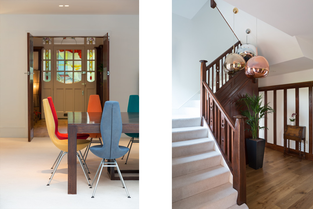 The owners of this large detached Edwardian House, wanted us to work on designs for the building that would open up the internal rooms and embrace the large mature garden. An existing garage is to be converted into much needed store and utility room that sits nestled into the banks of the higher level garden. The Clients are creatives with a passion for textiles and art work. The proposal looks to express the internal patterns and lining of the building, as a tailor would do by exposing a patterned lining on a cuff of a shirt. Brickwork from the the existing building is brought down to the floor plane and turned up to create the plinth for the snug extension. A large weaving room sits at the top of the building with archive storage walls holding materials, cotton, wools and dress making equipment. The building fabric is to be fully upgrading, including solar tiles, MVHR unit, Solar Hot Array, Air Source Heat pump, replacement triple glazed windows, external insulation and green roofs.