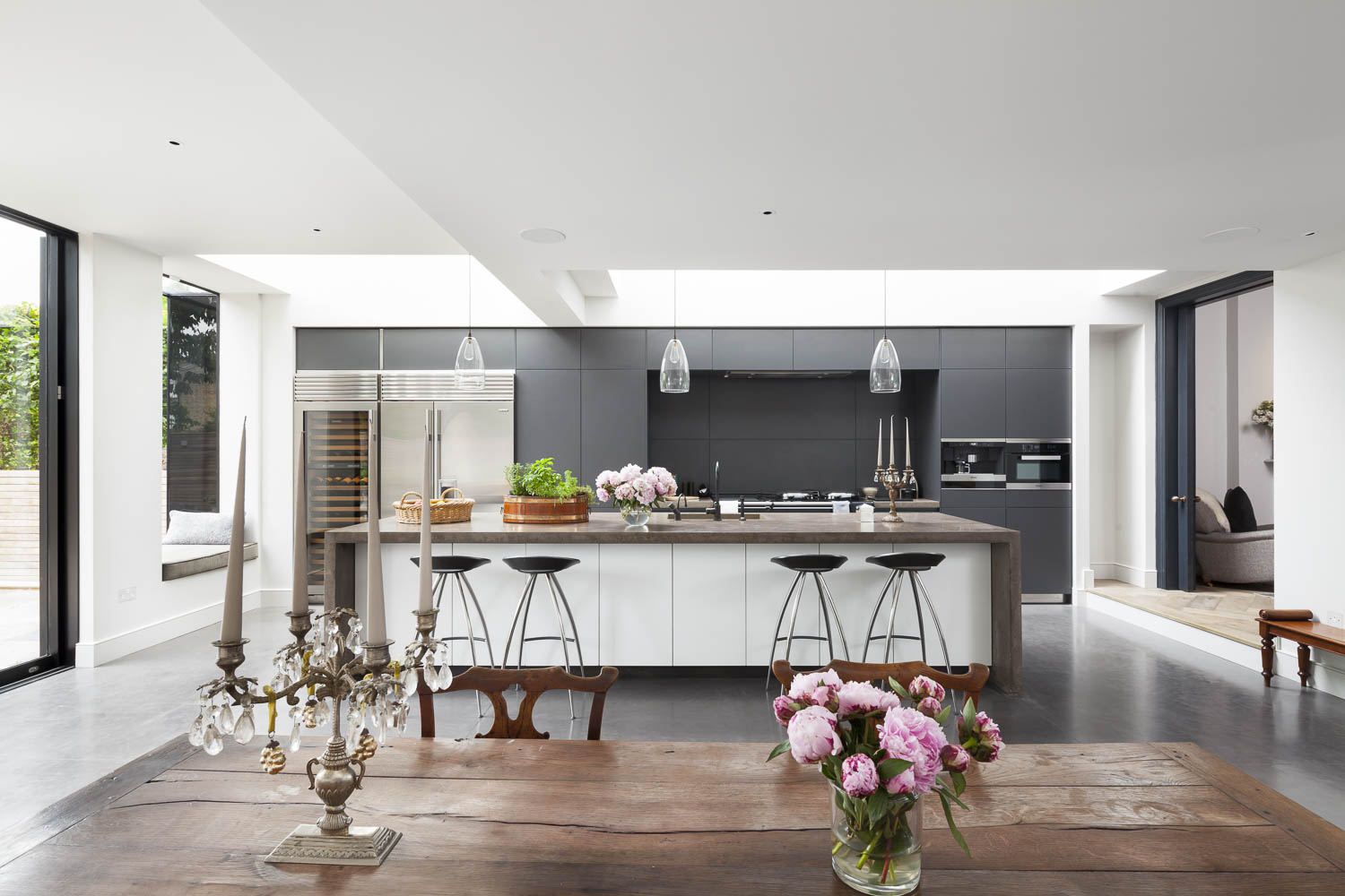 FT Architects lowered and enlarged the existing cellar, to form a new basement with front and rear lightwells, and constructed new rear and side extensions at ground floor level. We also remodelled the upper floors, for a private client, who wanted to create their dream family home with a ‘Soho House’ vibe.