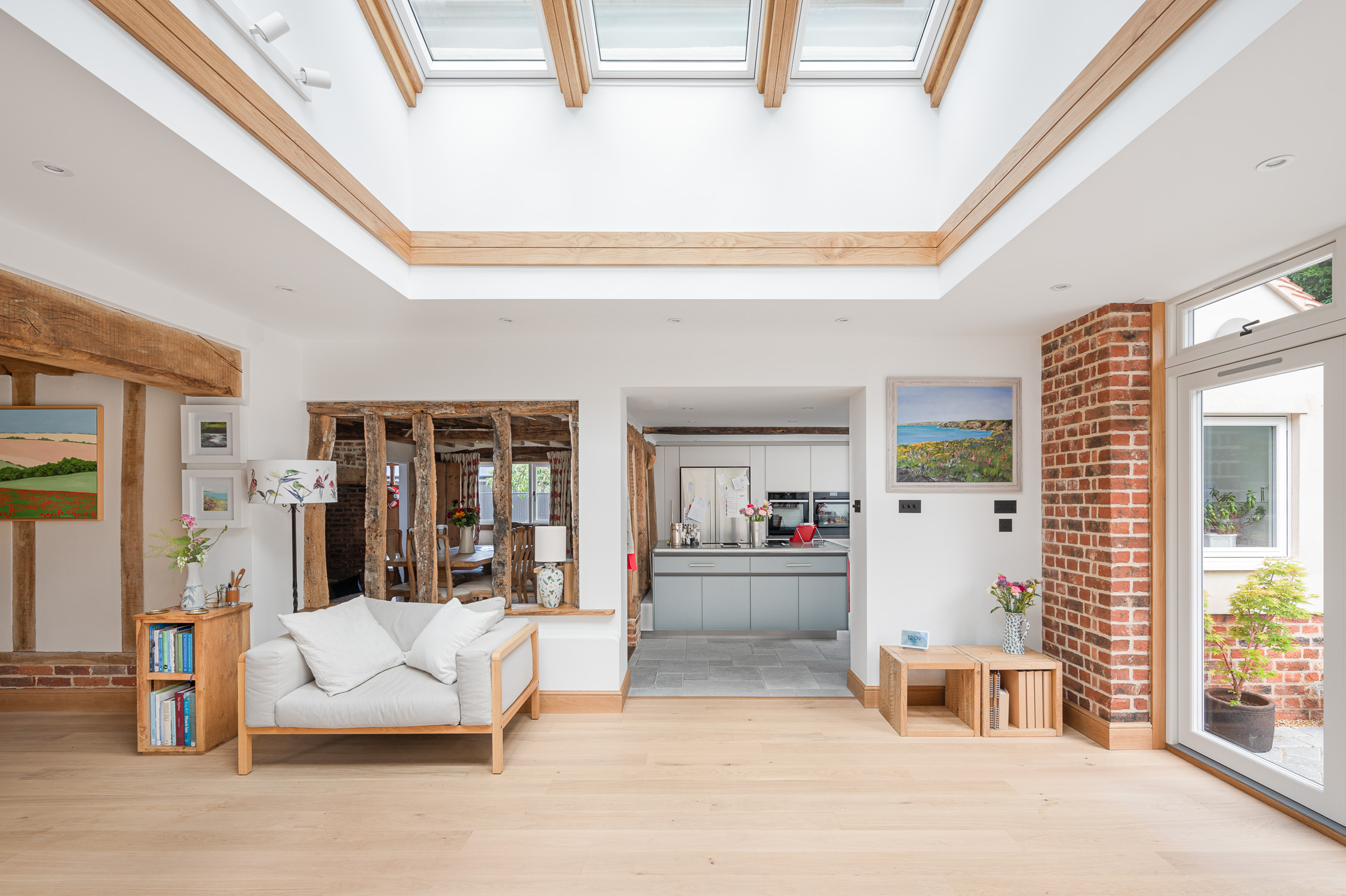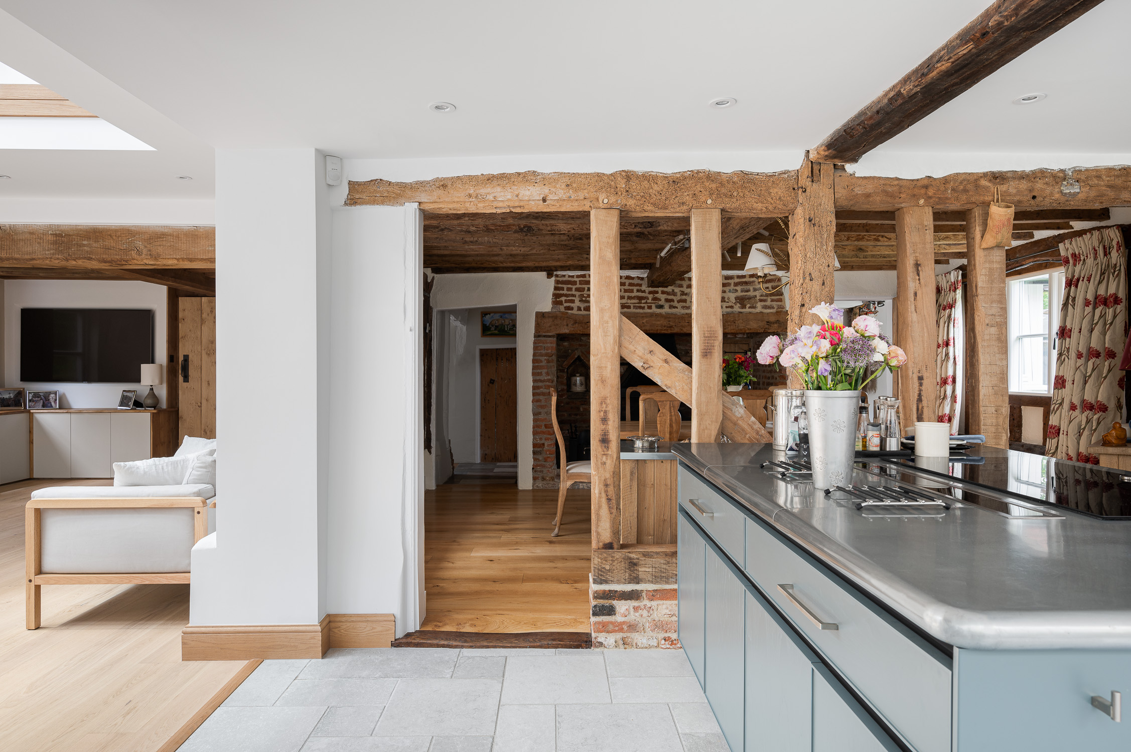 The practice provided a full architects service from early discussions with the clients through all design stages, construction phase admin, to agreement of the final account & conclusion of the building contract. The project involved the renovation and underpining of an original oak frame, altering and extending the house to provide much improved accommodation, a sympathetic but contemporary kitchen, a new orangery and landscaping. Photos copyright Francesco Russo.
