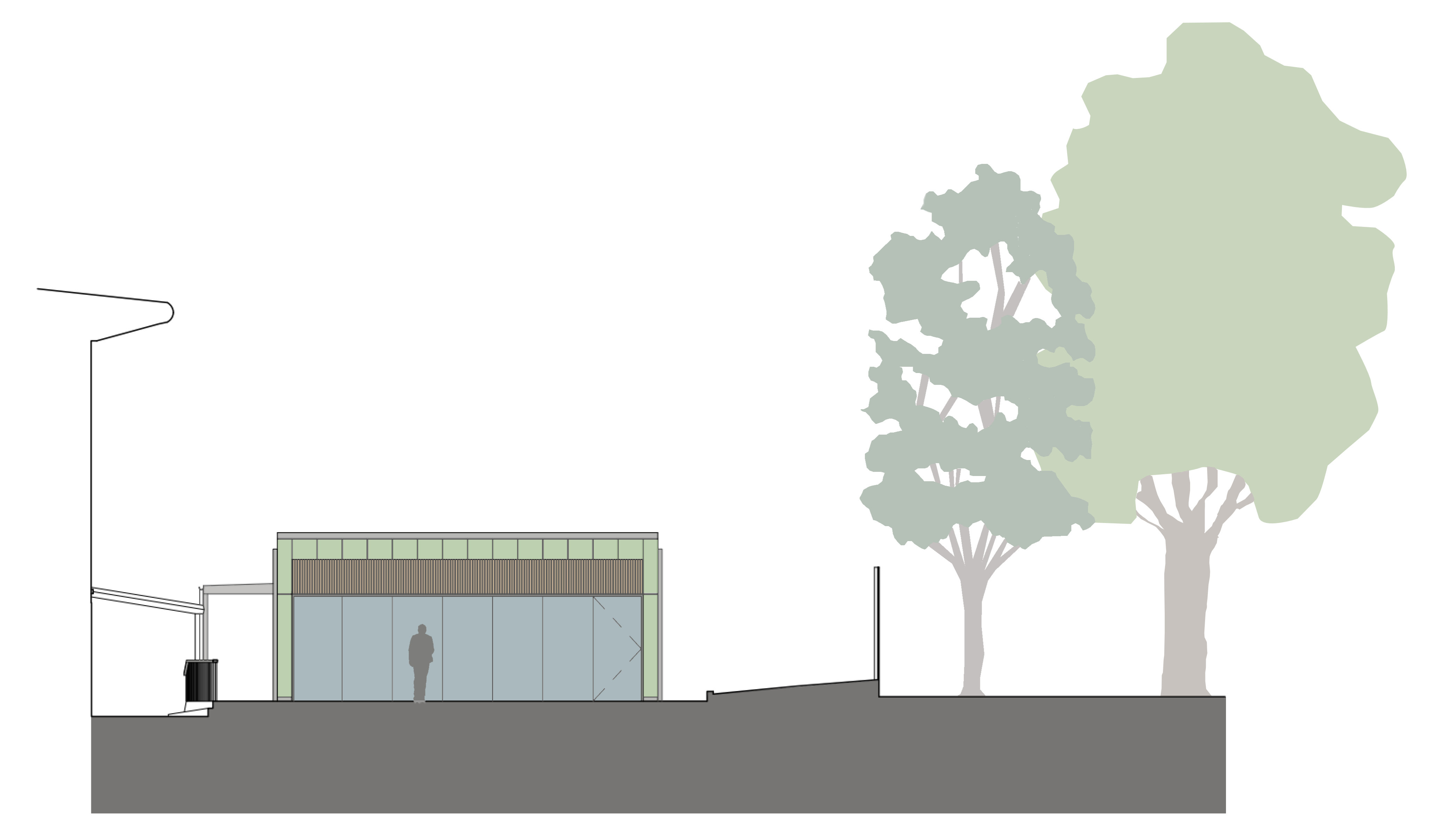 The Problem: Garmin wanted a new facility for 60 staff to dine and relax and exercise. The key issue in delivering this is the feasibility of a gaining planning permission and complying with building regulations. The challenges included avoiding flooding by rising floor levels, including a watsewater treatment plant requested by the client and complying with fire regulations. The client’s brief: The brieef requested new staff facilities to support the employees on site including: A canteen area with kitchenette and seating spaces for approximately 60 people. Changing rooms and toilets. A dedicated locker room. A fitness area. A key requirement was to ensure a clear separation between the fitness area and the rest of the building, while minimising the impact on access and ongoing use of the existing site. Architect’s response to the brief: We designed a single storey building located at the end of the Southern car park. The building can be accessed via a covered entrance. The location minimises the impact on existing vegetation and avoids increasing the impermeable surfaces, as the building is positioned on a paved area. The building is completely separated from the existing warehouse, to avoid impacting the existing structure and the fire escape routes. The design maximises natural daylight within the building while the surrounding trees minimise the risk of overheating. We have investigated the use of a fiber cement cladding on the outside. The project was developed in collaboration with a multidisciplinary team including civil and M&E engineers, ecologists, transport consultant, arboricoltural specialist and sustainability consultant to prepare documents and information for the planning submission. Architectural Services Provided: Architectural Design Planning Permission