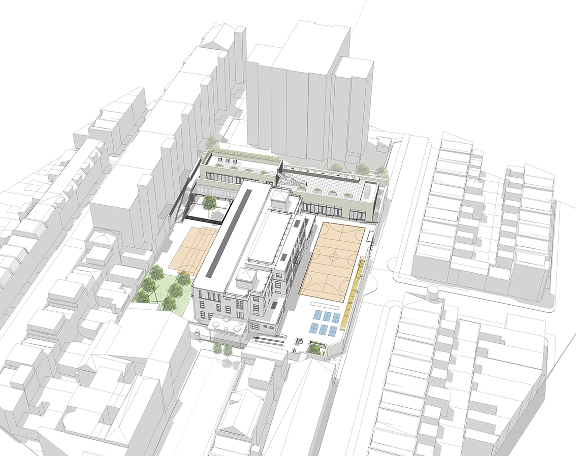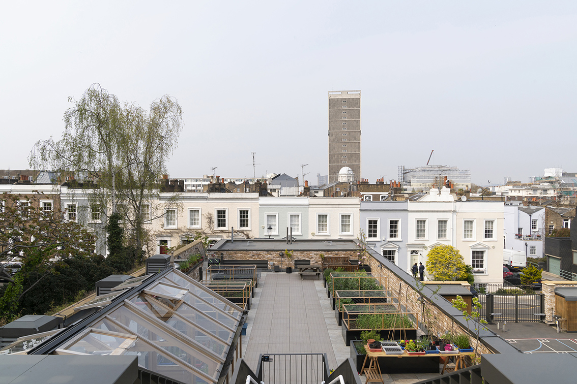 Fox is a high achieving State Primary School in Notting Hill Gate, on an very tight site. Our commission was to develop proposals that would increase the pupil capacity (1.5FE to 2 FE) and make the most efficient use of external space. The solution was to excavate an historic earth embankment, that had formed one side of the containment for a Victorian reservoir, and to set a new teaching block into the liberated space. Use of the roof of the new block for outdoor activities increases the external school space considerably. A second component of the work is to fully refurbish and remodel the existing 1930’s school. CLIENT: RB Kensington and Chelsea followed by novation to Galliford Try COMPLETED: April 2017 CONTRACT VALUE: £6.5 million PROCUREMENT: IESE Contractor’s D&B Framework Fox Primary School