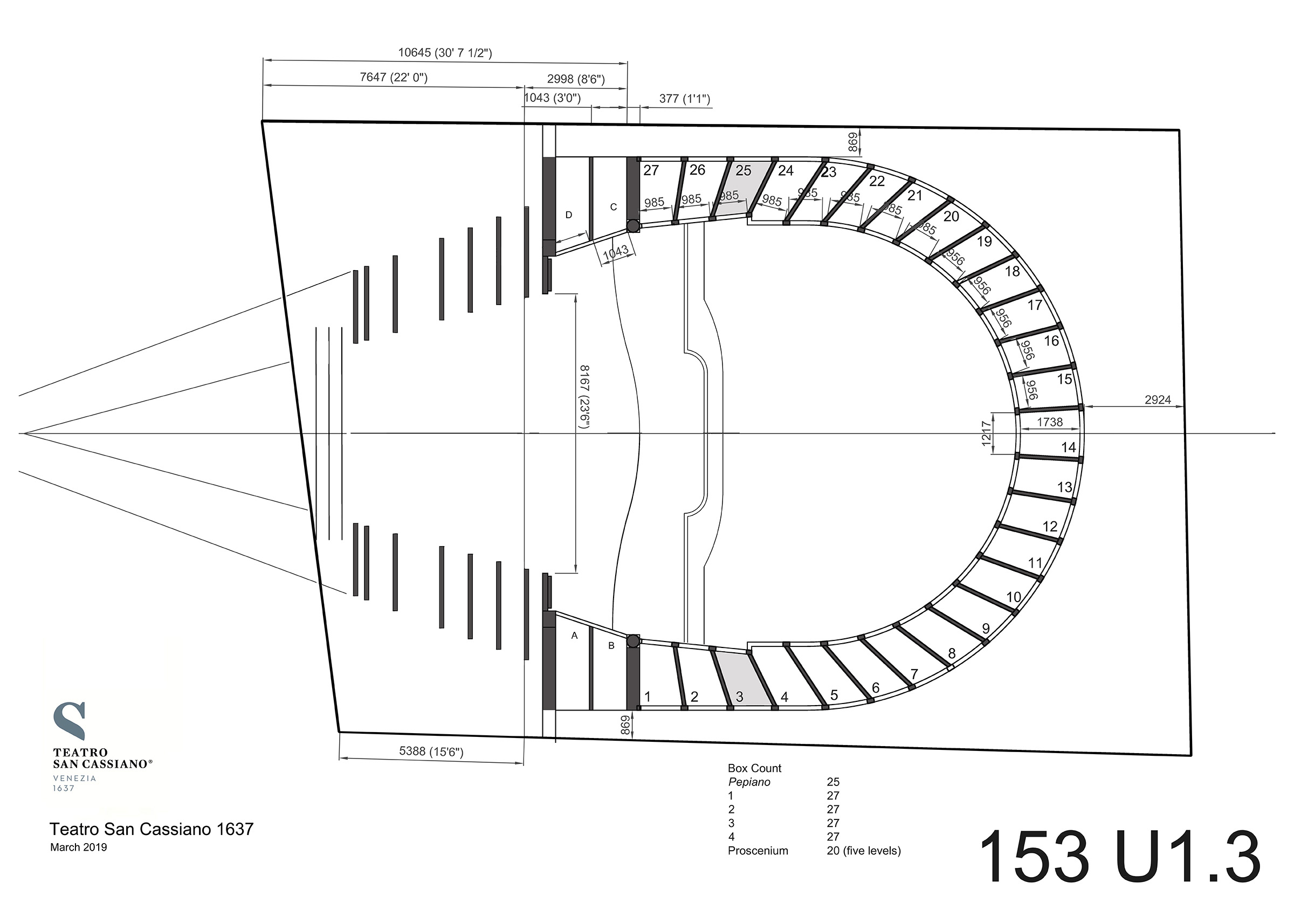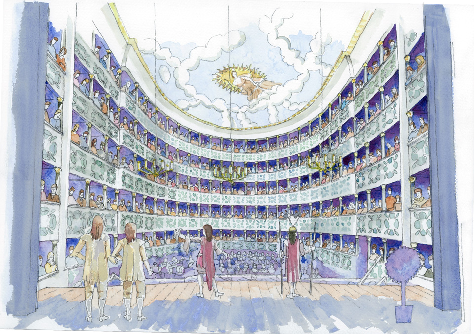 An imaginative and compelling project to reconstruct Venice’s Teatro San Cassiano as it had been in 1637. Famous for the very first public performance of opera when Francesco Manelli’s L’Andromeda (libretto by Benedetto Ferrari) was presented to a paying public, it started an explosion in popularity of this new artform, first in Venice then quickly around Italy and Europe. Led by Dr Paul Atkin, the project aims to again present Baroque opera to a paying public. A reconstruction of the 1637 opera house will be built as faithfully as regulations will allow, complete with stage machinery, moving sets and special effects. In its initial stages, the reconstruction is based on backward inferences from: • a carefully measured survey made in, or prior to, 1763 of Teatro San Cassiano by the architect Francesco Bognolo, which captured features from the 1695 layout, • a full understanding of the original site’s constraints and opportunities, • contemporary eye-witness accounts, • aristocratic antecedents, • other opera houses that followed relatively soon after. The most useful surviving reference is the plan of the Teatro Santi Giovanni e Paolo drawn between 1691-3, but possibly depicting the house as it had been before 1683, and found in a collection at the Soane museum in the early twentieth century. A very small house by modern standards, the Teatro San Cassiano will provide an intimate and powerful visual and acoustic experience. Teatro San Cassiano