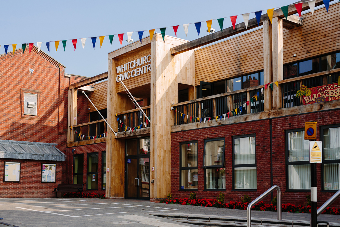 Alterations to the Civic Centre and Library facades and forecourt, including removal of concrete panels and glazing, demolition of two lean-to stores, with new resurfacing, planting, lighting, altered car parking arrangements, enclosure of open alleyway with doors, relocation of main entrance and recladding of façade; internal alteration to foyer including relocation of kitchen and female wc, new mezzanine floor in market/sports hall.