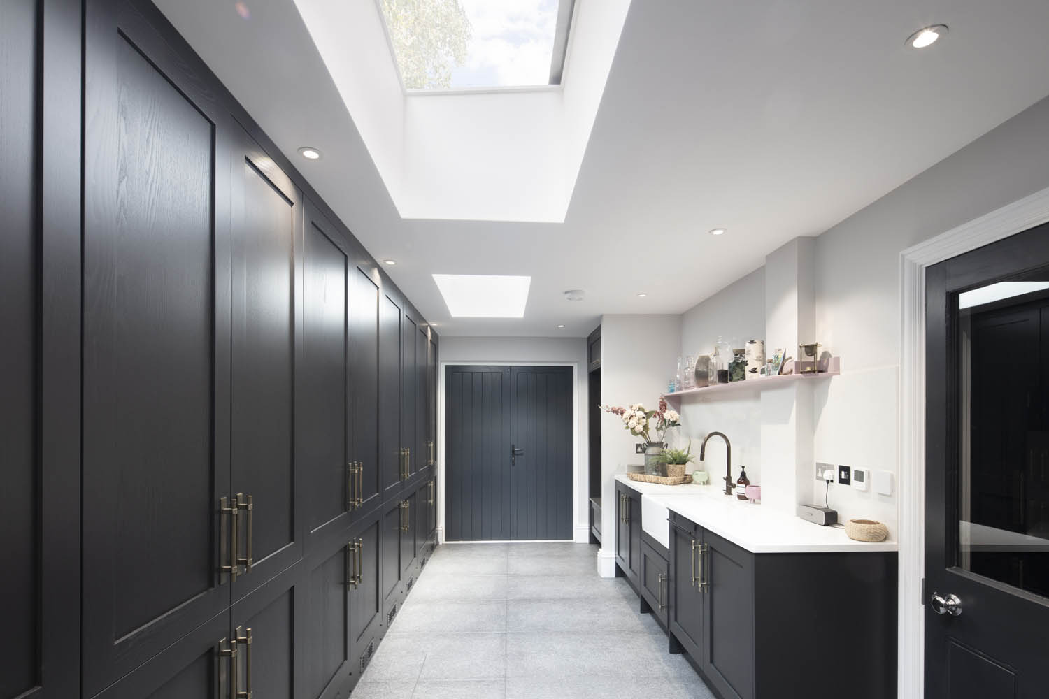Work had already begun on this 6-bed property when Gruhe was initially approached for the design of a new porch. This led to a much larger commission for a two-storey extension, building within the existing internal courtyard to the side of the property at the frontage to create a music room on the ground floor and bedroom suites above. At the rear, a large new games room was designed within a new basement looking over the low level garden via a full width glazed opening. A smart glazed corridor was designed to link the house with the basement. The project was completed on site in 2023.