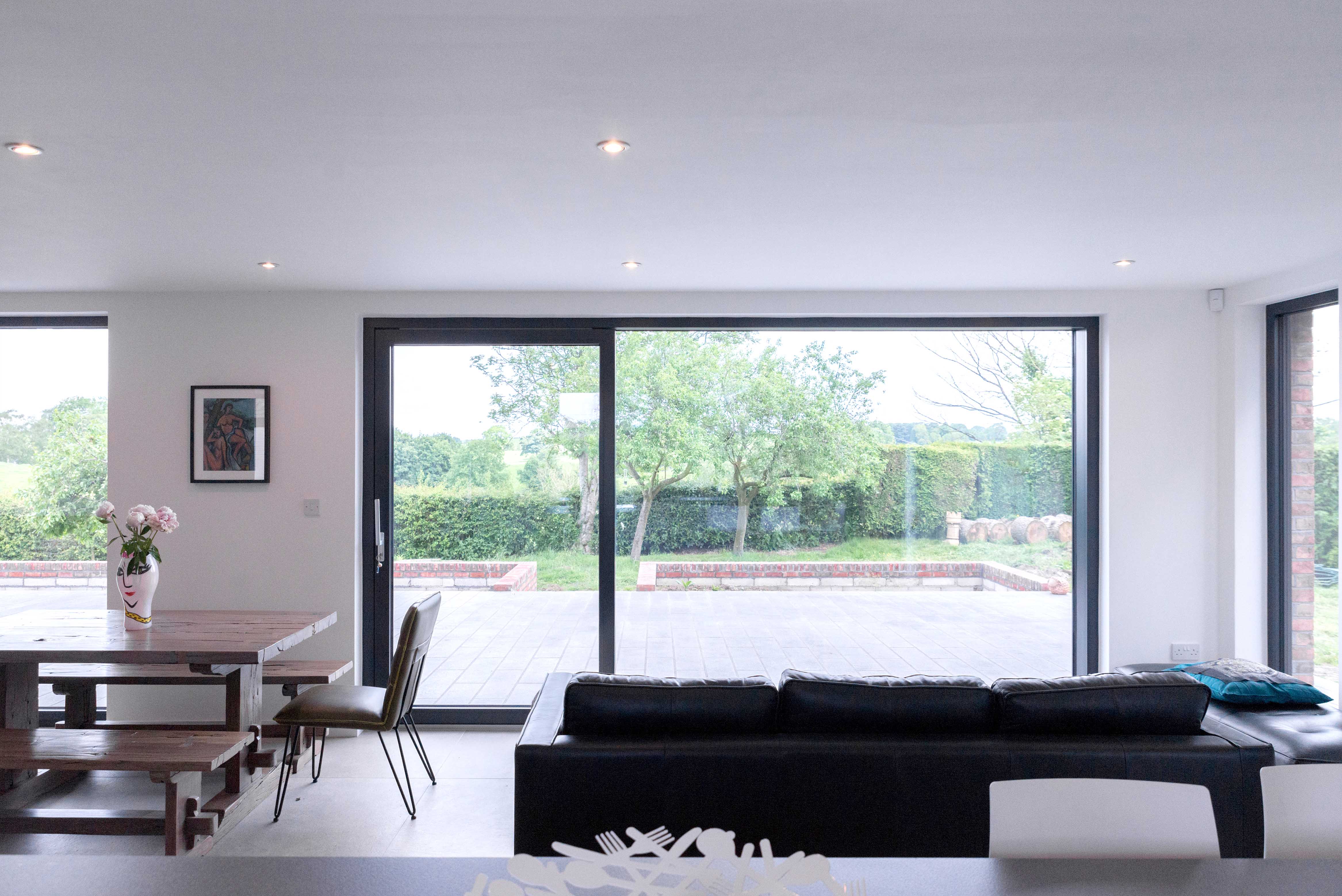 his replacement dwelling in the Cheshire Green Belt takes inspiration from the local farm buildings and barns. The nature of the site and its setting gave influence to a design that directly responds to its rural context. The design is based on traditional typologies with a simple rectangular form, gable roof and a purposeful aesthetic reminiscent of a barn. The proposed finishes also take inspiration from the rural vernacular with timber cladding and a natural slate roof. Modern detailing then elevates the dwelling to an innovative contemporary home. The slate roof and charred timber cladding have recessive qualities. By utilizing black materials the green landscape and trees are dominant in the visual hierarchy of the Green Belt. This compact timber framed build has extremely high levels of insulation and airtightness combined with MVHR. The house benefits from on-site energy generation and an allotment to provide the occupiers with a truly sustainable home. Planning approval was granted January 2016.