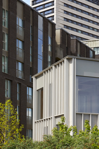 W3 is a new addition to King’s Cross, designed by Haptic Architects as part of the Triangle Site alongside new green spaces and residential buildings. Conceived as an intergenerational wellbeing hub, it offers a café, group-exercise gym and crèche to support community life. The three-storey timber building mediates between rail infrastructure and housing, opening onto landscaped courtyards with generous views and daylight. Its articulated, folding façade and warm timber structure create an inviting civic presence, celebrating sustainable construction and achieving BREEAM Excellent within King’s Cross’s wider regeneration.